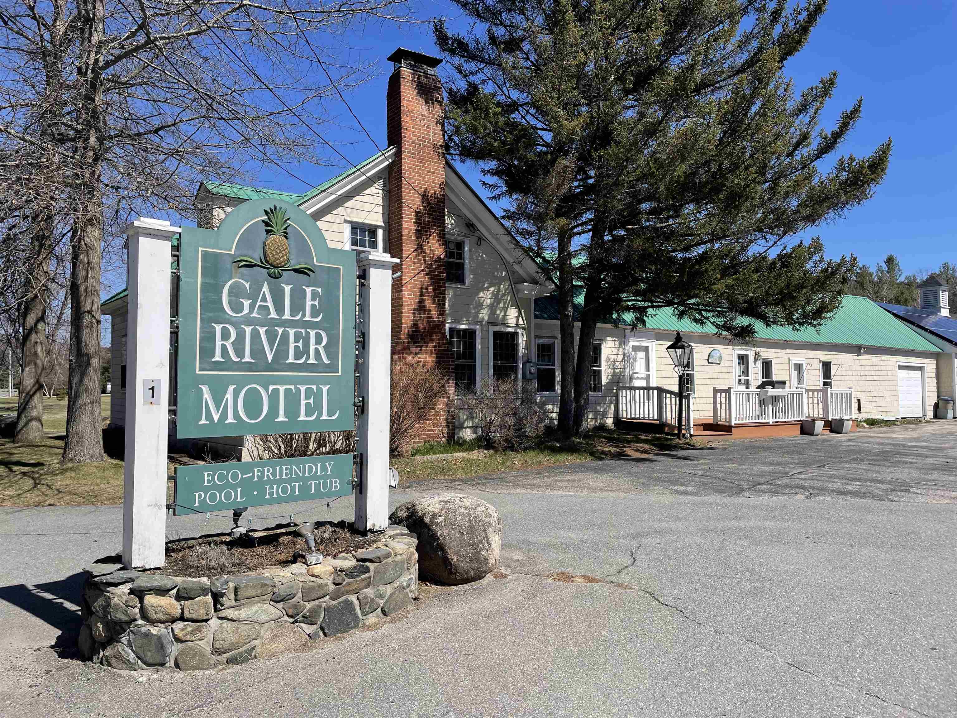 The Gale River Motel is a 12-unit motel located in the picturesque town of Franconia, NH. Comprised of 10 motel units and two stand-alone cottages, amenities include an 18x40 in-ground heated pool, outdoor and indoor hot tubs, children's play area, BBQ's all on 6 acres+/- Ac with frontage on the Gale River and with views of Cannon and Lafayette Mountains. Rooms are comfortable and offer AC, coffee makers, refrigerator and flat screen TV. Located close to restaurants, a brew pub and the popular outlet shop, you'll find something for everyone. Cannon Mt and NH State Park is within 10 minutes for skiing and hiking enthusiasts and it's an easy drive to all of the areas four season activities and attractions. The motel is one of the most sustainable lodging properties in the area with a 51-panel solar array on the roof of the motel and a solar heater and pool blanket to provide and preserve hot water for the pool. The property includes a separate 3-bedroom owners' home with a modern kitchen and woodstove for cozy winter nights by the fire. Come live in NH's playground!