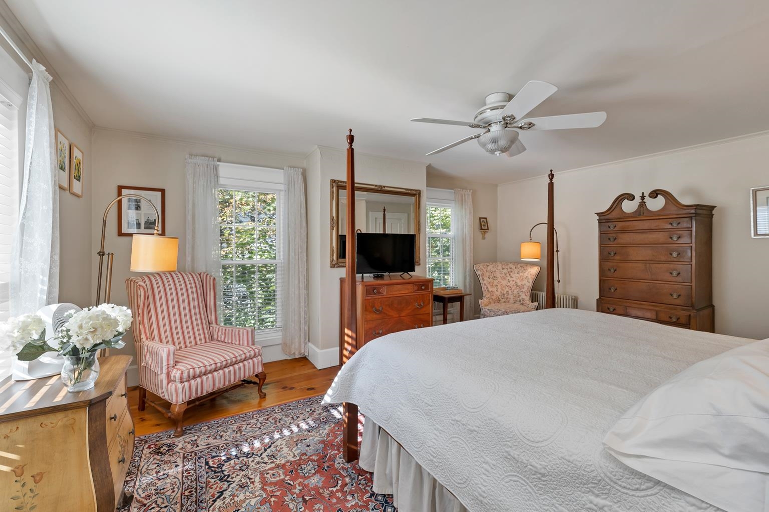 Characterized by its superb downtown location, this 1854 antique Colonial offers the charm of historic architecture blended with modern amenities and is easily one of Wolfeboro’s finest real estate opportunities. This exceptional property features spacious bedrooms including: a large first floor primary bedroom with an accompanying en suite bathroom, another first floor guest bedroom with bathroom, and three additional guest rooms on the second floor. Additionally, the home feature’s a chef’s kitchen with a Viking range, a lovely sun-filled breakfast room, a home office, a cozy family room, a commercially sized laundry room, space for a home gym and two decks overlooking a private backyard. This gracious home is currently operating as a successful B&B and personal residence for the owner innkeepers. However, it could also easily be enjoyed as a single family residence. There is currently a storage area that could be turned into garage space. The property is just steps away from downtown shopping, nearby restaurants and a best in class marina on Lake Winnipesaukee. Come see this exceptional property and enjoy the best of Wolfeboro, affectionately known as "The Oldest Summer Resort in America. ” Located just 2 hours North of Boston. Property can be shown between 11am and 2pm, Monday through Friday.