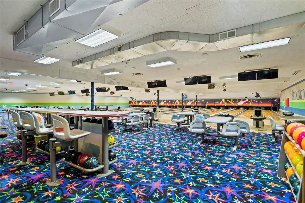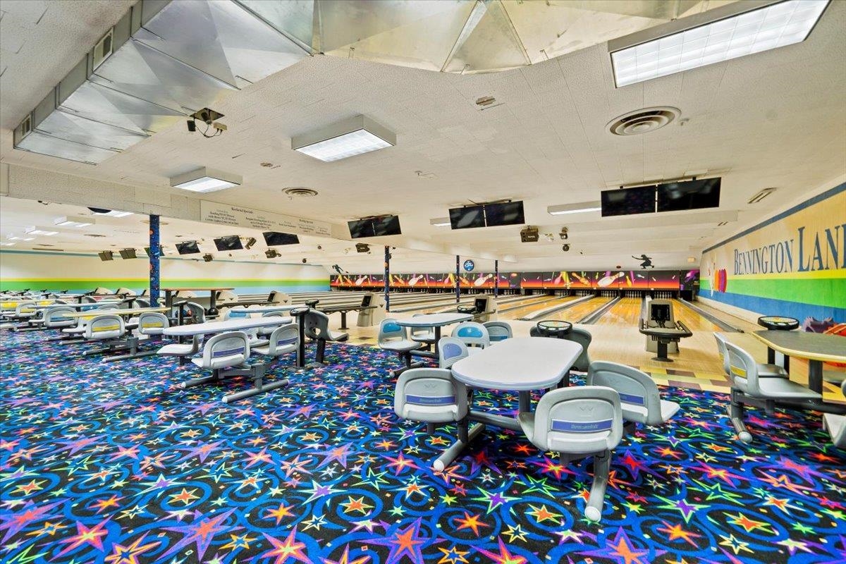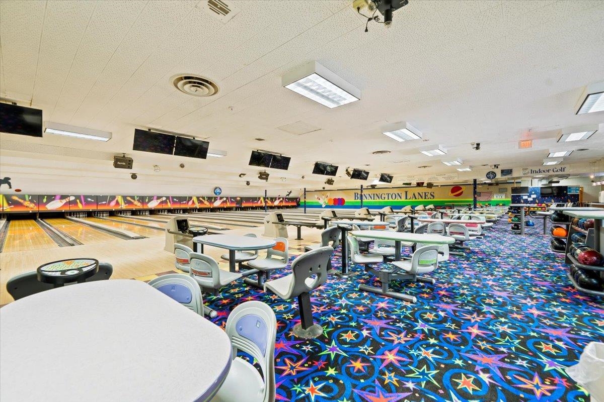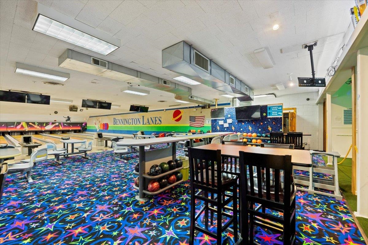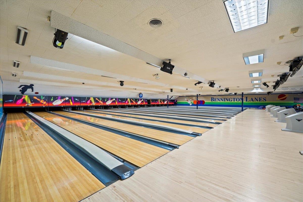 Highly Reputable Bennington Bowling Lanes and Babbling Brooke's Indoor Golf on Northside Drive with 2. 82 acres. One of the busiest roads in Bennington County (14K cars daily). Easy access from all major highways. Owner purchased the business over 40 years ago and has made major improvements over the years including modern interior design, new pins, front to back is computerized, upgraded sound and security systems. Two State of the Art high-definition golf simulators. Commercial kitchen with gas range, fryers, flat top freezers, hood ventilation, and adjacent storage room. The bar has 8-tap kegerator and 2 beer coolers. There is a large storage barn in the back which includes plenty of storage and an endless supply of bowling parts and replacements. Also, two rentals generating $1250 a month. Prime location in the Planned Commercial Zone.