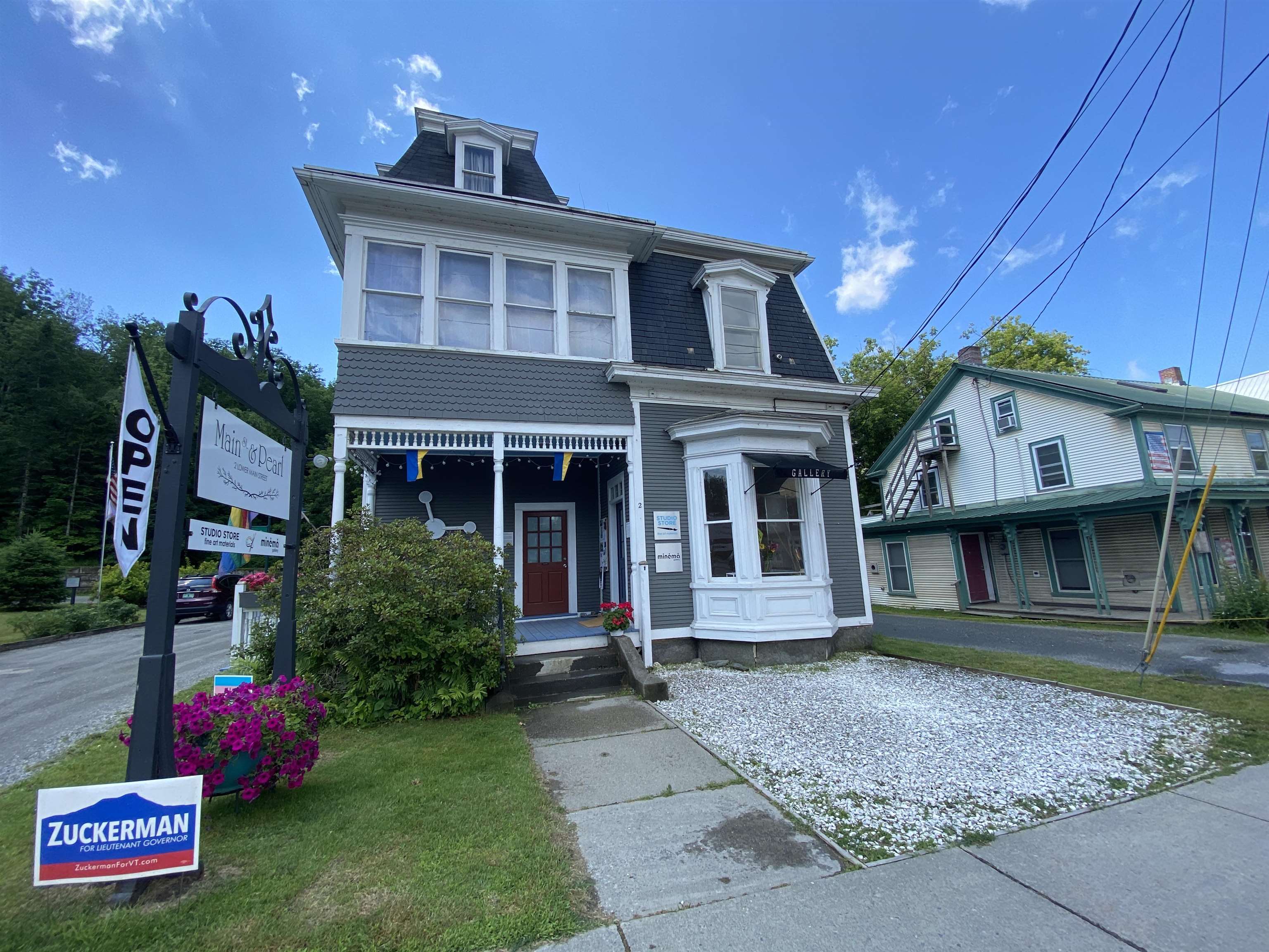A community fixture. Located next to the town green with ample parking and exposure. This mixed use property has housed an art supply store, and a residence for many years. An additional space in the barn w available 1/2 bath is the perfect studio space for the artisit. The main floor boast the art store, exhibit space, retail space, additional storage and bathroom. The second floor boasts a lovely 2 bedroom apartment with a full bath, porch, high ceilings creating an bright open feel. The barn/studio area has access to its own bath and 220 power. This well maintained property has been updated throughout and will have a fresh coat of paint this summer.
