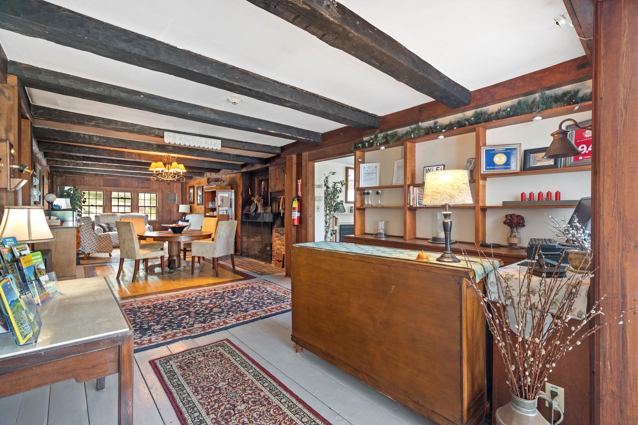 Amazing opportunity to own one of New England's quintessential properties hat is located just minutes from Ragged Mountain Resort. This privately situated parcel has many possibilities with over 25 exceptional acres including a barn, pond, verdant lawn and inviting deck area offering an ideal place for family gatherings, corporate events and weddings while taking in the charm of country living. The historic property boasts 16 updated bedrooms, separate caretakers quarters, indoor pool, tavern and a sauna for relaxing after a day of skiing or hiking at the mountain. The gracious great room overlooks the pond and the surrounding mountain views. The updated gorgeous commercial kitchen is ready for that extraordinary event or everyday gatherings. This captivating property is conveniently located within minutes to New London, Lakes Region, and the Boston area.
