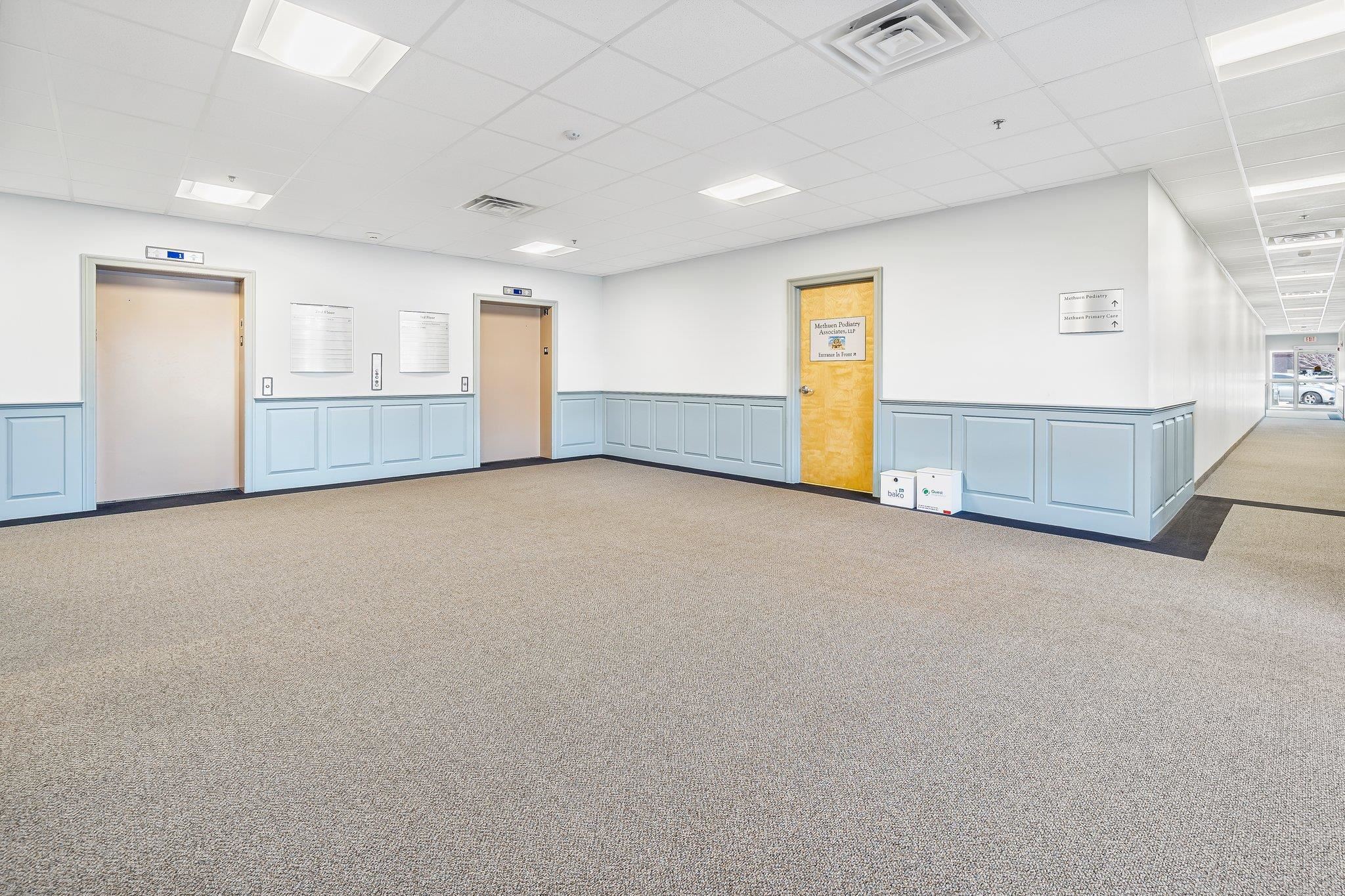 METHUEN, MA: 386 Merrimack Street is an extremely well-maintained professional office/medical building offering the opportunity for a wide array of professional user types. Unit 3A, consisting of 2, 629 SF, is available in current shell condition or with the "white box" option, for an additional SF Fee, which includes insulating walls with R-19, sheetrock all walls, tape and mud ready for painting, run basic electrical, panel and outlets per code and drop boxes on ceiling, HVAC system with ductwork /trunks, Ceiling Grid , excluding tiles. Two bathrooms located on the 3rd floor. 200+/- parking spaces - first come first served. Serviced by municipal water, sewer and natural gas. Owner would entertain a 5+ year lease option to purchase for well qualified, strong candidates only. Condo fee $492/month. Highlights: Situated in a convenient location with superior visibility directly on Route 110. Various options for space configurations. Property features include large pylon signage at street level, ample parking spaces, lots of natural light and elevator service. Located just minutes from Routes I-495 and I-93.