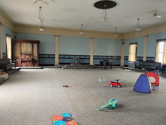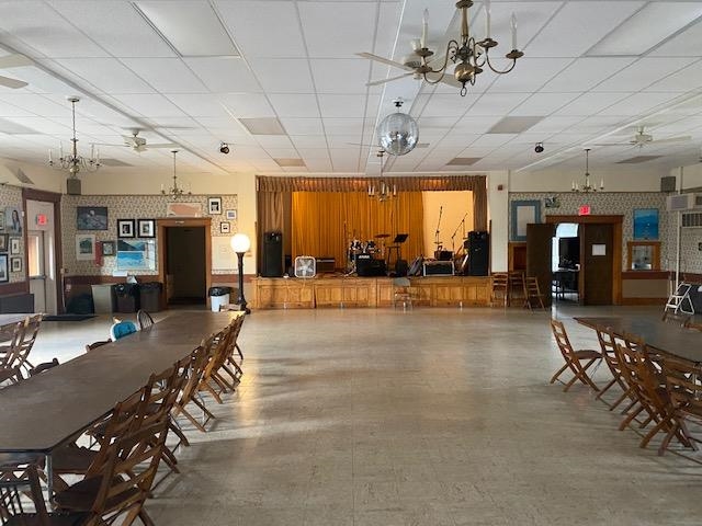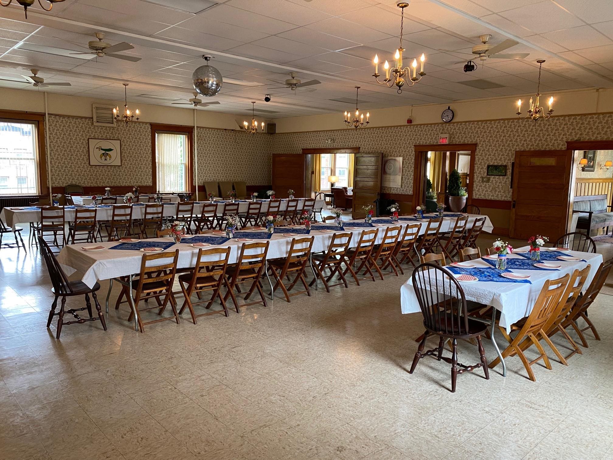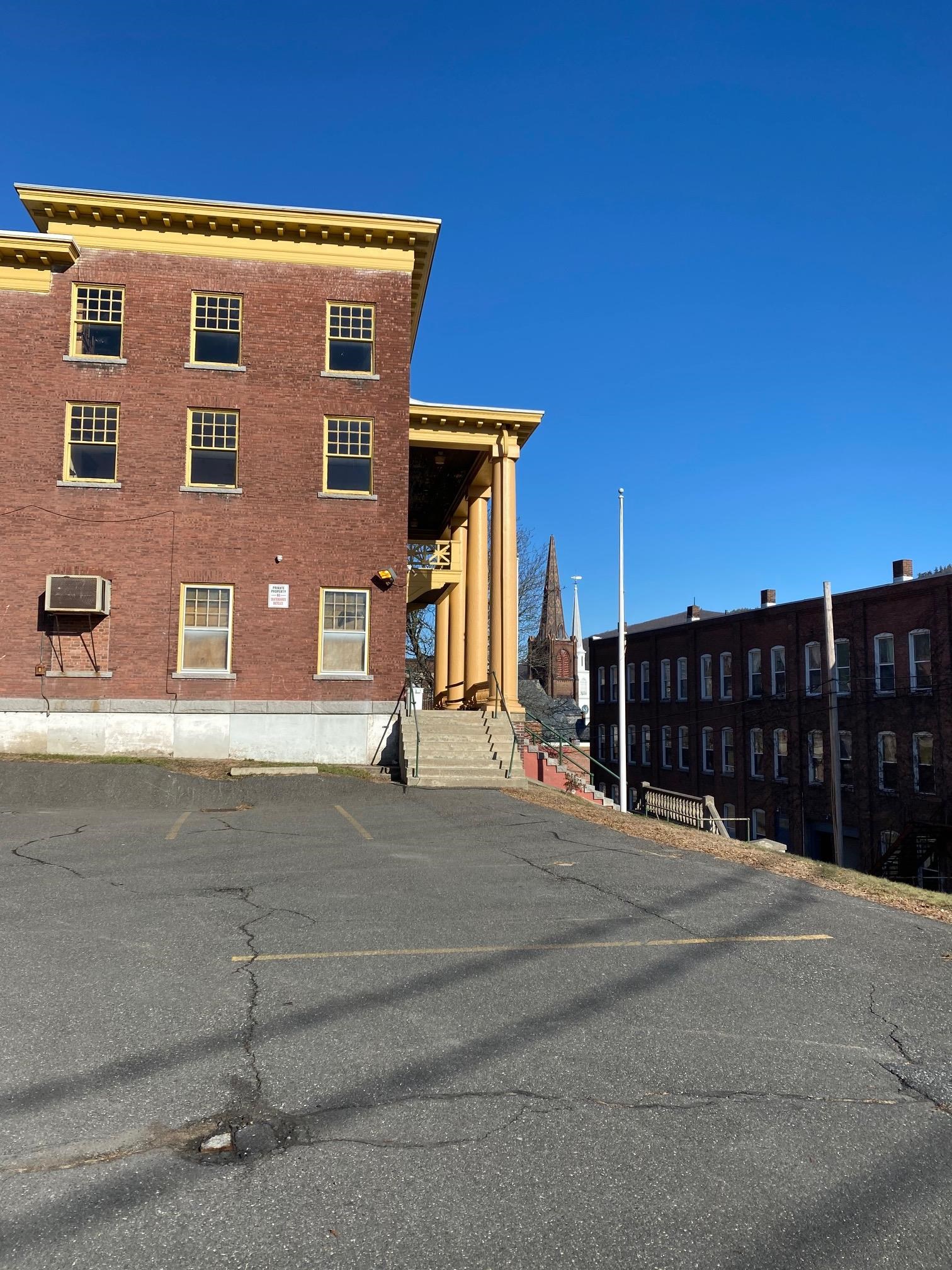 "The Wantastiquet Lodge" commissioned by the Independent Order of Odd fellows' club in 1915 to be what it remains to this day - a clubhouse and event hall with 2 bars, a stage, a commercial kitchen, lounge, offices, and a grand hall. This superbly well-built brick structure contains huge open rooms because of 50' spans of steel I-beams. The lot size and design of the structure make it a candidate for single family conversion, apartments, community center, bar and restaurant, music/theater club, supper club, arts/ rec center, or to continue on as a private club/event space. 15, 892 Sf of finished space is set directly above downtown Brattleboro's vibrant main street. Original windows reveal stunning views of NH, the Connecticut river, and downtown Brattleboro. The lot offers parking for 20 cars. Flexible zoning. Currently used as an Arts and Music Club. Owner Financing Potential. Offered for sale: "As-is".