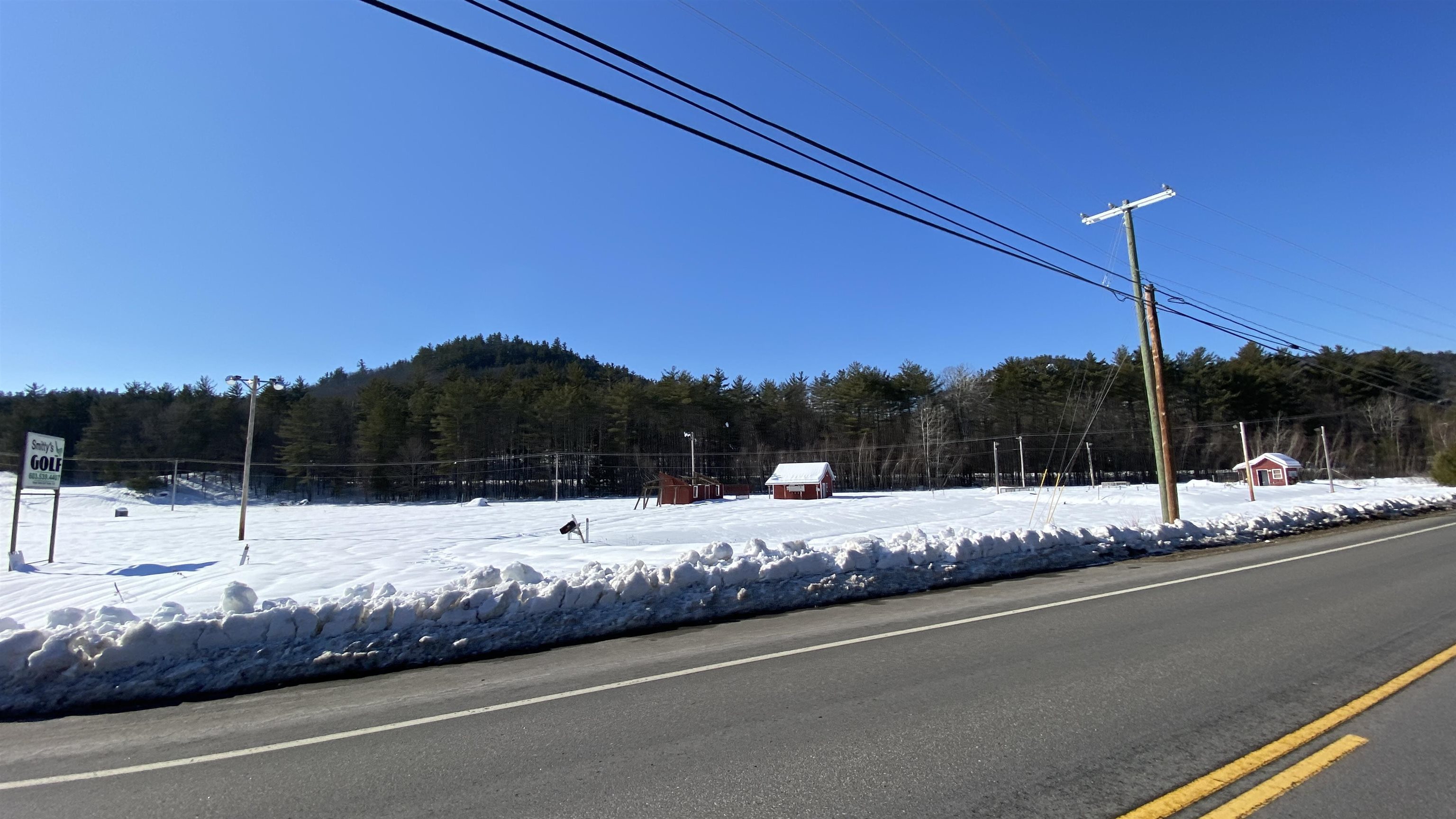 Get your business noticed! High traffic count on busy Route 16 in West Ossipee with over 1, 000 ft. of road frontage & 2 curb cuts. Located less than 3 miles from the intersection of Rte. 16 & Rte. 25. Zoned Roadside Commercial this 11. 68 acre property is actually 2 separate parcels - 2. 509 acres (1705 Rte. 16) and a 9. 171 acres (1725 Rte. 16). The 2. 509 acre parcel contains a 2 story garage 40' x 22' & a shared drilled well. This space would be great for contractors or landscapers. Imagine the possibilities with the abutting 9. 171 acre lot which was formerly used as a driving range/mini golf recreational area. This parcel is wide open with irrigation in place & even offers mountain views!!!! There is a snack shack/equipment storage shed already on site and ready for use! The driving range tee box shed, mini golf starter shed, & golf nets are in need of repair. Highly visible signage currently in place on 9. 171 acre parcel. Electricity already on site on both parcels. Opportunities to buy a property like this do not come along everyday! This location is close to the mountains, lakes & abuts the snowmobile trail. Just think of all you could do on over 9 acres of land to either grow your business or start a new one! Verify all permitted uses with the Town of Ossipee. Building and land are included only. If someone is interested in purchasing the Smitty's Golf business and/or equipment this would need to be negotiated as a separate transaction between buyer & seller.