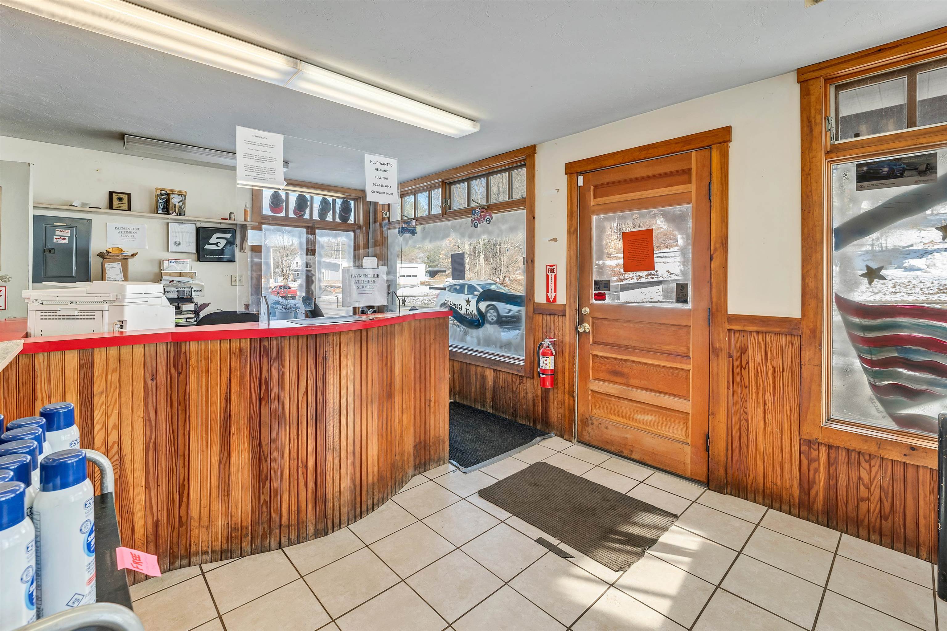 Circa 2003 garage on over an acre of land on the busiest street in Ashland. Garage is one minute to I 93, and is an excellent location for a tow company and garage. Studio apt on second floor allows for on-call emergency employee to stay on site. Garage has two doors, 8ft and 12ft height. Entryway has public bathroom, waiting area and office space. Lower level has concrete floor and crawl space under the garage area with walkout access and interior stairs. Large level lot allows for plenty of parking. Building and land only. Business is not part of the offering.