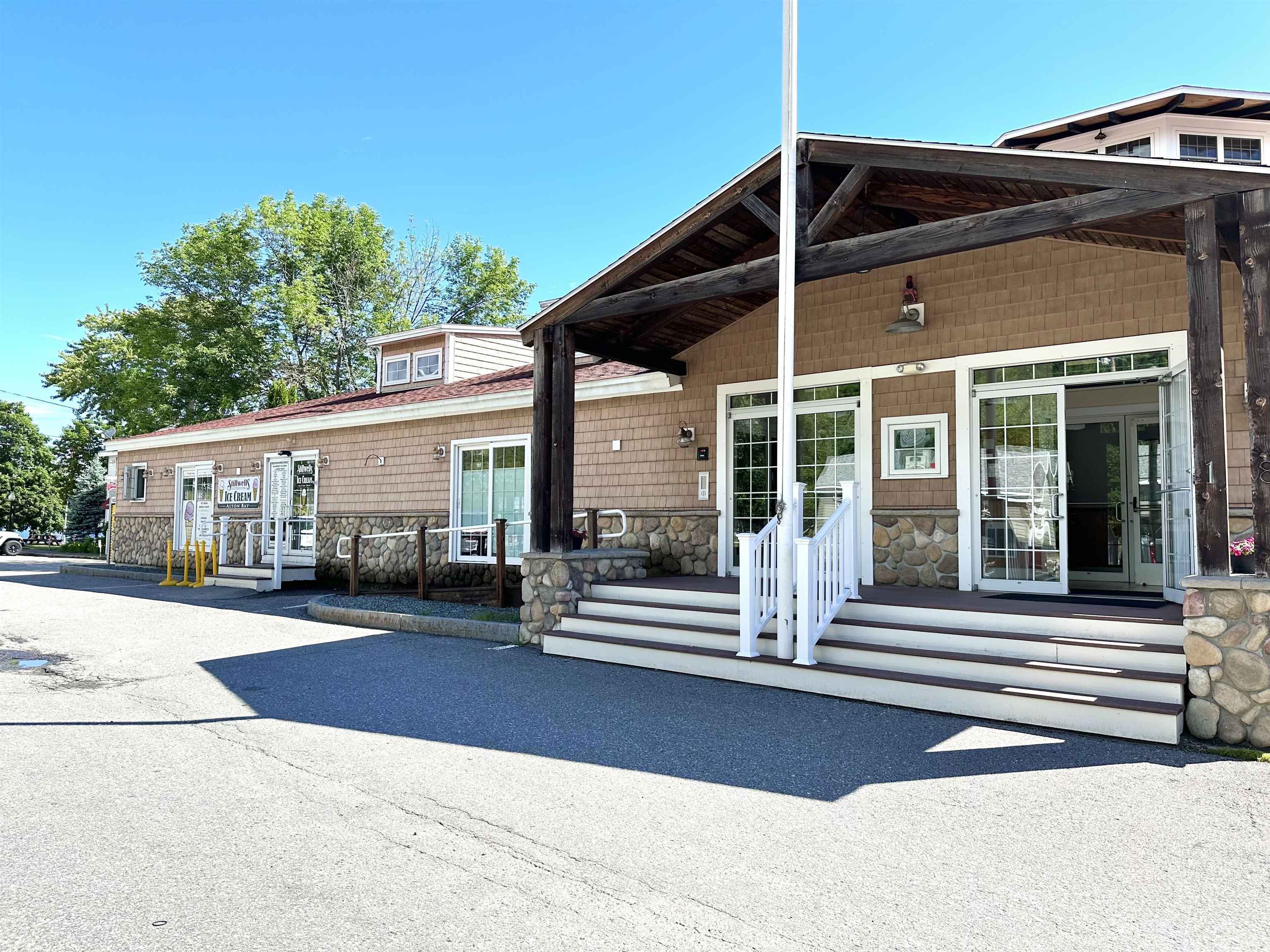 The Winnipesaukee Pavilion is located in the Heart of Alton Bay, at the well trafficked and popular tourist area surrounded with shops, restaurants and all season activities. Unit 8 is part of a beautiful waterfront condominium community. This Unit consists of 3 separate commercial spaces that are currently leased out. Two on ground level, each with 620 sq ft. One has 3 sinks the other a 1/2 bath. There is also a partially finished, 380 sq ft room on the lower level. All of the Units have access to a large storage space in the basement. Clean Public Rest Rooms are across the street. This property is only 1 building away from the town Docks.