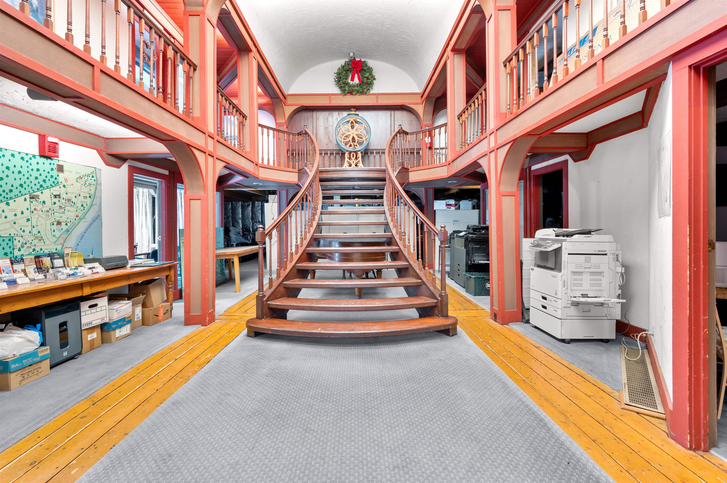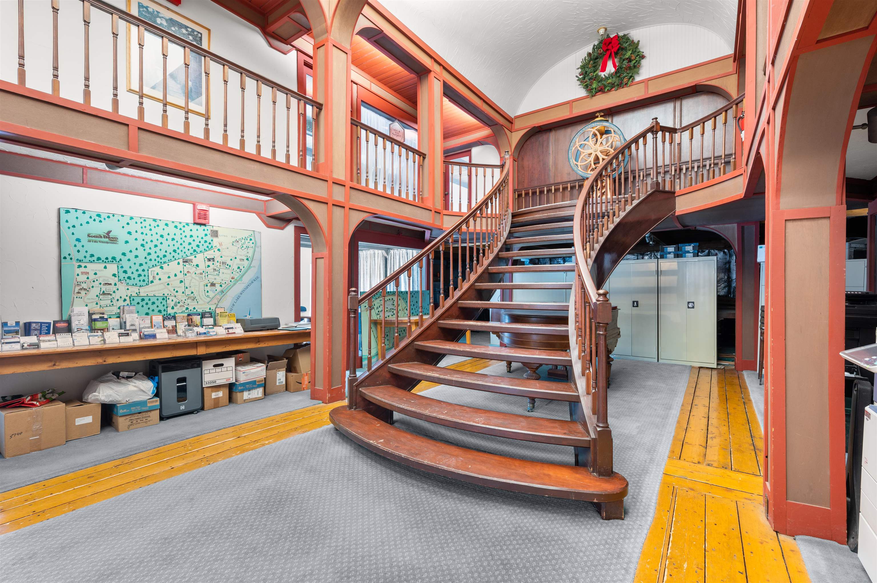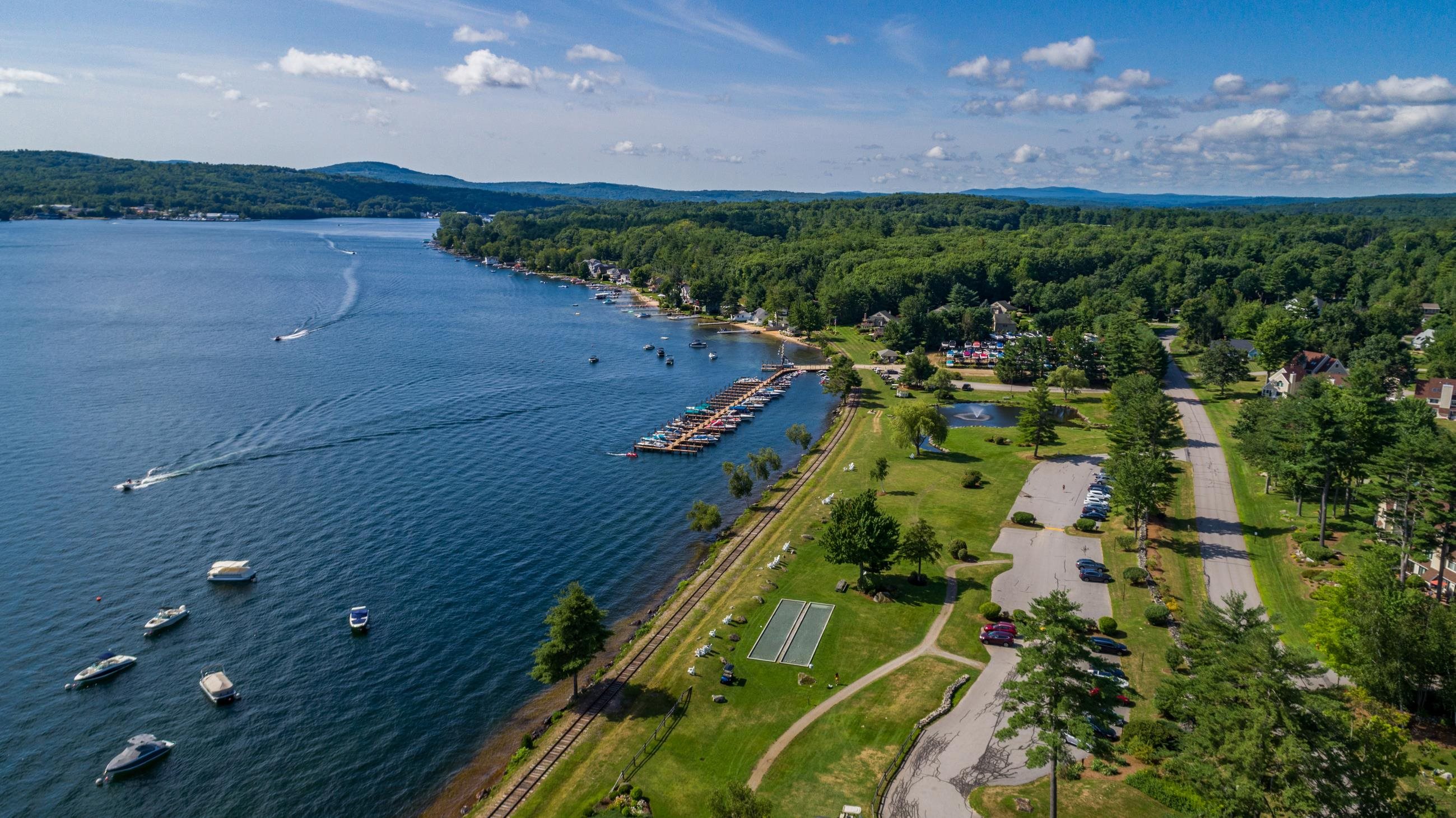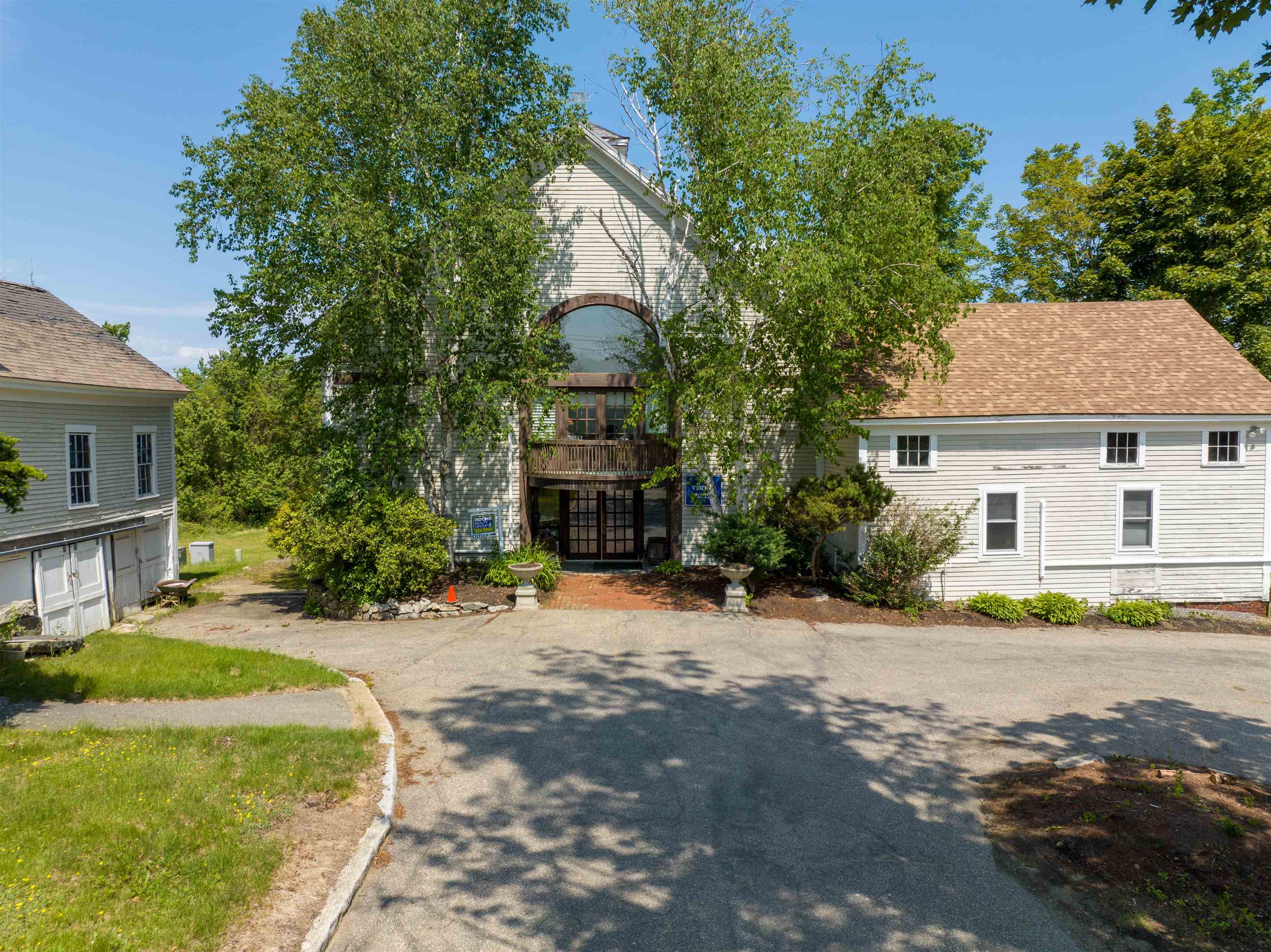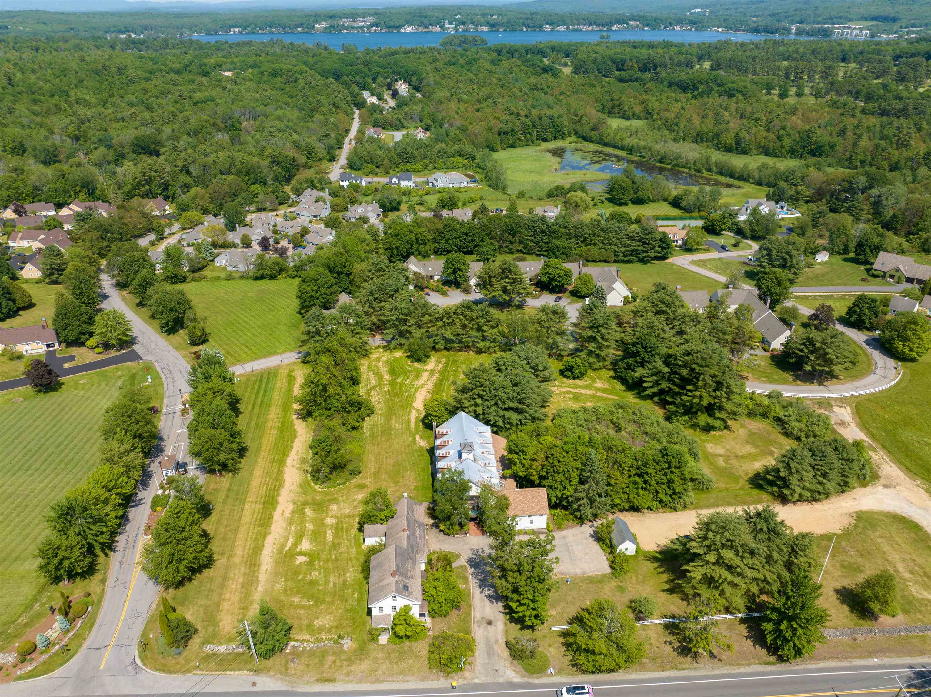 This landmark barn complex and farmhouse on 7. 2 prime acres sits at the gated entrance to South Down Shores and Long Bay on Lake Winnipesaukee and is a member of the association. The communities contain over 700 single family homes and condos with appx. a mile of shorefront along the lake. Both are regarded as one of the best planned and sought after water access associations on Winnipesaukee. This property includes a total of 2, 073 ft of road frontage, with 860 ft on Parade Rd, 362 ft on Outerbridge Dr and 851 ft on Clover lane. Property is serviced by city water, sewer and underground utilities. The main barn complex totals 8, 836 of finished sf. and has a grand feel reception area, with elevated ceilings, and a grand mahogany staircase leading to the 2nd level. The 1st floor includes a reception area, 12 offices, conference room, kitchen, two 1/2 baths and storage. 2nd floor includes 8 offices, and 2 half baths. The 3rd floor includes 4 offices, a large conference room and 3/4 bath. There are 24 parking space, but can be easily expanded. The building has multiple tenants. A real estate company and other longterm tenants plan to stay within the complex. Adjacent to the barn complex is a 2 story farmhouse built in 1890 that has been fully gutted with 2, 776 sf. It has an original stone foundation and will be in need of complete rehab. This is a fantastic opportunity for many expanded residential and commercial uses. IE country store, cluster development etc.