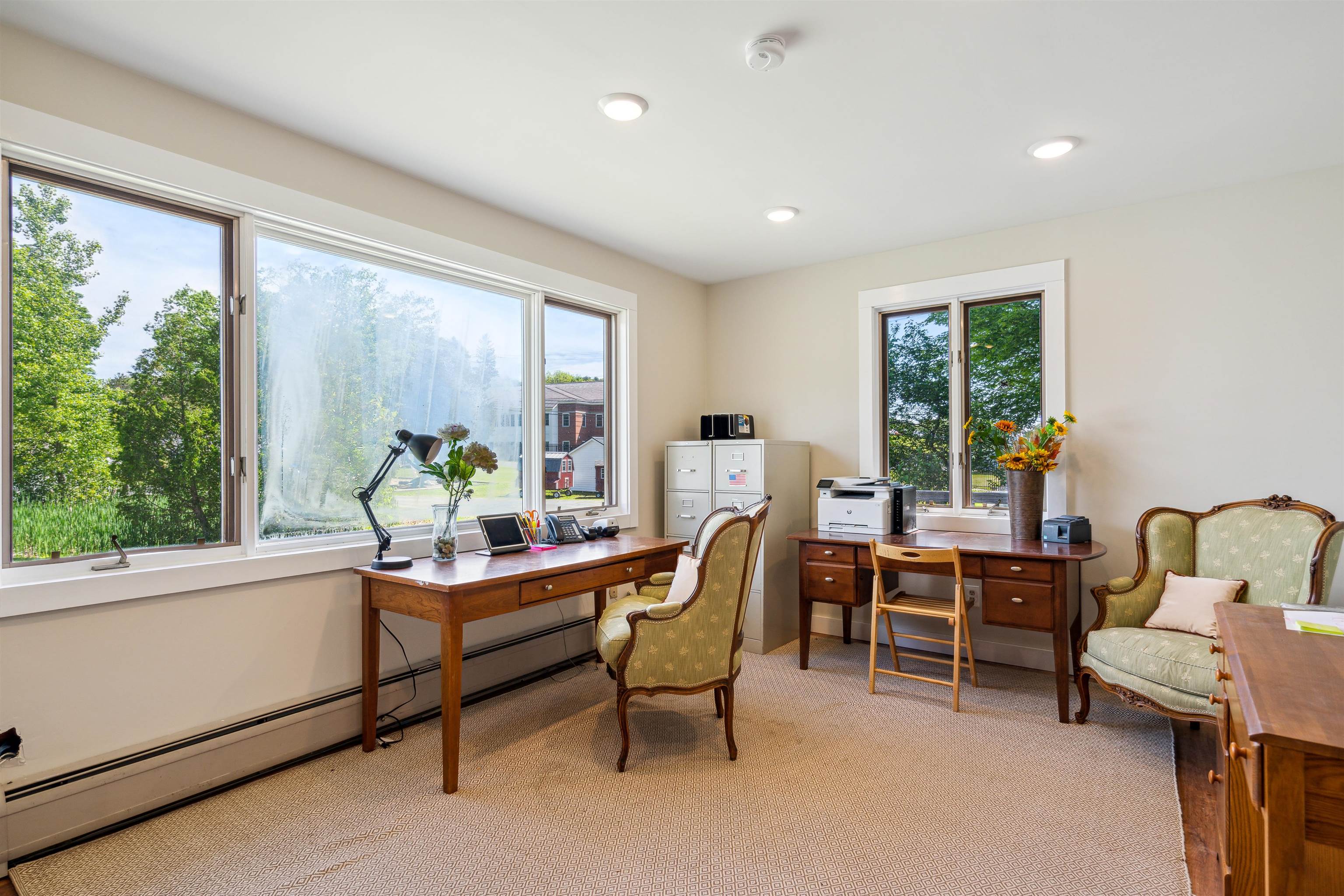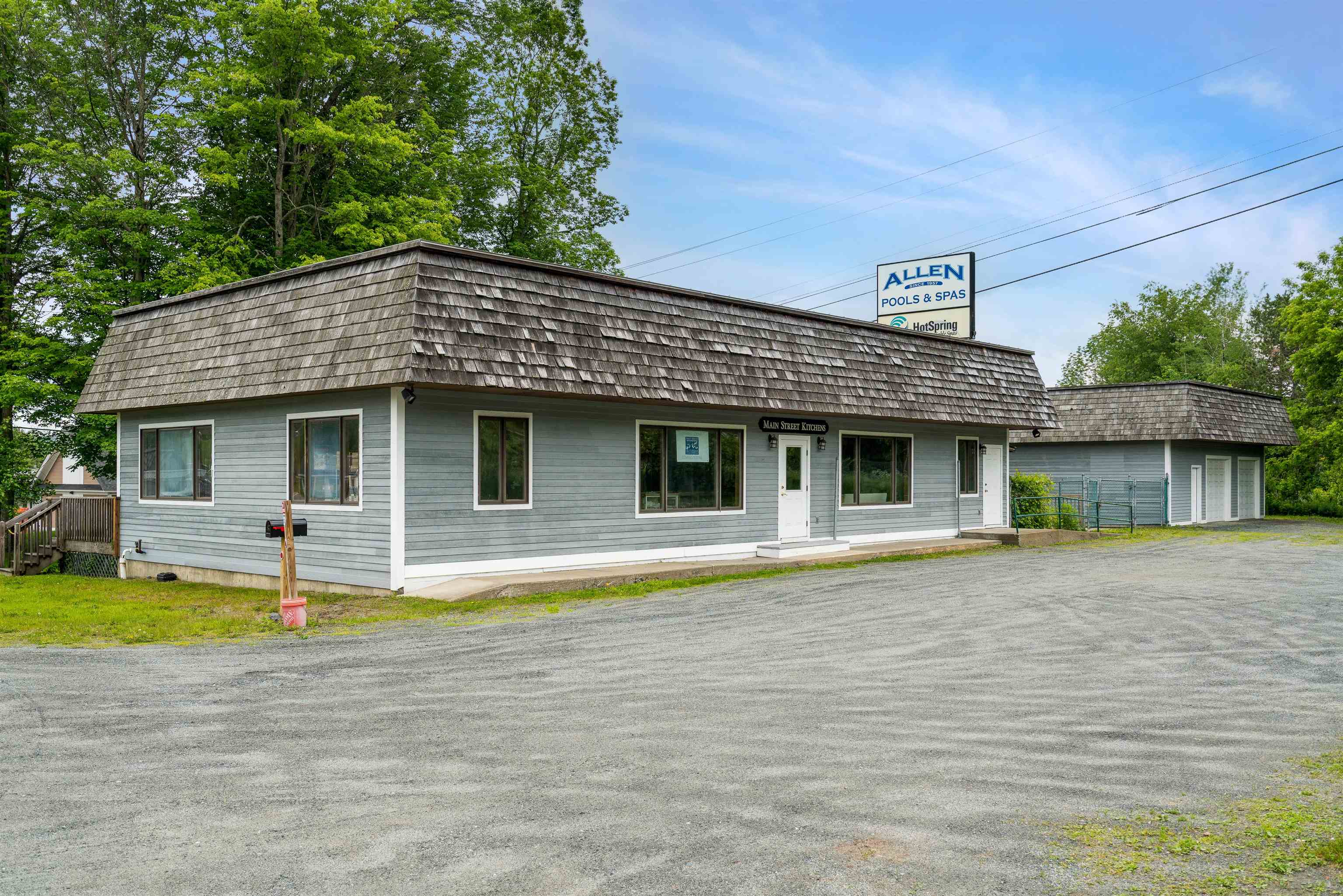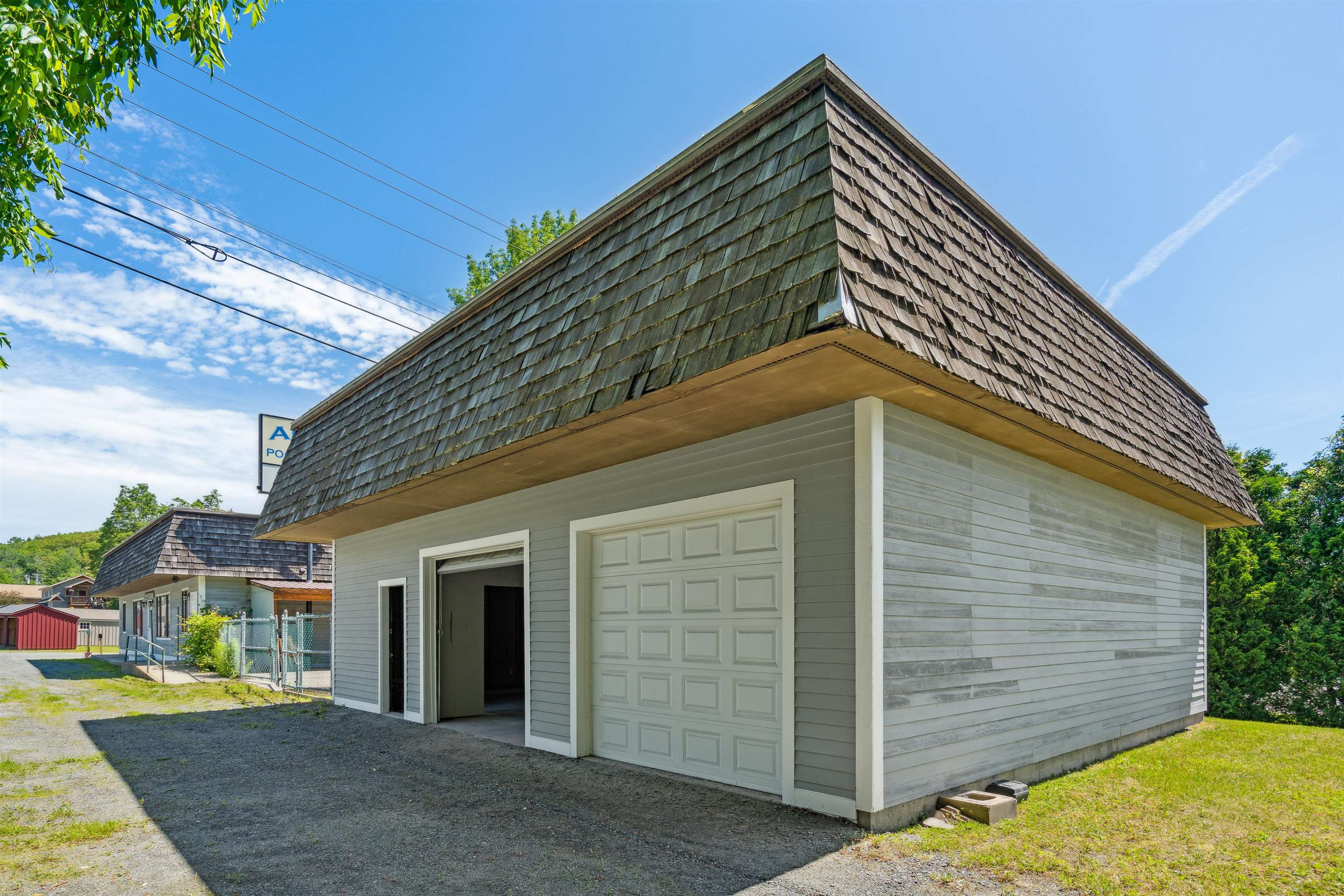 IDEAL Hartford/Upper Valley business location! Incredible opportunity to own and operate a commercial space with easy interstate access, highly visible interstate signage, and loads of parking. Previously used as retail space, the light-filled, open floor-plan primary building offers tons of space, and town zoning allows for a multitude of business needs. The main building includes a full, dry basement with both interior access, and a lower-level single garage door access for easy loading/unloading of inventory. The oversized, 2-car, detached garage offers bonus space prepped to be easily finished into additional office space, including roughed in plumbing. The sellers have made many wonderful improvements over the years, and this property is an absolute must-see for those seeking a commercial venture with fantastic all-around public access.