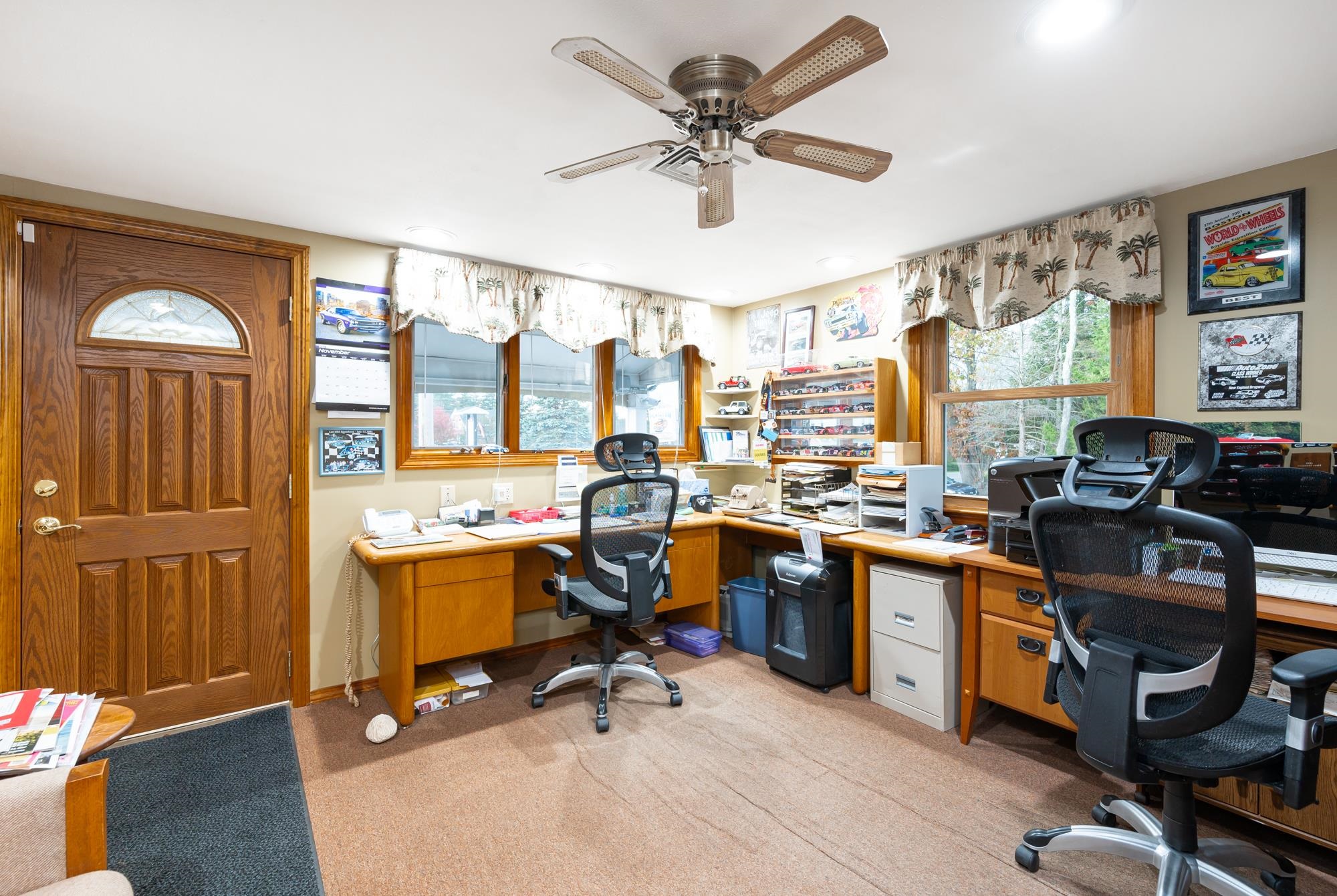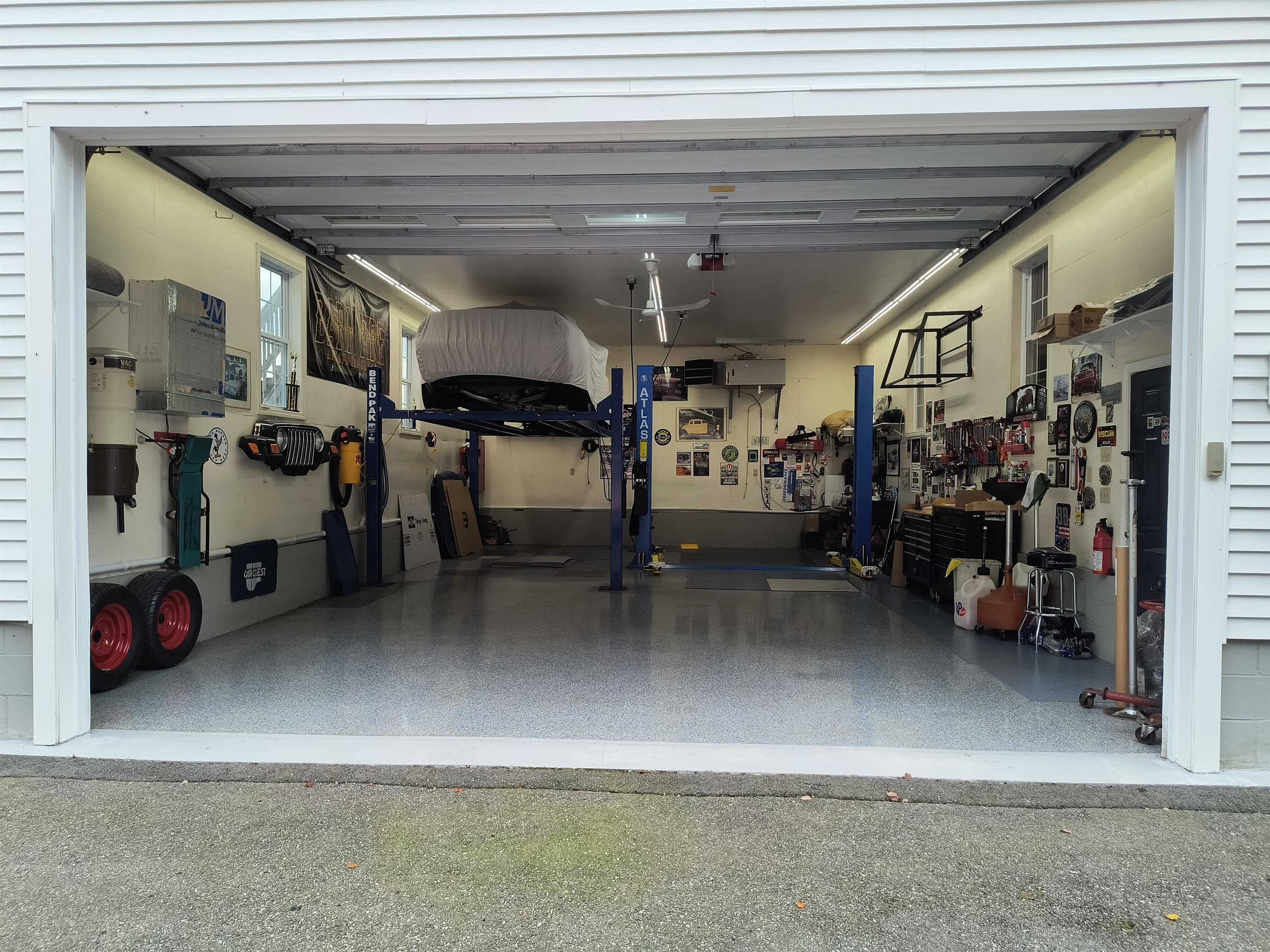 Endless Opportunities knocks with this property. Custom Ranch with all upgrades including custom gourmet kitchen, surround sound, intercom, Marvin tinted windows, propane fireplace, hardwood floors, large master suite with enclosed hot tub with step down bathroom w/laundry, composite decking. Live at home and walk outside to work. Rental opportunities. Full service business for state inspection, sales, repair and storage. License includes 10 vehicle business and 50 car storage. Multiple working bay garages (see attachment) Large toy garage (38x22 with upstairs 38x17) for the hobbyists set up for lifts. Two lifts existing (neg) Paint booth, working bays with two overhead garage doors, other amenities include suppression system, full security throughout, outdoor work area with covered lift, two 220 electrical services and two new a/c in 2022.