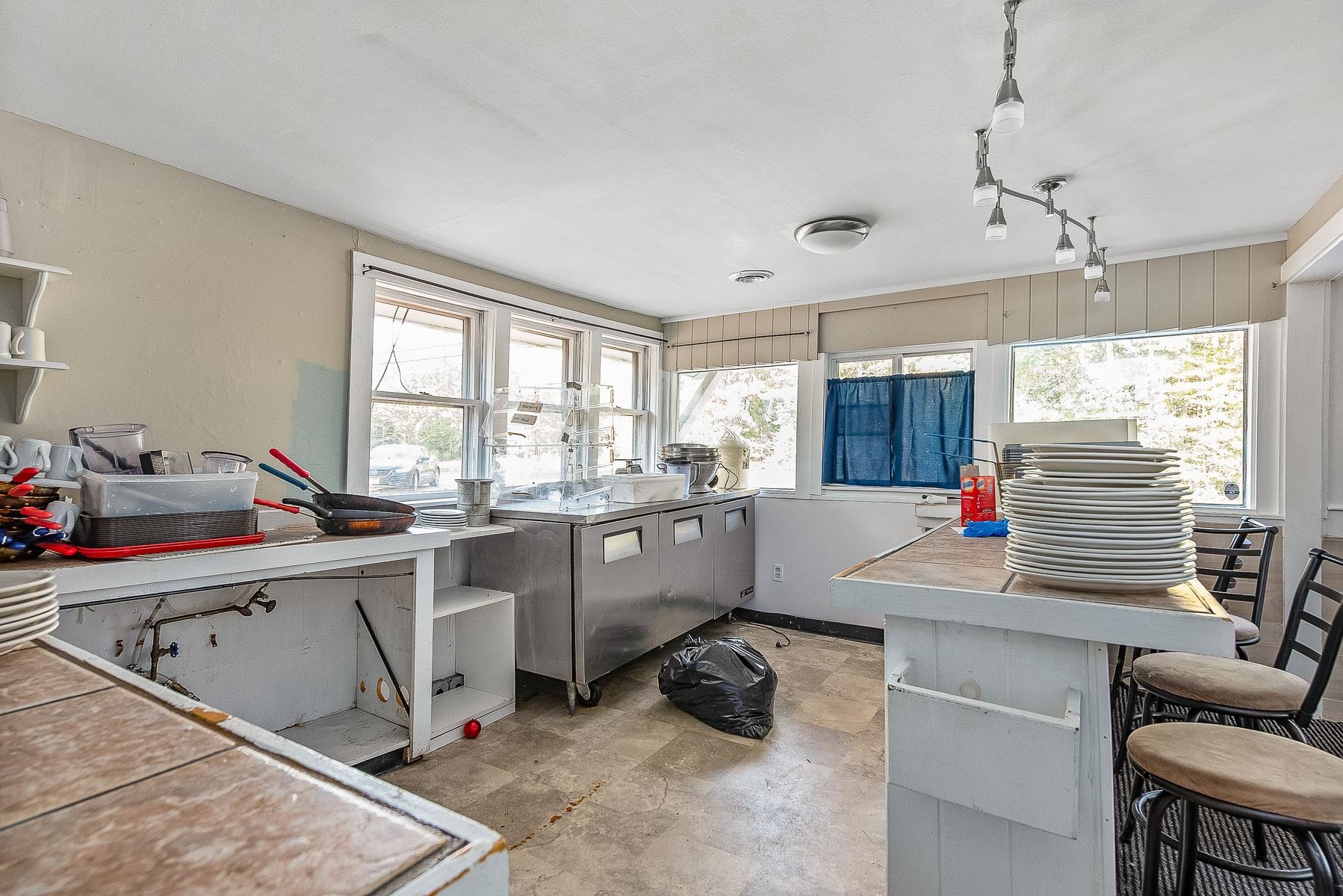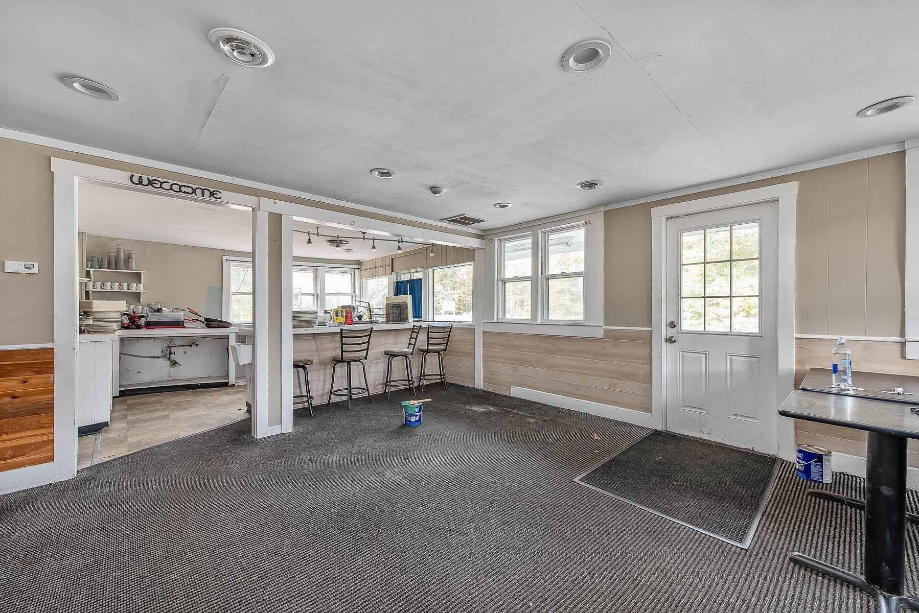 Lots of potential with this property that includes a three room, one-bedroom apartment for income or live where you work! Formerly a restaurant, bring your ideas for a new restaurant, sandwich shop, pizza, or another commercial use. (must do your own due diligence for what is allowed in this zone, see attached zoning documents) or scrape the site and start with your own new plan. The restaurant has approximately seating for 25-30 customers. Plenty of parking, excellent visibility and existing curb cut on state route 107. Restaurant space needs a lot of work, apartment currently rented to a month to month tenant for $1, 500. 00. Nice flat, partially fenced in . 61-acre lot for possible expansion, or additional parking. Existing restaurant equipment included with sale. Being sold AS/IS MOTIVATED SELLER! SOME INTERIOR RESTAURANT PHOTOS ARE FROM WHEN RESTAURANT WAS IN OPERATION. THEY DO NOT REFLECT CURRENT CONDITION. SOME ARE CURRENT CONDITION PHOTOS (see labels on photos)