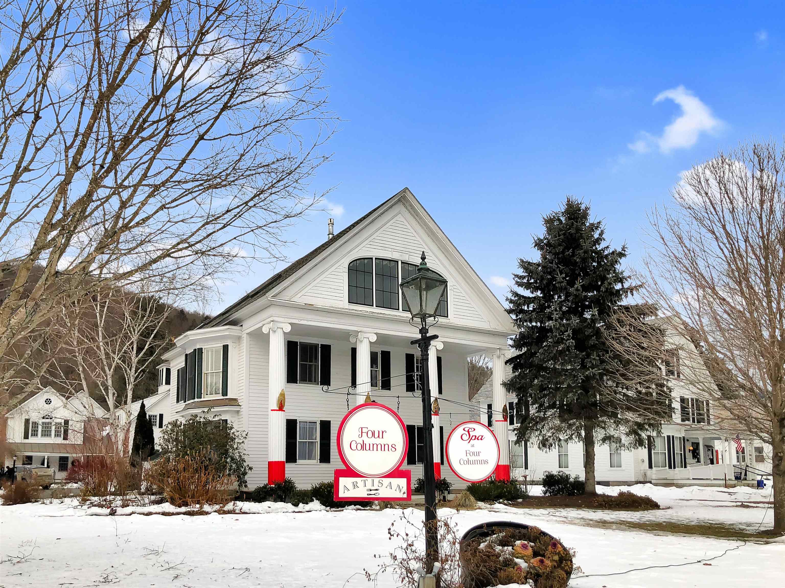 Great business opportunity in the heart of the charming and historic village of Newfane. First established as an inn and a restaurant back in 1969, The Four Columns Inn has been tastefully updated and redecorated with modern comforts and conveniences throughout. The current owners did substantial interior renovation and updating around 2015. Boasting 15 luxurious rooms across the inn, seating for 60-70 in the well equipped on-site restaurant, and a separate tavern, the property offers enormous potential for its next owner. There's also a dedicated gym space, a spa, and a separate cottage for guests or living quarters. The grounds provide a truly relaxing and immersive experience for guests to relax and enjoy a break from the hustle and bustle of life. Ideally situated along the scenic Route 30 corridor, Newfane is easily accessible and in close proximity to all that Southern Vermont has to offer like world class skiing at Mount Snow or Stratton, or the artsy eclectic towns of Brattleboro and Wilmington. Delayed showings begin 12/6/23.