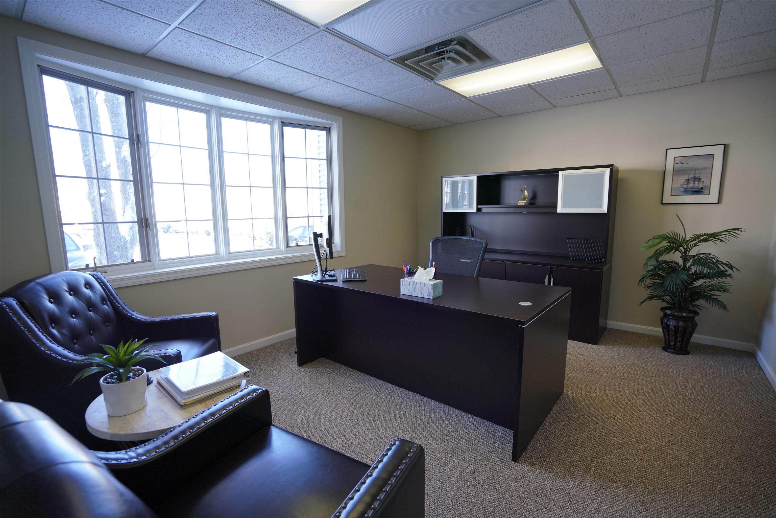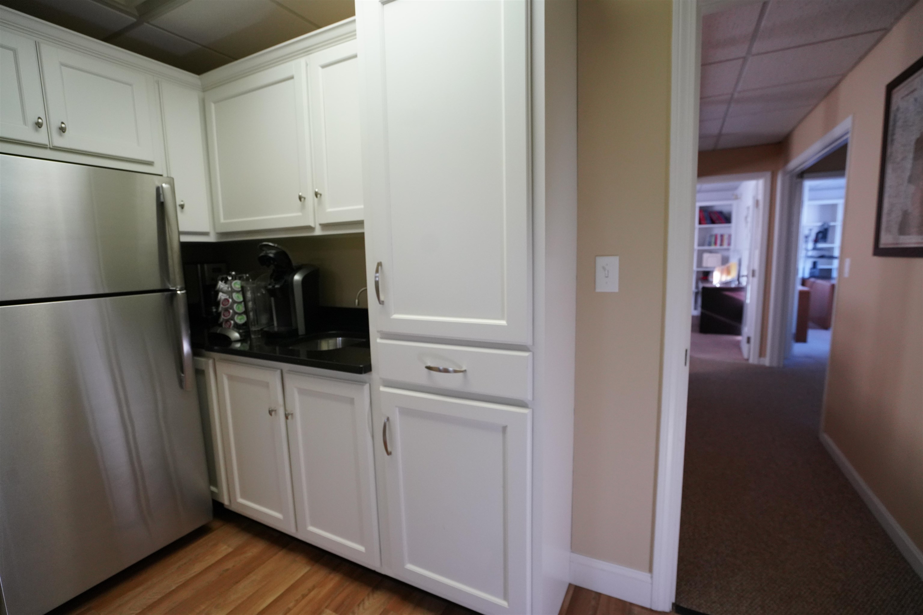 Rare opportunity to own 2 adjacent professional office condos in desirable Bedford Place. Enjoy multiple private offices, a large conference room, reception area with fireplace, two updated kitchenettes and two updated bathrooms. 2000 SF of first floor space and 600 SF of beautifully finished second floor space. The property is located just a 4 minutes from the highway and 23 minutes to the Massachusetts border.