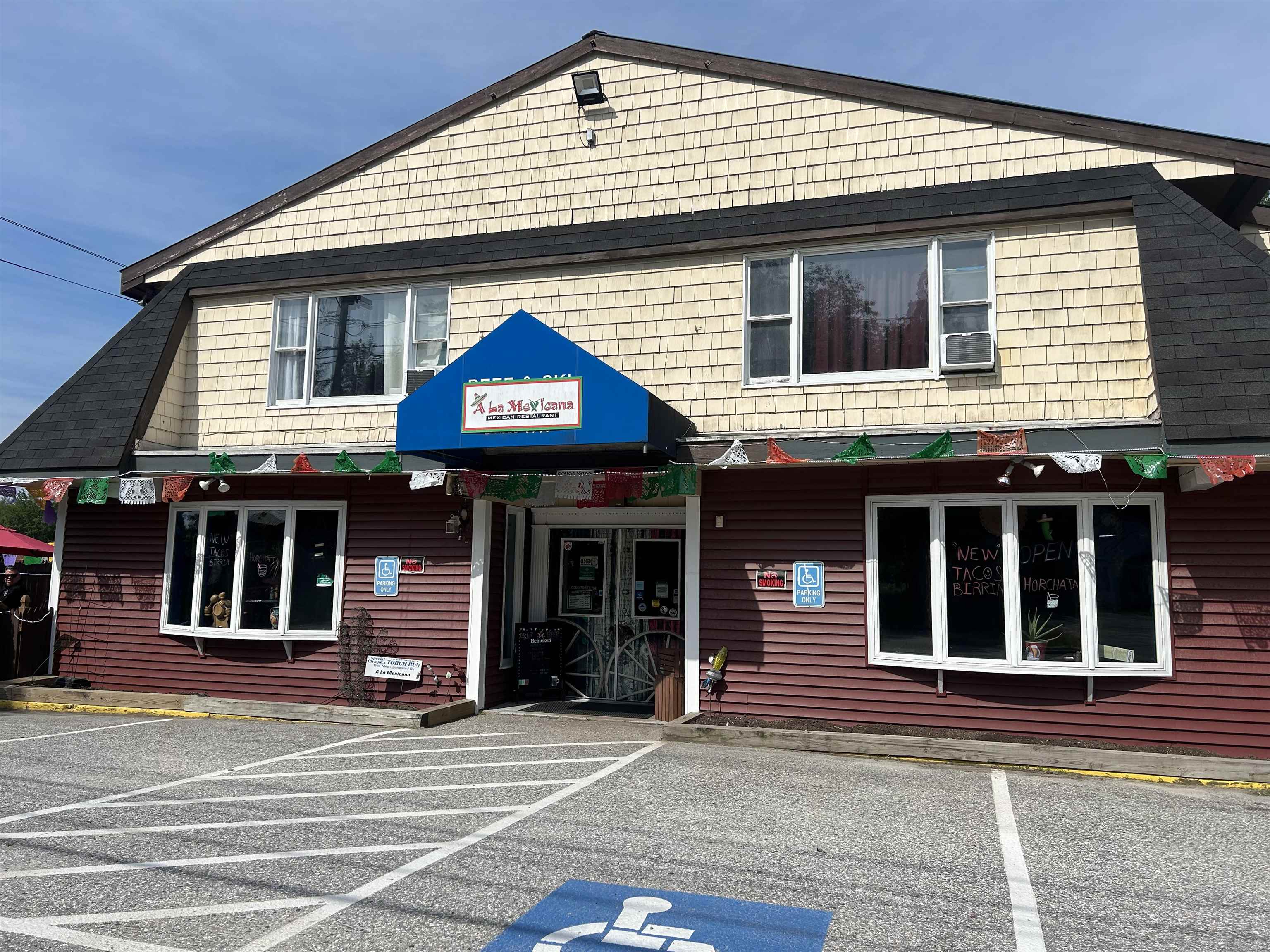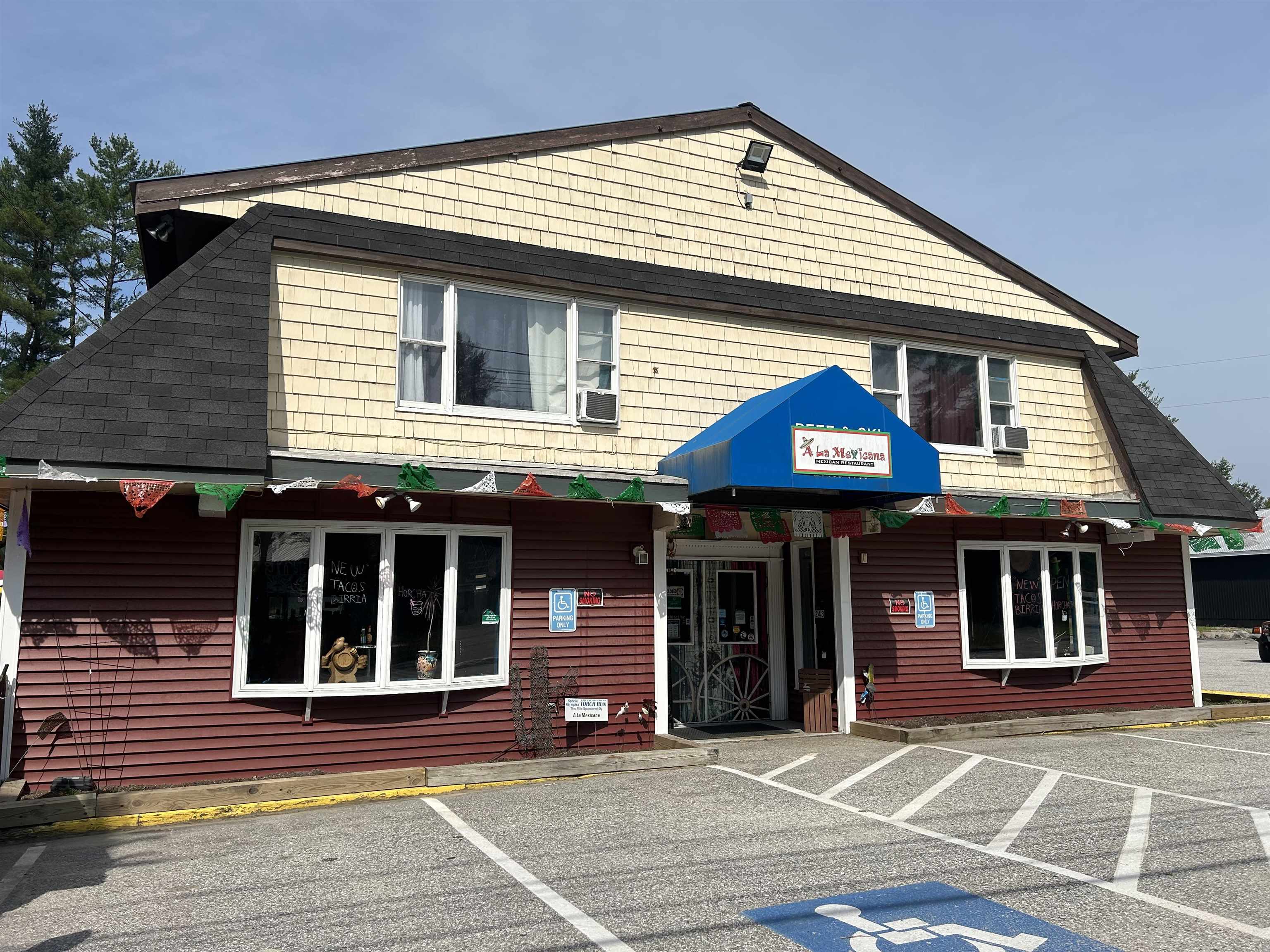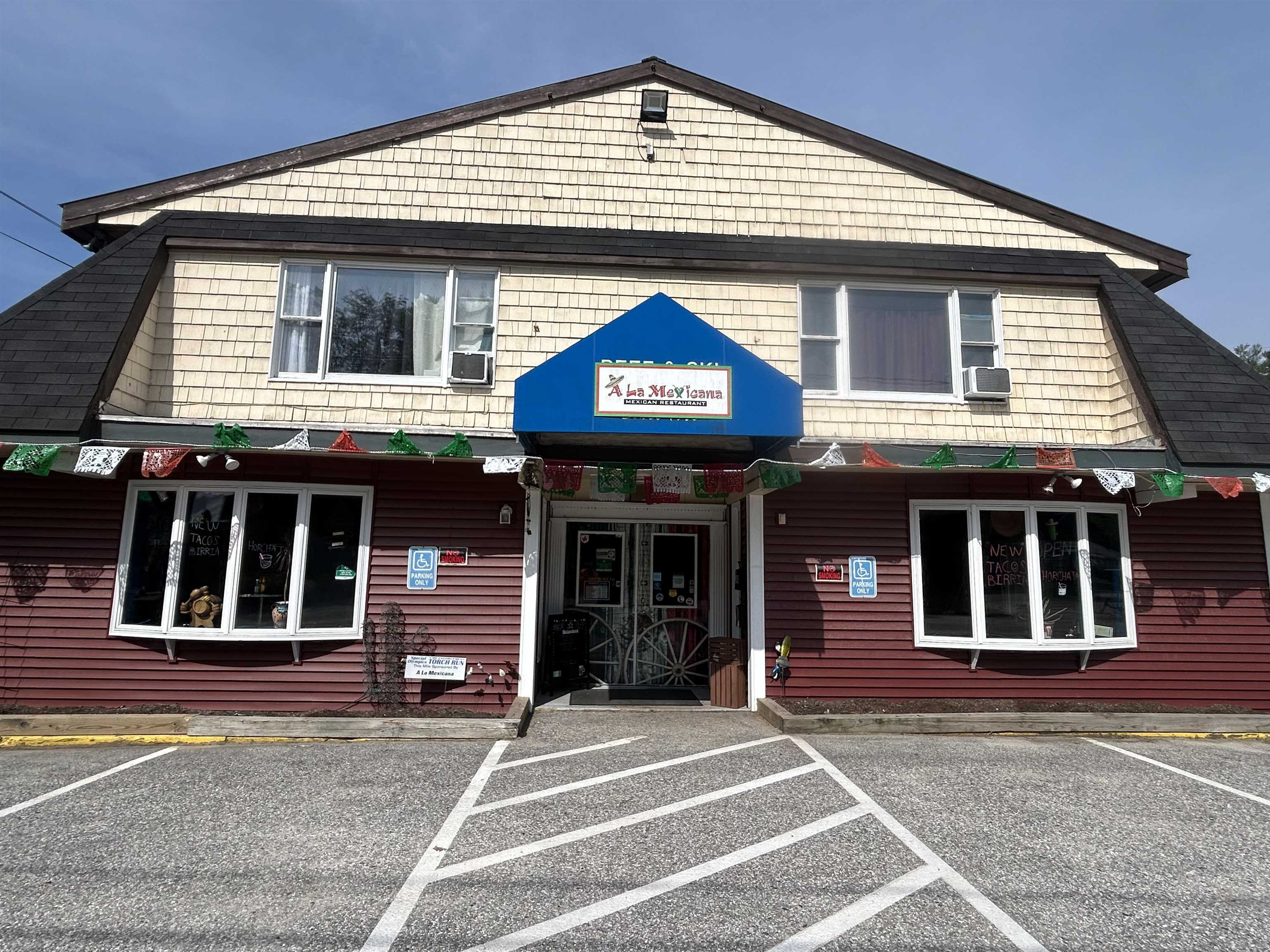 Located along Route 302 in Bridgton, this commercial building is an excellent opportunity for an investor looking for a fully occupied building to add to their portfolio. There are three units, including the 48 seat restaurant on the first floor known as A La Mexicana, a 1-bedroom apartment and a 3-bedroom apartment, both on the second floor. The building has seen several major updates with the current owners, most notably the septic which was replaced in 2010 and includes a grease trap for the restaurant, and the metal roof installed in 2009. Tenants pay all utilities, landlord pays property taxes and insurance. The restaurant space is very well kept and features a bar and patio area for additional seating. Showings are best on Monday's when restaurant is closed.