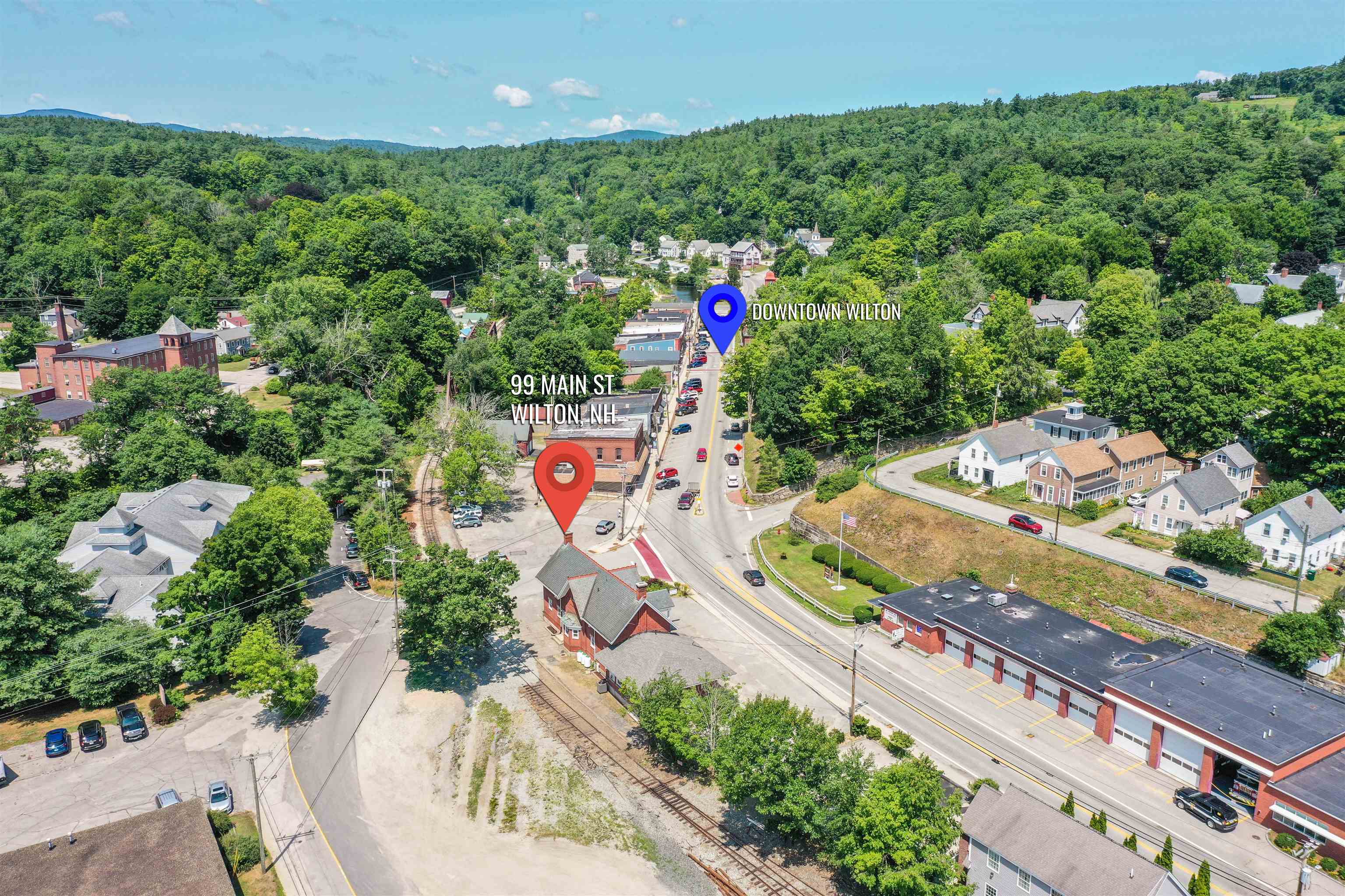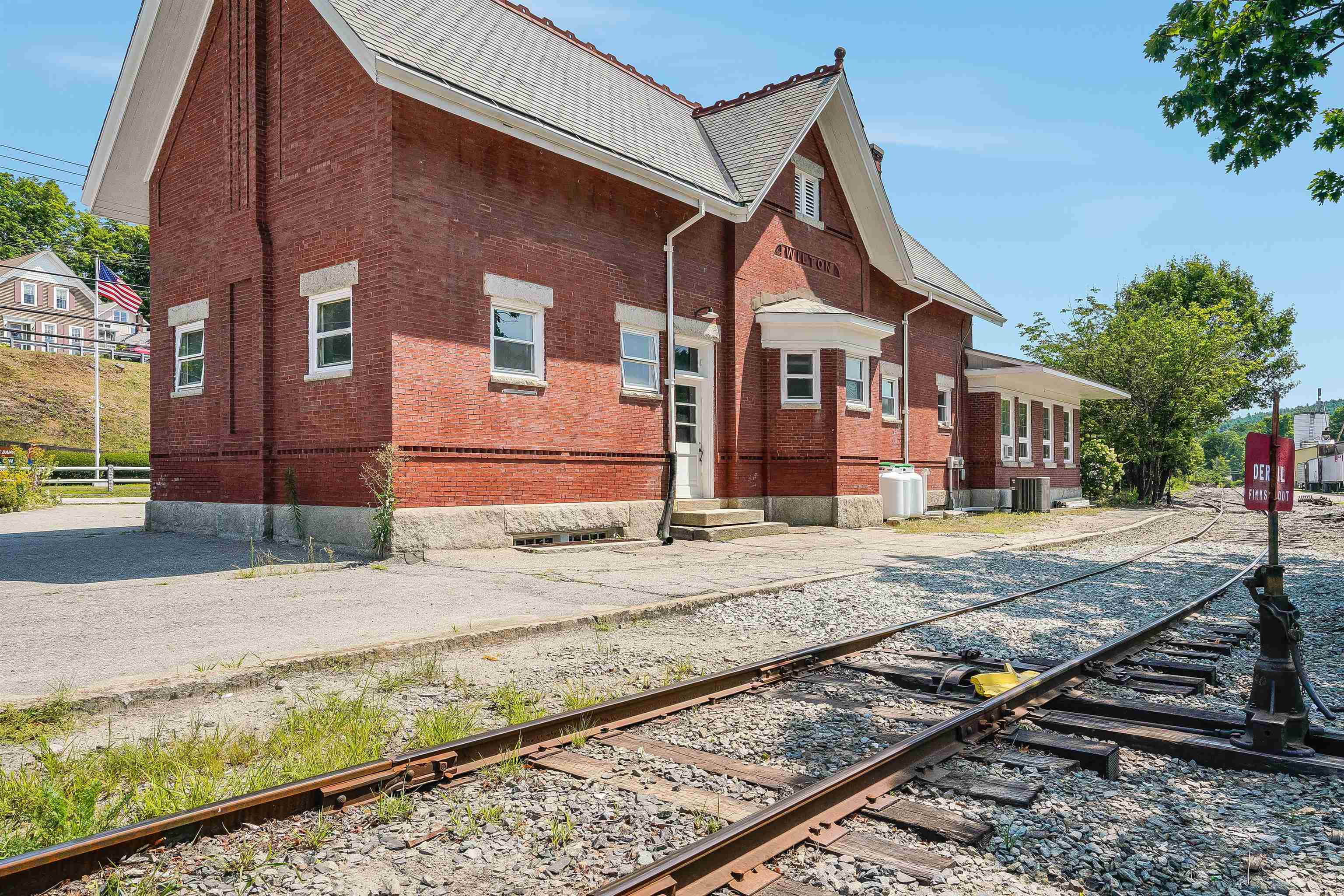 Unique opportunity for the discerning Buyer with vision. This Historic local landmark, originally the Train Station, was converted into Commercial space, most recently home to a dental office and surveying company. Many commercial uses are allowed in the Downtown District, and this building retains many of the original features that are absent from new construction today. Amazing original woodwork, masonry and exterior detail with generous parking. The current owner has made many upgrades to the property, and the building is now a blank canvass for the future owner's imagination. Wilton is home to anchor businesses such as the Town Hall Theater and Nelson's Candy, to name a few. This building is currently two Condos, with no fees, but easily returned to a single unit if so desired. Myriad possible uses, including Residential with Town Approvals. Not many buildings like this left in New Hampshire, and it is a solid and straight as the day it was built.