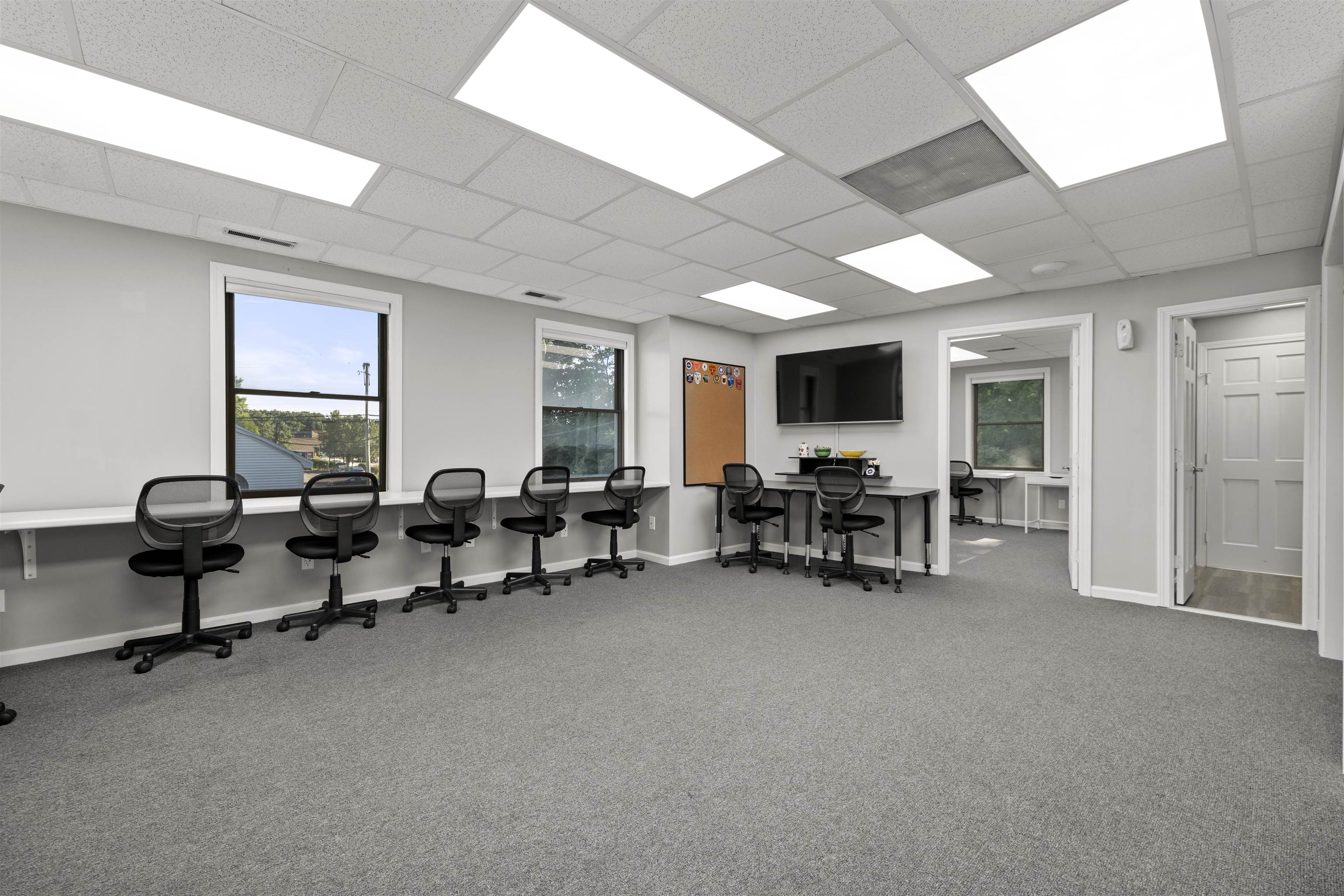 Recently Renovated Commercial Condo perfect for your business needs. The space features a large open area, a private office, and a bathroom equipped with brand-new fixtures. Recent renovations include fresh paint, new carpeting, an updated ceiling, and a 2024 water heater. Modern amenities include a 2021 AC unit, a smart thermostat, keyless entry, and security cameras. The unit also benefits from a building-wide security system and comes furnished with desks, shelves, storage cabinets, and chairs. Additionally, there are three hallway storage closets available. Currently used as a trade school, the space is versatile and ready for its next purpose. The HOA fee of $200 covers waste removal, water, grounds maintenance, and snow removal. The property is served by municipal water and sewer services, with all units in the building currently owner-occupied. Conveniently located at 904 Hanover Street, this property is less than a mile from I-93 via Exits 6 or 8 and under two miles from downtown Manchester. Nearby amenities include Eastside Plaza, home to Hannaford Supermarket, NH Liquor & Wine Outlet, Aloha Restaurant, and more, as well as Citizens Bank, Derryfield Country Club, and Elliot Hospital.