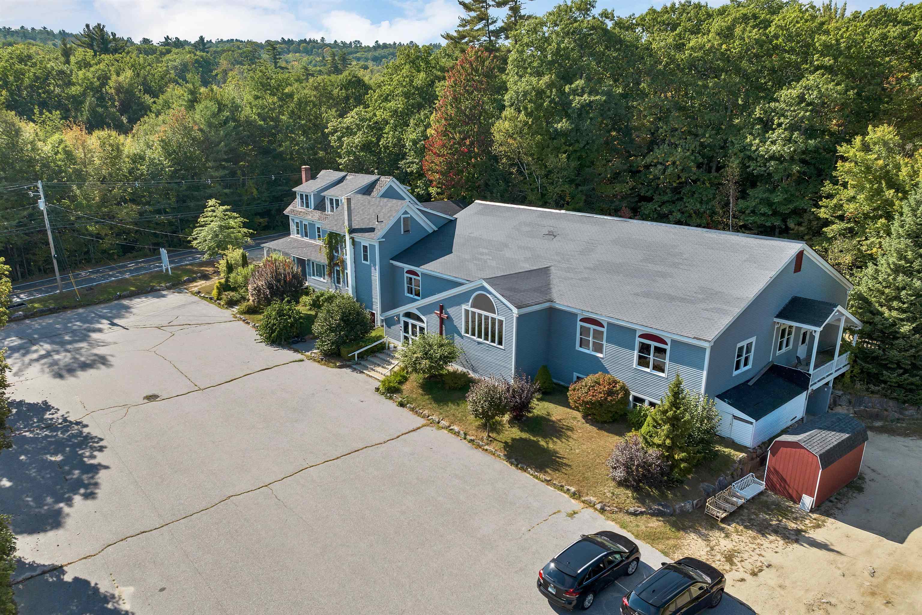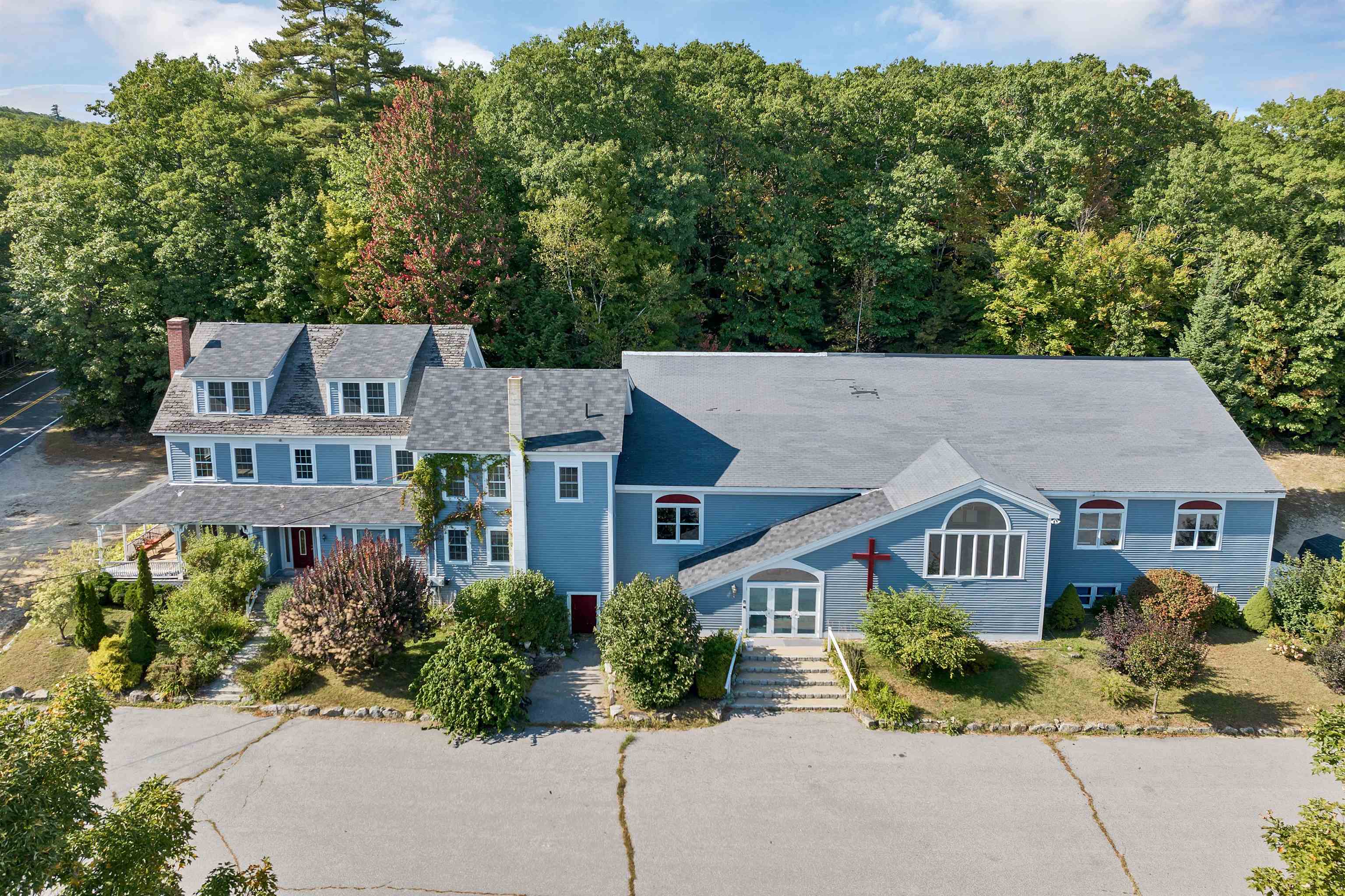 Currently +/- 6000SF Church building is occupied by a functioning congregation, Lower Level is occupied by Food Pantry/Thrift Shop run by non profit entity. Both would love to continue their tenancy. Front Colonial Style Parsonage has 6 Bedrooms and 5 1/2 baths and is vacant at this time. Huge kitchen and open living/dining areas give the feel of a country inn to this home. Property was brought up to code in 2018 for occupancy purposes - fire alarm system is wired directly into the local Fire Department. Fire Doors separate the living quarters from the church building. Possibilities abound in this property located on the boarder of Moultonborough and Center Harbor a short drive from the shores of Lake Winnipawsaukee and the Town Beach.