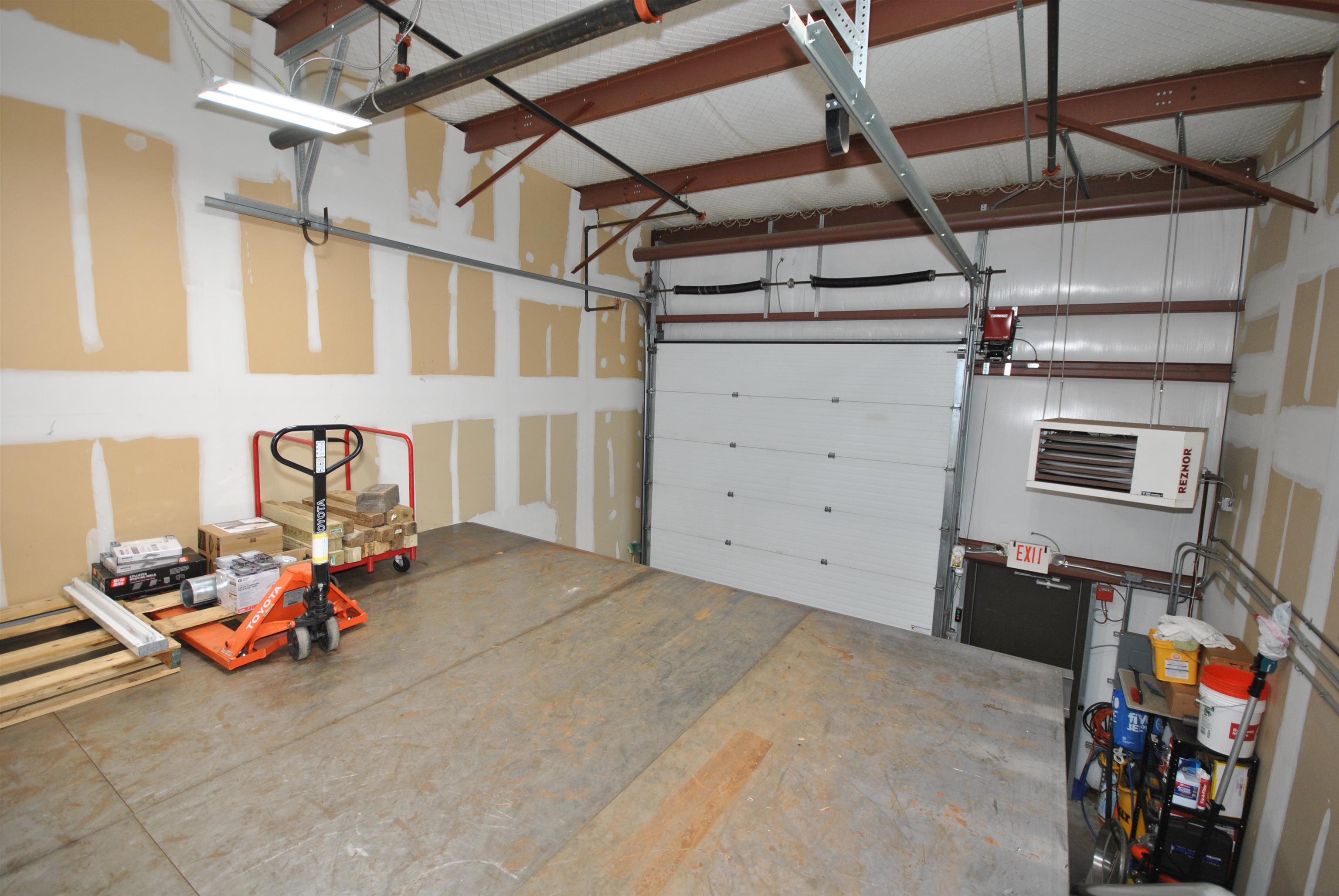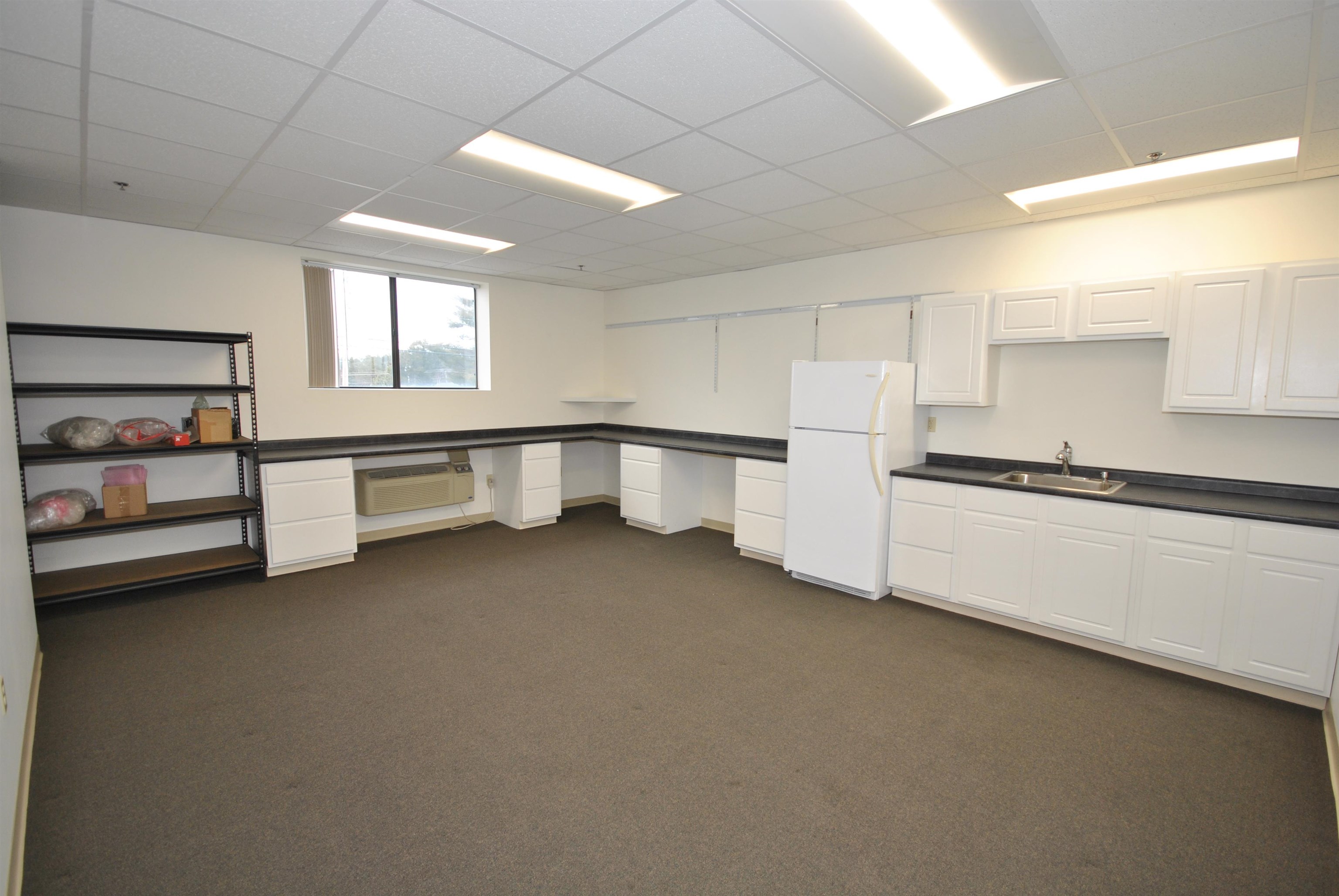 Stop paying rent and own for less! Here's your opportunity for a Commercial/Industrial Condo in excellent condition. First floor front office is 400 sf, plus ADA bathroom, along with an additional 400 sq second floor with kitchenette. Warehouse is 800sf plus 28'x20' (560sf) structural steel frame mezzanine, plus a 2nd bathroom in the warehouse. 3 phase electric, 8. 5' ceiling under mezzanine (can park a truck). Automatic garage door opener, full sprinkler system. Gas heat in warehouse, plus heat and AC in office. Three assigned parking spaces plus visitor parking. Low Condo fee of $200/mo includes water, sewer, plowing, landscaping and outside maintenance.