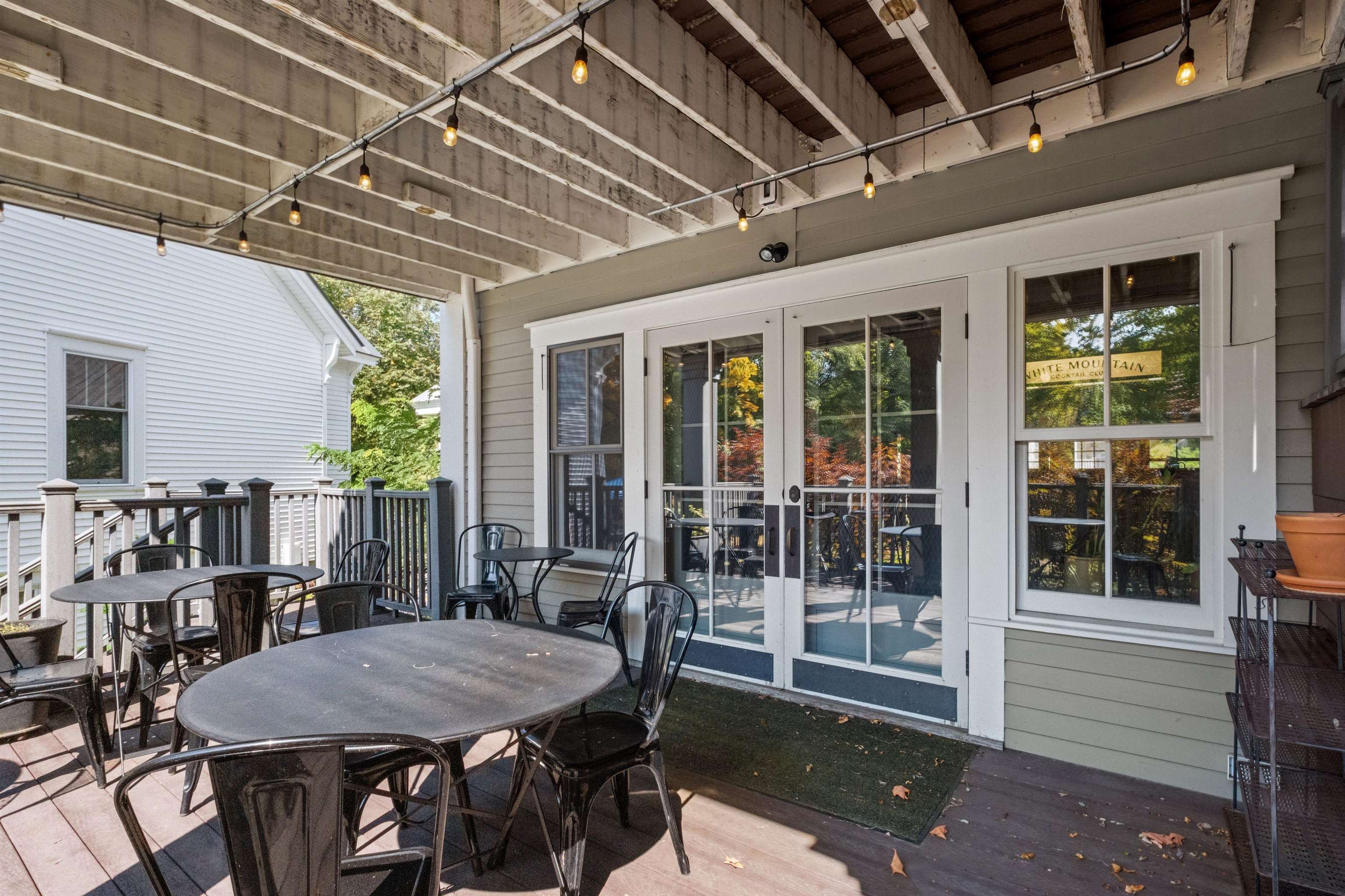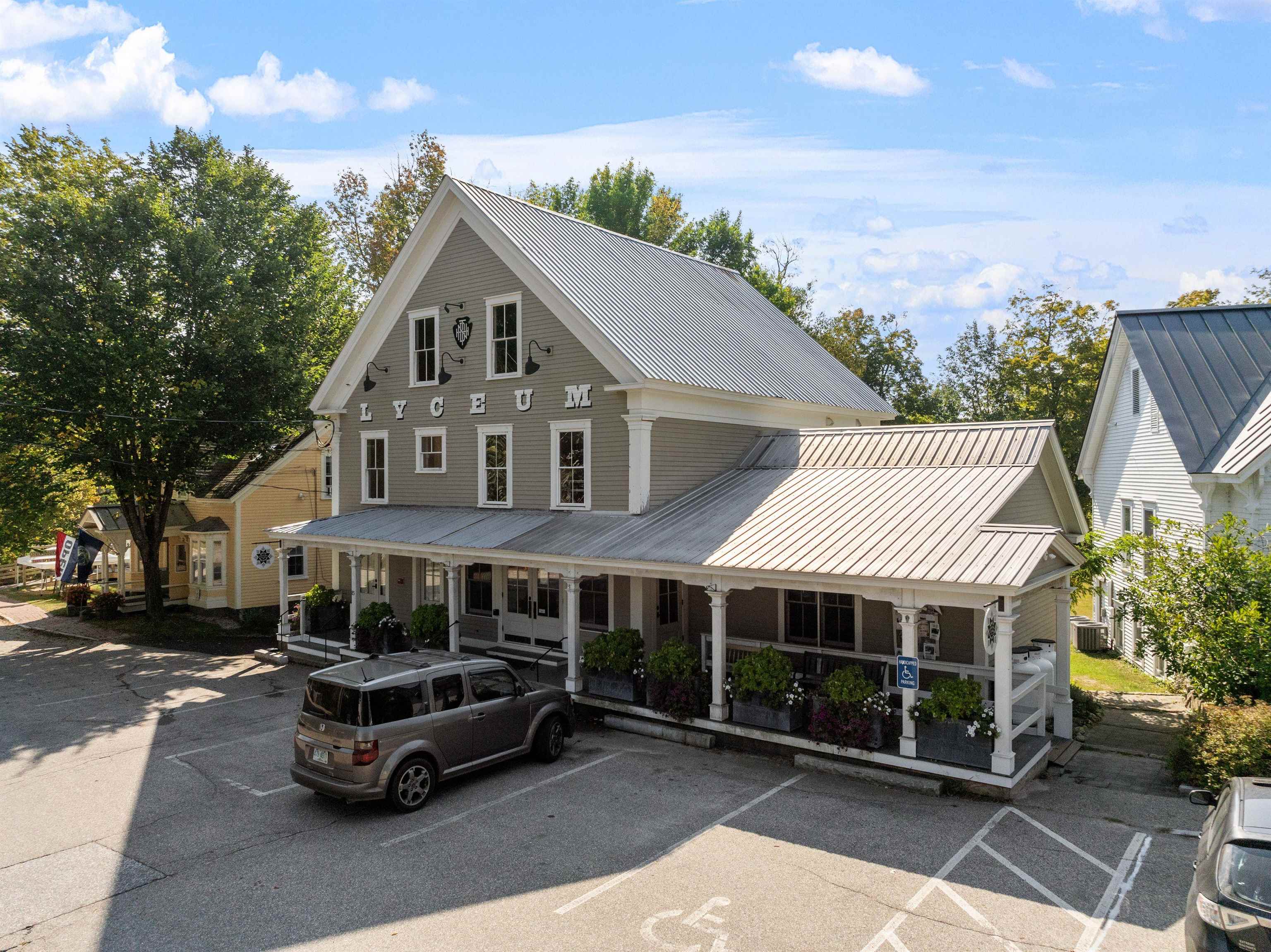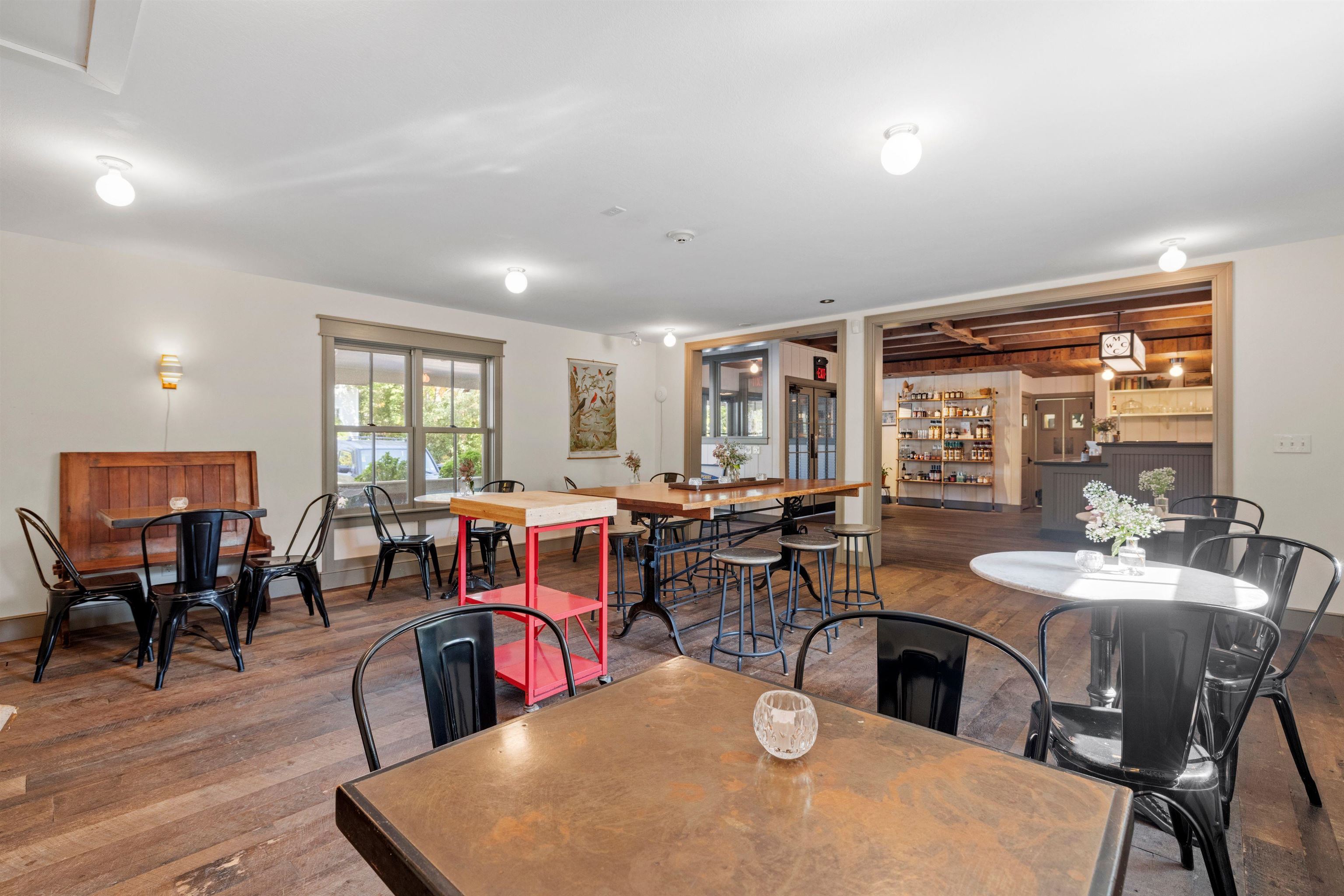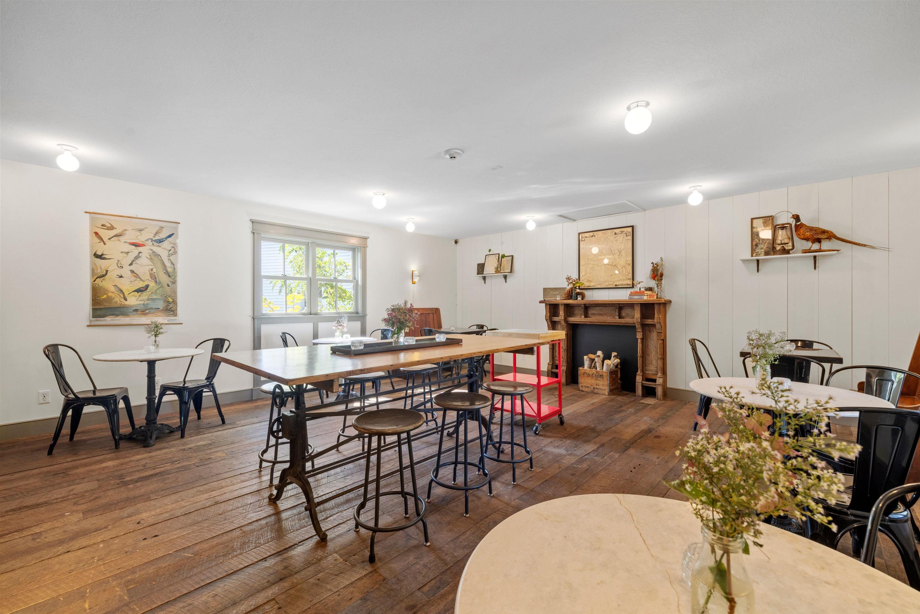 Discover a gem in the heart of downtown Tamworth—an impeccably maintained historic building brimming with character. Currently operating as the Lyceum, under the ownership of the Tamworth Distilling, this property presents an incredible opportunity with no zoning restrictions. Step inside to find a spacious open concept floor plan. At the heart of the space, a wrap-around bar takes center stage, complemented by a quaint dining area, while an ADA-compliant 1/2 bath and a fully equipped commercial kitchen make it ready for immediate use. Double doors lead to a generous deck area, where you can soak in stunning views of the Swift River—ideal for outdoor gatherings and events. Upstairs, discover a versatile 2–3-bedroom apartment complete with another commercial kitchen, full bathroom, & washer/dryer. Gorgeous wood floors and massive windows flood the area with natural light. A private deck off the kitchen provides an excellent space for indoor/outdoor entertaining and grilling, with stairs to the first-floor deck, while attic access offers potential for expanded living space. This property is perfectly suited for a live-in café, restaurant, retail spot, or event venue. With it's location, you’re just steps away from everything downtown Tamworth has to offer, including the Tamworth Distilling, Barnstormers Theatre, Town Hall, Remick Country Doctor Museum & Farm, and the bustling farmer’s market. Your imagination is the only limit. Don’t miss out on this extraordinary opportunity!