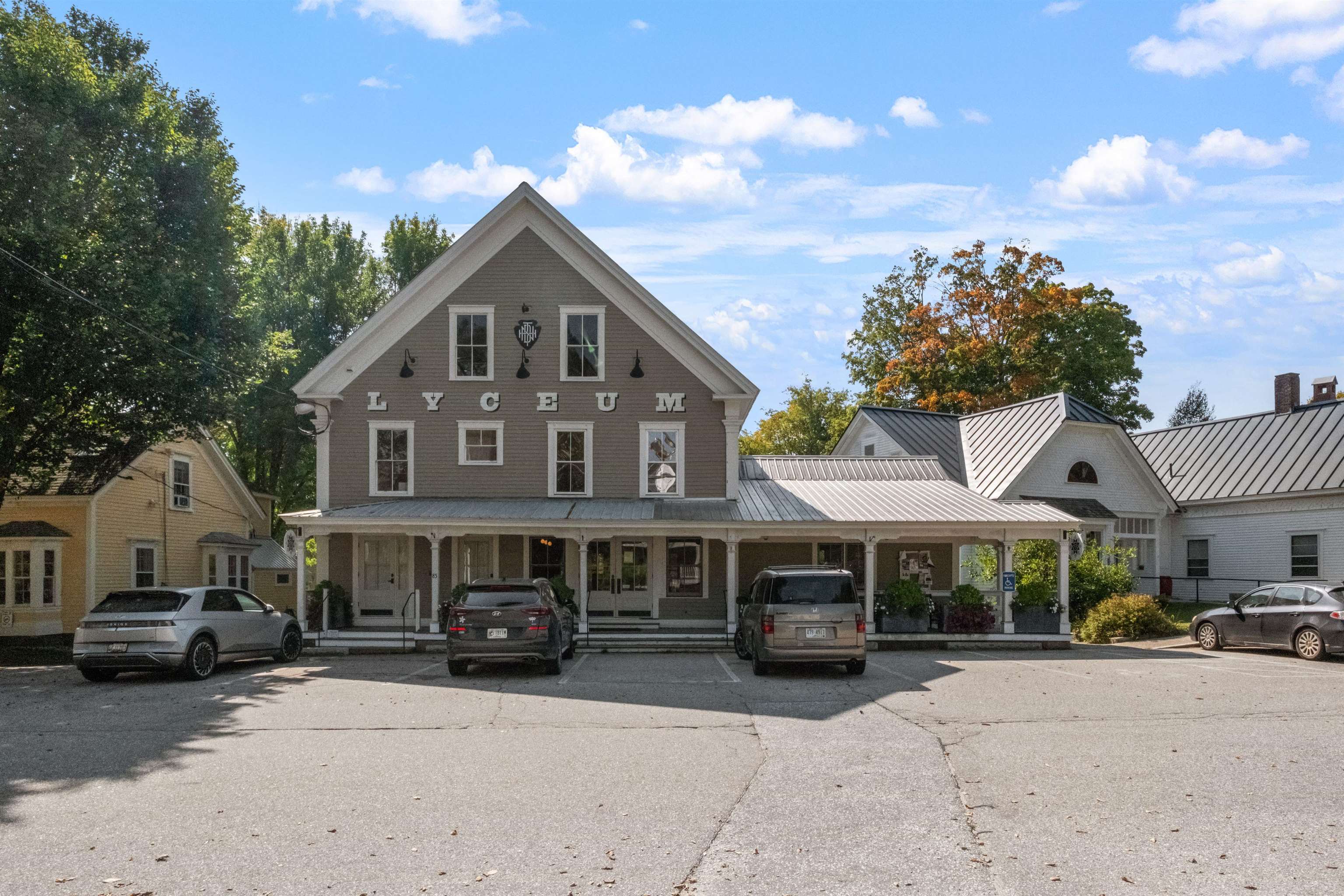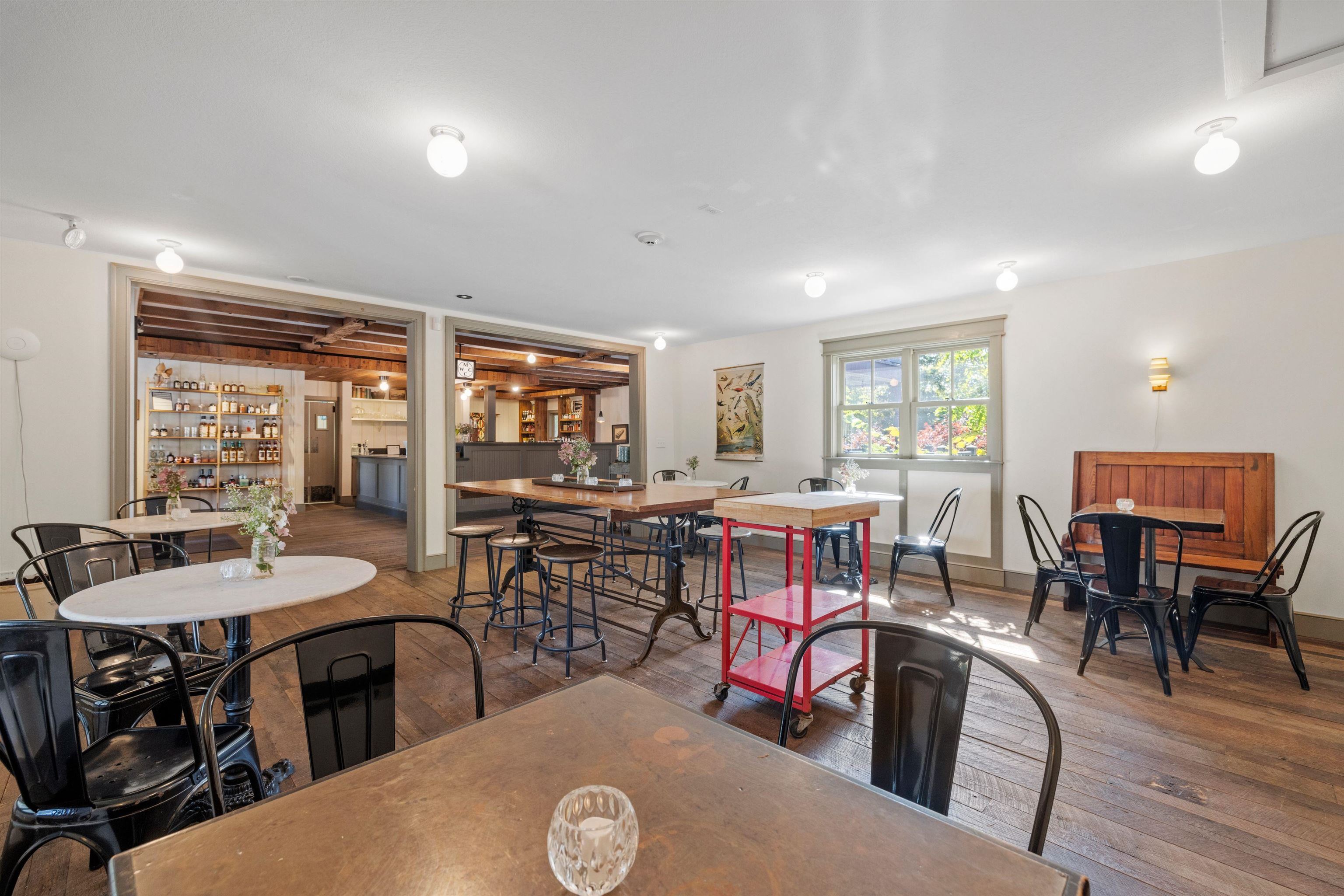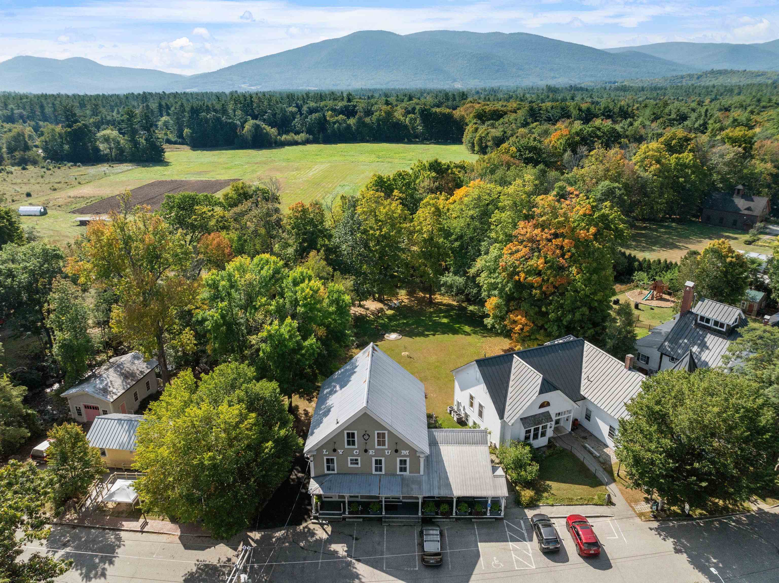 Discover a gem in the heart of downtown Tamworth—an impeccably maintained historic building brimming with character. Currently operating as the Lyceum, under the ownership of the Tamworth Distilling, this property presents an incredible opportunity with no zoning restrictions. Step inside to find a spacious open concept floor plan. At the heart of the space, a wrap-around bar takes center stage, complemented by a quaint dining area, while an ADA-compliant 1/2 bath and a fully equipped commercial kitchen make it ready for immediate use. Double doors lead to a generous deck area, where you can soak in stunning views of the Swift River—ideal for outdoor gatherings and events. Upstairs, discover a versatile 2–3-bedroom apartment complete with another commercial kitchen, full bathroom, & washer/dryer. Gorgeous wood floors and massive windows flood the area with natural light. A private deck off the kitchen provides an excellent space for indoor/outdoor entertaining and grilling, with stairs to the first-floor deck, while attic access offers potential for expanded living space. This property is perfectly suited for a live-in café, restaurant, retail spot, or event venue. With it's location, you’re just steps away from everything downtown Tamworth has to offer, including the Tamworth Distilling, Barnstormers Theatre, Town Hall, Remick Country Doctor Museum & Farm, and the bustling farmer’s market. Your imagination is the only limit. Don’t miss out on this extraordinary opportunity!