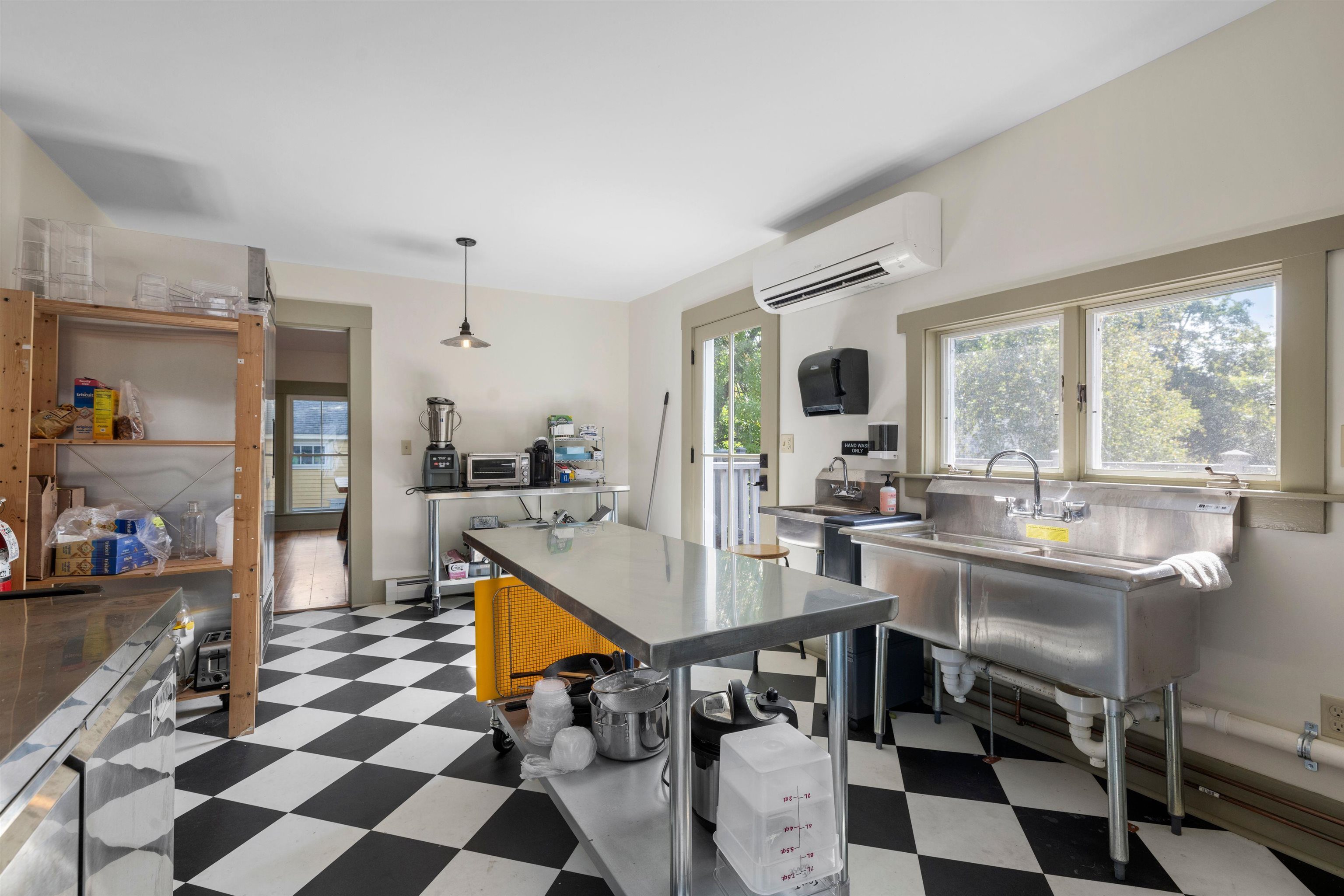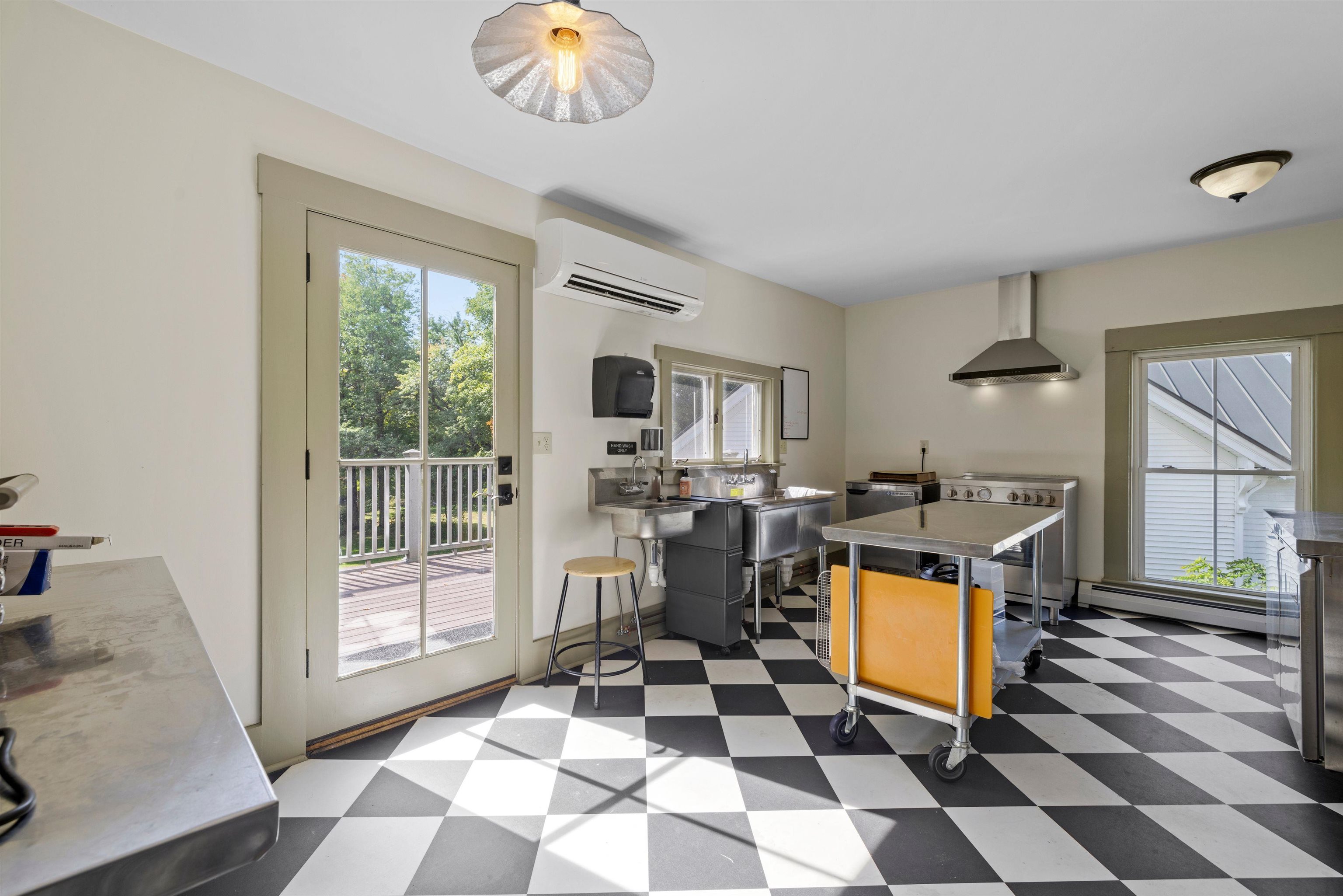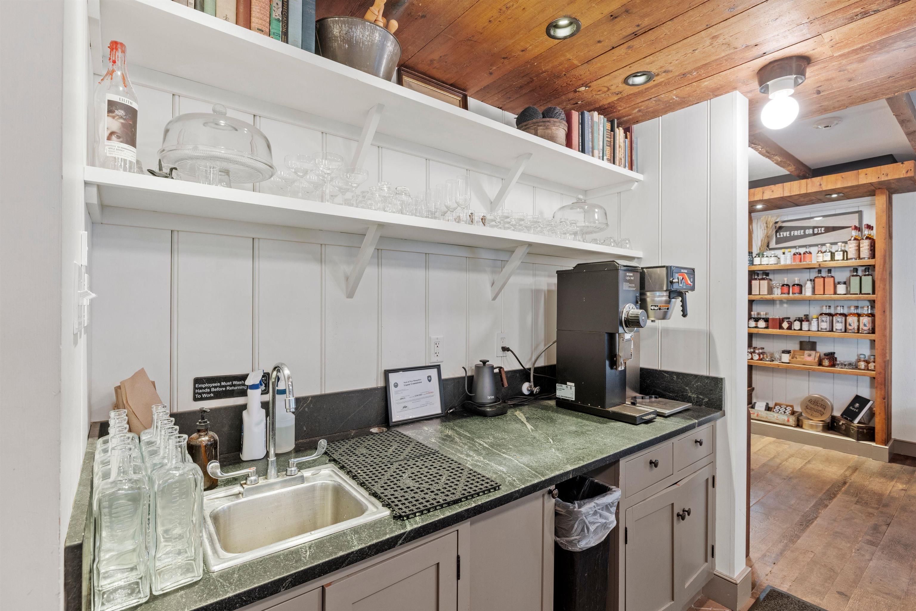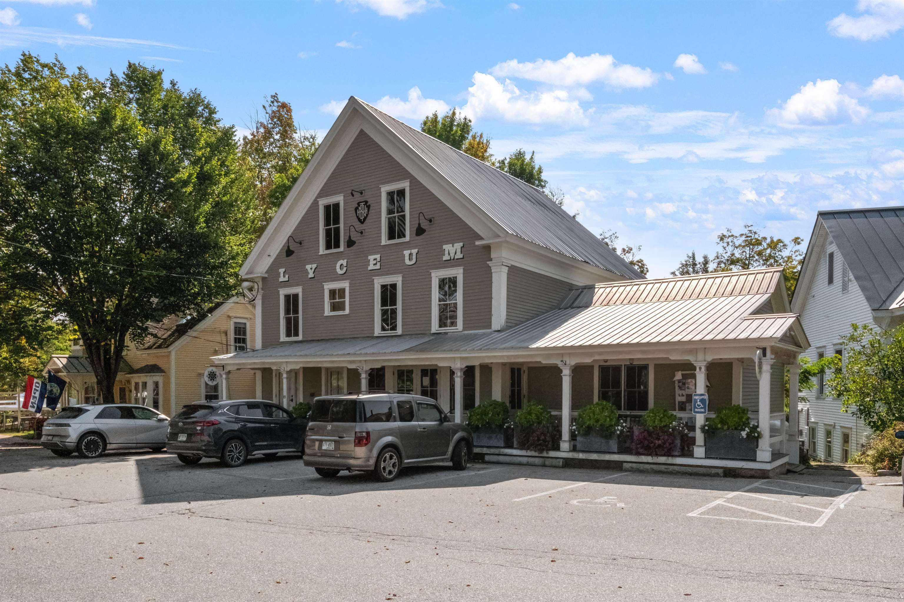 Discover a gem in the heart of downtown Tamworth—an impeccably maintained historic building brimming with character. Currently operating as the Lyceum, under the ownership of the Tamworth Distilling, this property presents an incredible opportunity with no zoning restrictions. Step inside to find a spacious open concept floor plan. At the heart of the space, a wrap-around bar takes center stage, complemented by a quaint dining area, while an ADA-compliant 1/2 bath and a fully equipped commercial kitchen make it ready for immediate use. Double doors lead to a generous deck area, where you can soak in stunning views of the Swift River—ideal for outdoor gatherings and events. Upstairs, discover a versatile 2–3-bedroom apartment complete with another commercial kitchen, full bathroom, & washer/dryer. Gorgeous wood floors and massive windows flood the area with natural light. A private deck off the kitchen provides an excellent space for indoor/outdoor entertaining and grilling, with stairs to the first-floor deck, while attic access offers potential for expanded living space. This property is perfectly suited for a live-in café, restaurant, retail spot, or event venue. With it's location, you’re just steps away from everything downtown Tamworth has to offer, including the Tamworth Distilling, Barnstormers Theatre, Town Hall, Remick Country Doctor Museum & Farm, and the bustling farmer’s market. Your imagination is the only limit. Don’t miss out on this extraordinary opportunity!
