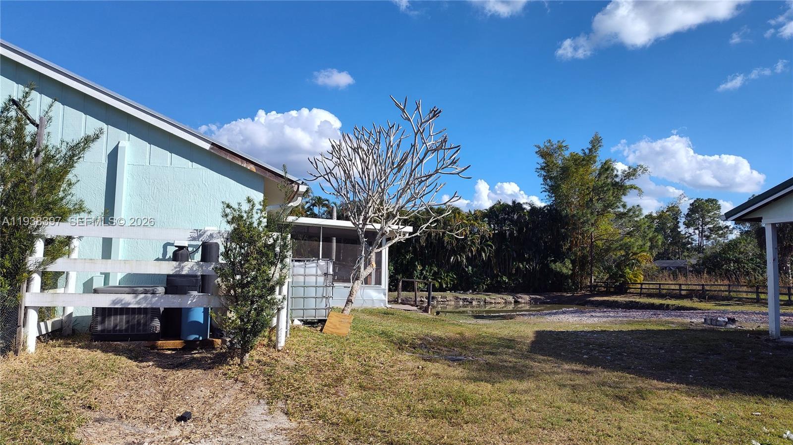 Welcome to your CBS construction dream home in Loxahatchee! This charming single-family property offers 3 bedrooms, 2 bathrooms, and a 1-car garage, ideal for families, investors or anyone seeking space, privacy, and a peaceful country lifestyle with modern comfort. The home features a 2-year-old aluminum roof, providing durability and long-term peace of mind, Central A/C was installed in 2019, The master bedroom includes a walk-in closet, Step outside through the French doors onto the screened back porch, where you can enjoy your morning coffee or host a barbecue with friends and family. The huge 1. 28-acre yard is completely fenced with a pond and many mature fruit trees (papaya, passion fruit, guava, and more). perfect for pets or children to play safely. For animal lovers the property includes two stalls in the small barn stable and a separate 3rd stall/paddock, ideal for horse lovers, also, a chicken coup as well, plenty of space for RV, boat, or trailer parking. The home has no structural damage; only minor cosmetic touch-ups may be desired to personalize it to your taste.