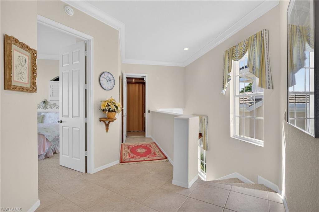 ELEVATE YOURSELF into this lovely second-floor coach home in Seville at Pelican Marsh. With full STORM PROTECTION SHUTTERS ON EVERY WINDOW AND THE LANAI, and featuring three spacious bedrooms, an expansive den or media room, large dining room, two full baths and a half-bath bath, this residence offers the perfect blend of comfort and style. The ELEVATOR is convenient and at times, necessary. The AC is new as of 2024. With an open and airy floor plan, the spacious living room flows directly into the kitchen. Enjoy long lake views from your private lanai, creating an idyllic backdrop for morning coffee or evening relaxation. This property includes a roomy two-car garage, providing ample space for your vehicles and storage needs, and the building location has additional outside parking for convenience. The expansive Seville pool area is one of the best in Pelican Marsh with new tile and outdoor furniture and a glistening, contemporary water feature. Beautifully landscaped, Pelican Marsh is very close to the Mercato, Waterside Shops, and Artis-Naples for dining, shopping, and world-class music and theater. The active sports and resort lifestyle is enhanced by organized tennis, pickleball, bocce ball, and optional golf membership. The friendly outdoor community gathering spot of Courtside restaurant is where you’ll meet friends for food, drinks and entertainment. The location of Pelican Marsh in North Naples sets it apart as a special oasis to relax, play, shop, dine or hit nearby Vanderbilt Beach.