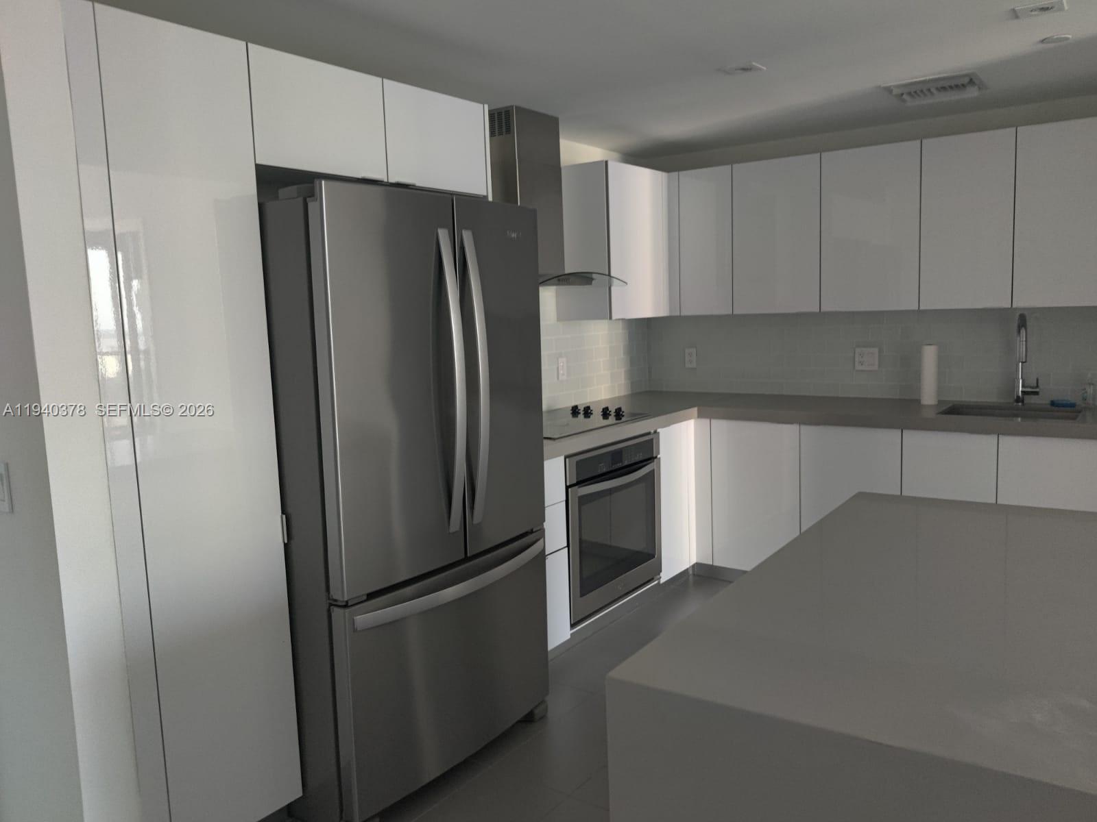 This bright and modern unit showcases an efficient open layout enhanced by floor-to-ceiling glass that fills the home with natural light and captures attractive city views. The contemporary kitchen features clean-lined cabinetry, stainless steel appliances, and smart storage solutions, opening naturally to the living and dining spaces—perfect for hosting or relaxed everyday living.