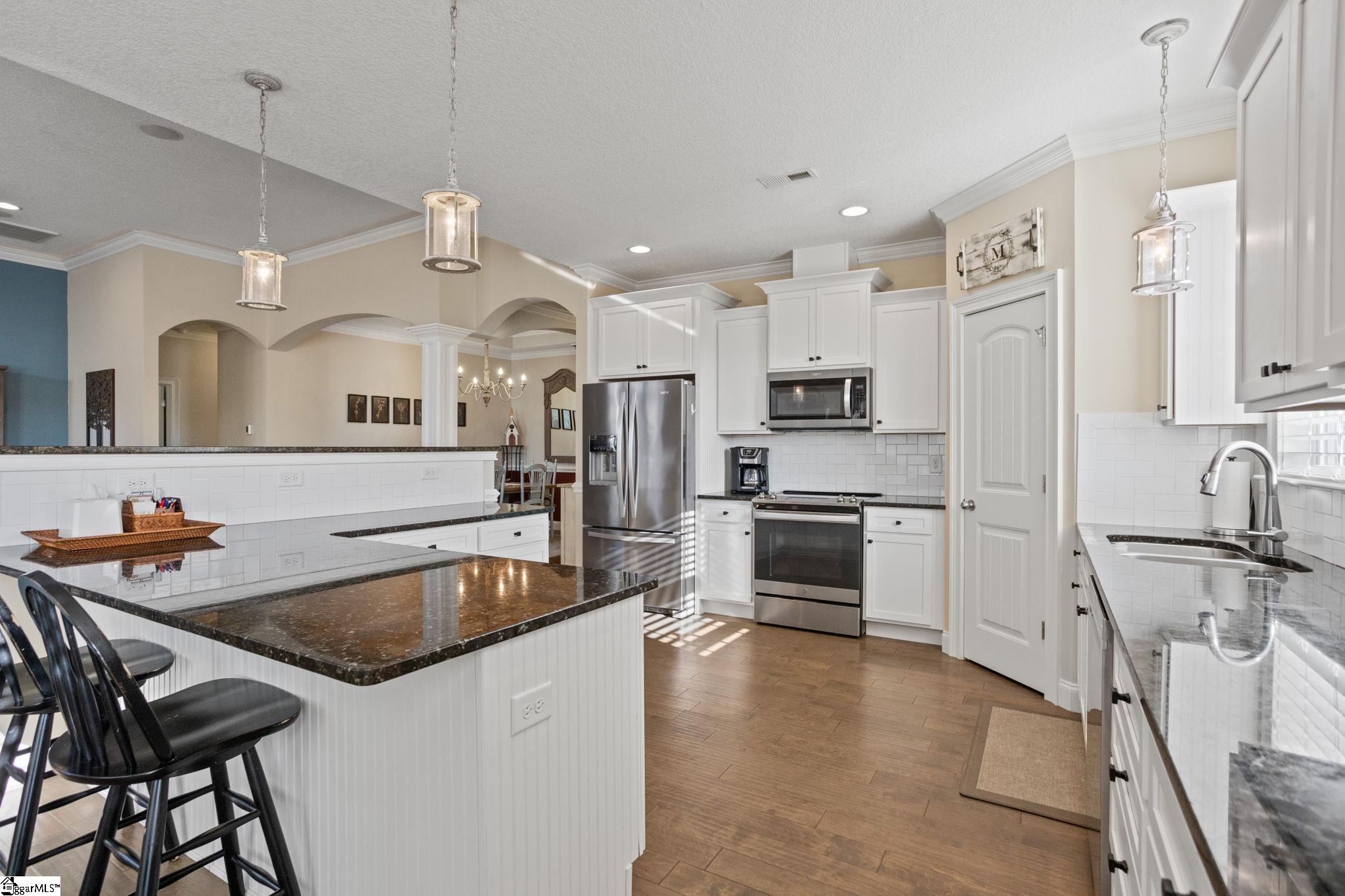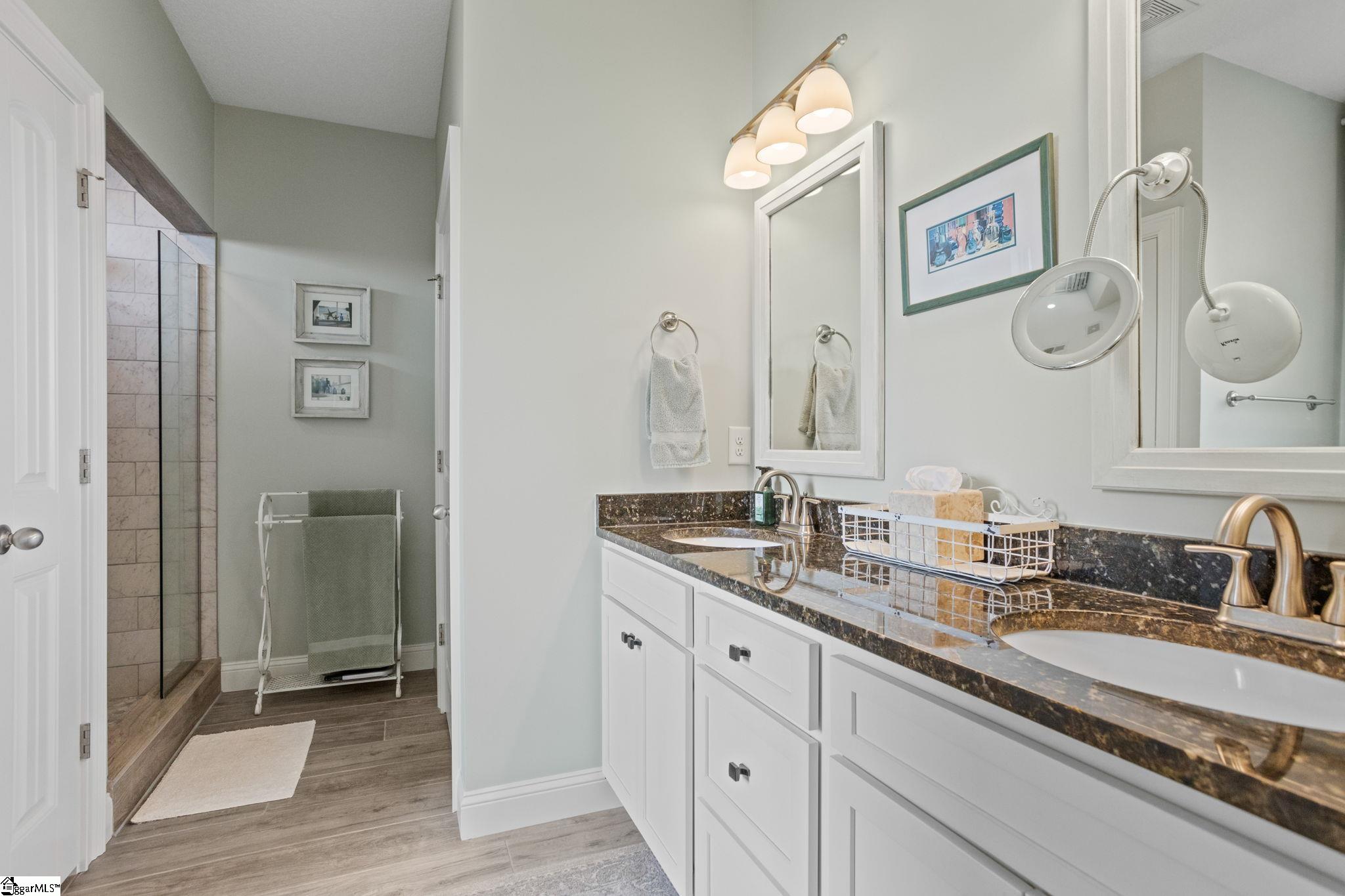 The Oaks at Woodfin — This beautifully maintained one-level home offers 3 bedrooms and 2. 5 baths, thoughtfully designed for both comfort and functionality. The open floor plan showcases a spacious great room with soaring ceilings, a gas log fireplace, and a seamless flow into the dining area—ideal for everyday living and entertaining. The eat-in kitchen features granite countertops, a tile backsplash, a walk-in pantry, abundant cabinetry, and a sunny breakfast area. A dedicated office provides flexible space and can easily serve as a fourth bedroom if desired. Enjoy year-round relaxation in the inviting sunroom or step outside to the patio overlooking a meticulously manicured yard. The primary suite is a true retreat, complete with a sitting area, two walk-in closets, and a luxurious bath with tile shower, jetted tub, and double vanity. Two additional bedrooms share a hall bath, while the conveniently located half bath is perfect for guests. Additional highlights include a laundry/mudroom with utility sink, an attached two-car garage with yard door, and exceptional pride of ownership throughout. Owner must maintain a social membership with Woodfin Ridge (approximately $600/year) in addition to the $350 annual HOA fee to The Oaks. This immaculate home is move-in ready and a must-see!
