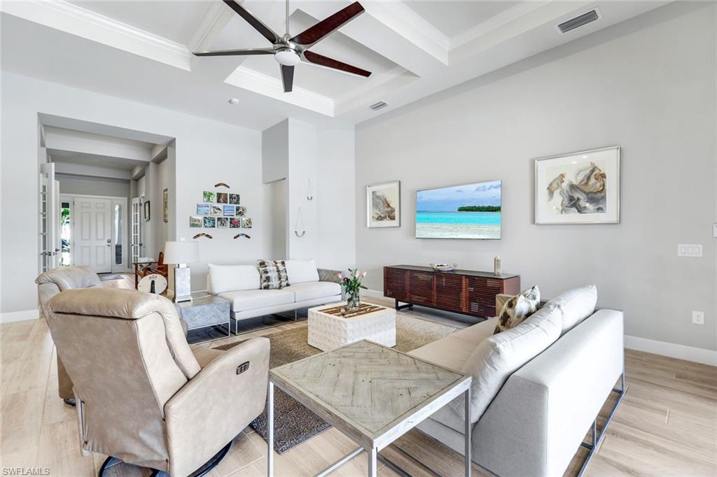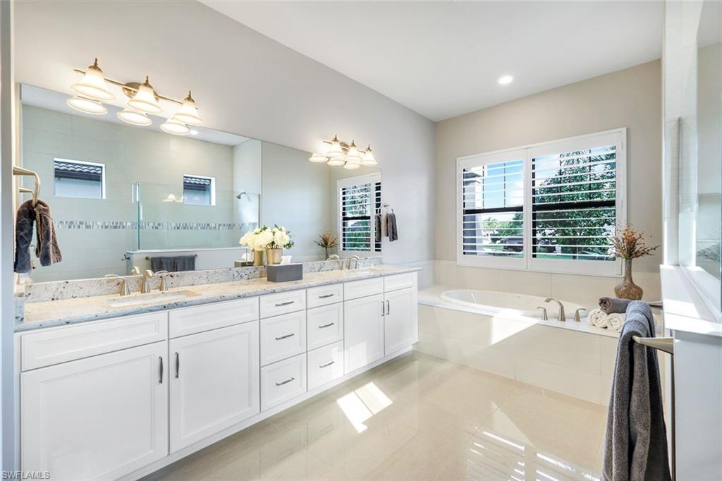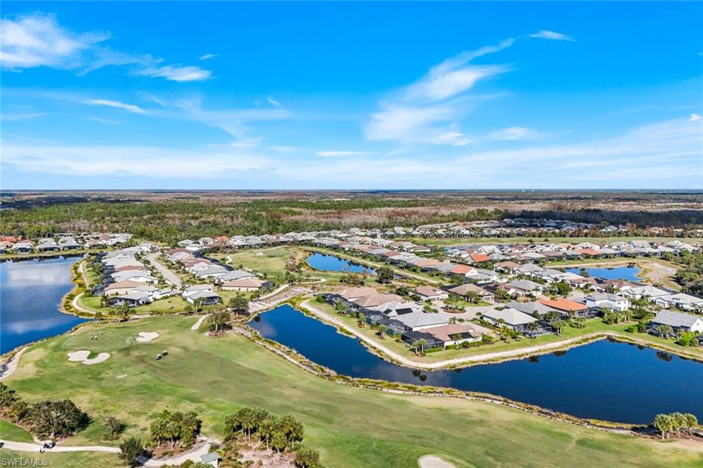 Calling all GOLF connoisseurs and luxury seekers. Welcome to an extraordinary, one-of-a-kind estate perfectly positioned on a larger sized premium cul-de-sac lot within the prestigious GREYHAWK at Golf Club of the Everglades. This exceptional residence offers breathtaking, uninterrupted views of the tranquil lake and the 18-hole championship golf course, showcasing views of the 3rd, 12th, and 14th holes, along with the tee box for the 13th hole, all beautifully framed by a PANORAMIC lanai—an ideal backdrop for unforgettable sunsets and serene mornings. This stunning CLUBVIEW model spans 3, 083 square feet and is thoughtfully designed for both refined entertaining and everyday relaxation, creating the feel of a private resort. A charming rocking-chair front porch sets the tone, while the extended rear lanai invites you to fully embrace Florida’s indoor-outdoor lifestyle. Inside, a grand foyer opens to a spacious four-bedroom, three-bath layout complimented by two private offices/dens and an oversized three-car garage. The heart of the home is the chef’s kitchen, featuring gas cooking, an extended island, and seamless flow into the formal dining room and expansive gathering room, highlighted by an elegant coffered ceiling. The luxurious primary suite is a true retreat, offering dual custom oversized closets and a spa-inspired bath with soaking tub, walk-in shower, and ample linen storage. The guest wing provides exceptional privacy, featuring a large guest suite with custom walk-in closet and a Jack-and-Jill bedroom configuration sharing a third bath. Step outside to your private oasis: a covered and extended travertine lanai surrounds an oversized (442sf) gas heated saltwater POOL AND SPA, complete with sun shelf and fountains—perfect for entertaining or unwinding in style. The immaculate garage is equally impressive, featuring epoxy flooring, custom cabinetry, ceiling-height storage, and a split A/C system. Located in an amenity-rich, socially vibrant golf community, residents enjoy a full calendar of events, sports complex, state-of-the-art fitness center, resort-style heated pool, and two clubhouses with year-round dining. This is more than a home—it’s a lifestyle. Fall in love with this truly must-see luxury retreat.