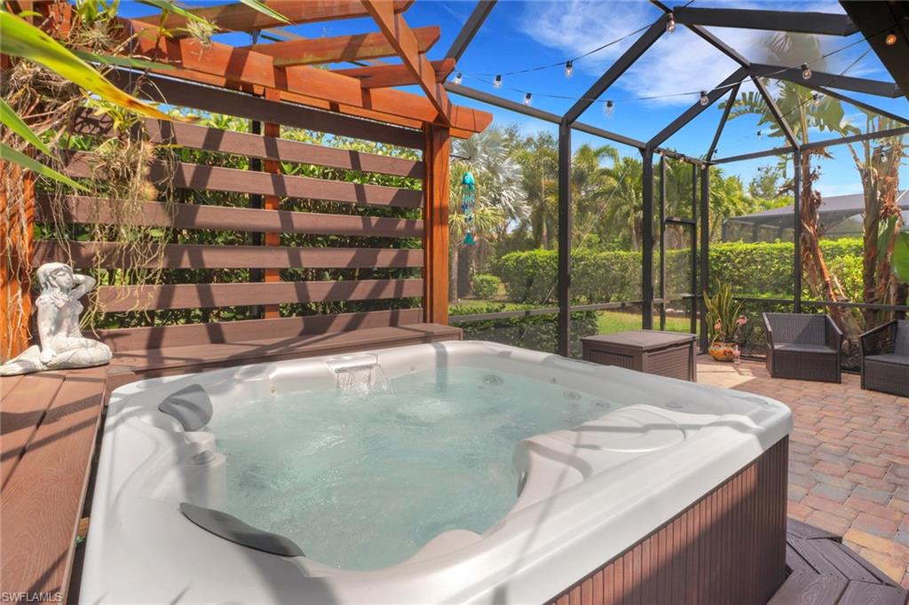 Built in 2014, this well maintained residence offers 3 bedrooms, 2 bathrooms, a private office with custom built-ins. Approximately 1, 912 square feet of thoughtfully designed living space, perfect for families, retirees, or seasonal residents seeking comfort and elegance. As you step through the inviting front door, you’re greeted by an open-concept floor plan that seamlessly blends sophistication with functionality. The spacious living area features neutral wood flooring and natural light, creating a warm and welcoming ambiance. The kitchen is a chef’s dream, boasting granite countertops, stainless steel appliances, a large center island, and ample cabinetry for storage. Adjacent to the kitchen, the dining area flows effortlessly into the living room, making it ideal for entertaining guests or enjoying cozy family nights. Outside, the home’s charm continues with a beautifully landscaped lot spanning 0. 2 acres. The screened lanai offers a serene space to unwind, including a hot tub and privacy pergola overlooking a private backyard with lush greenery and preserve views, ensuring tranquility and privacy. Imagine sipping your morning coffee or hosting a sunset barbecue in this peaceful oasis. The attached two-car garage provides ample storage and convenience, with additional upgrades like hurricane shutters for peace of mind.