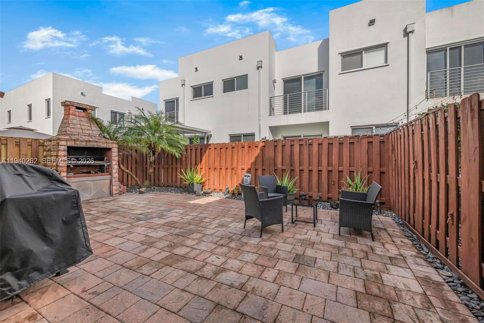 level, custom closets with an organization system, impact-resistant windows, a built-in barbecue, and a terrace