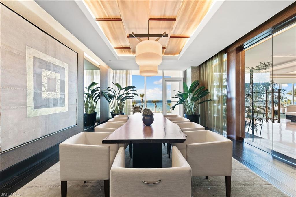 Experience elevated coastal living in this exceptional four-bedroom plus den Gulf-front penthouse, ideally in one of Naples prestigious beachfront communities. Designed to captivate from moment you arrive, the private elevator opens directly into your residence, setting an intimate tone of exclusivity and refined living. Expansive Gulf of Mexico views serve as backdrop to a sophisticated split-floor plan featuring over 5, 073 total square feet. The gourmet kitchen is a chef’s delight, complete with a butler’s pantry and thoughtful design elements that enhance function and style. The spacious adjoining great room with fireplace and cozy breakfast area is an ideal relaxed setting. A formal dining area with sliding glass doors to the lanai, a living room and a separate den/office offers a serene workspace or additional private retreat that flows effortlessly for relaxed and elegant entertaining. The luxurious primary suite is a sanctuary of comfort featuring an elegant spa-inspired bath, a grand walk-in closet and a secluded outdoor balcony offering privacy. Three spacious guest suites, each with access to beautifully appointed baths, ensure privacy for family and guests. Additional features include a powder room, a well-equipped laundry room and a welcoming foyer. A secured two-car under-building private secured garage provides convenience and peace of mind. In the premier Gulf-front enclave of Moraya Bay, residents enjoy a pet-friendly lifestyle and access to five-star amenities, including a gourmet beachfront restaurant and bar, two resort-style pools, concierge and chair/towel service, a state-of-the-art fitness center and 24-hour security. This exceptional penthouse embodies luxury, privacy and effortless coastal sophistication, an extraordinary opportunity in Naples desired beachfront destination.