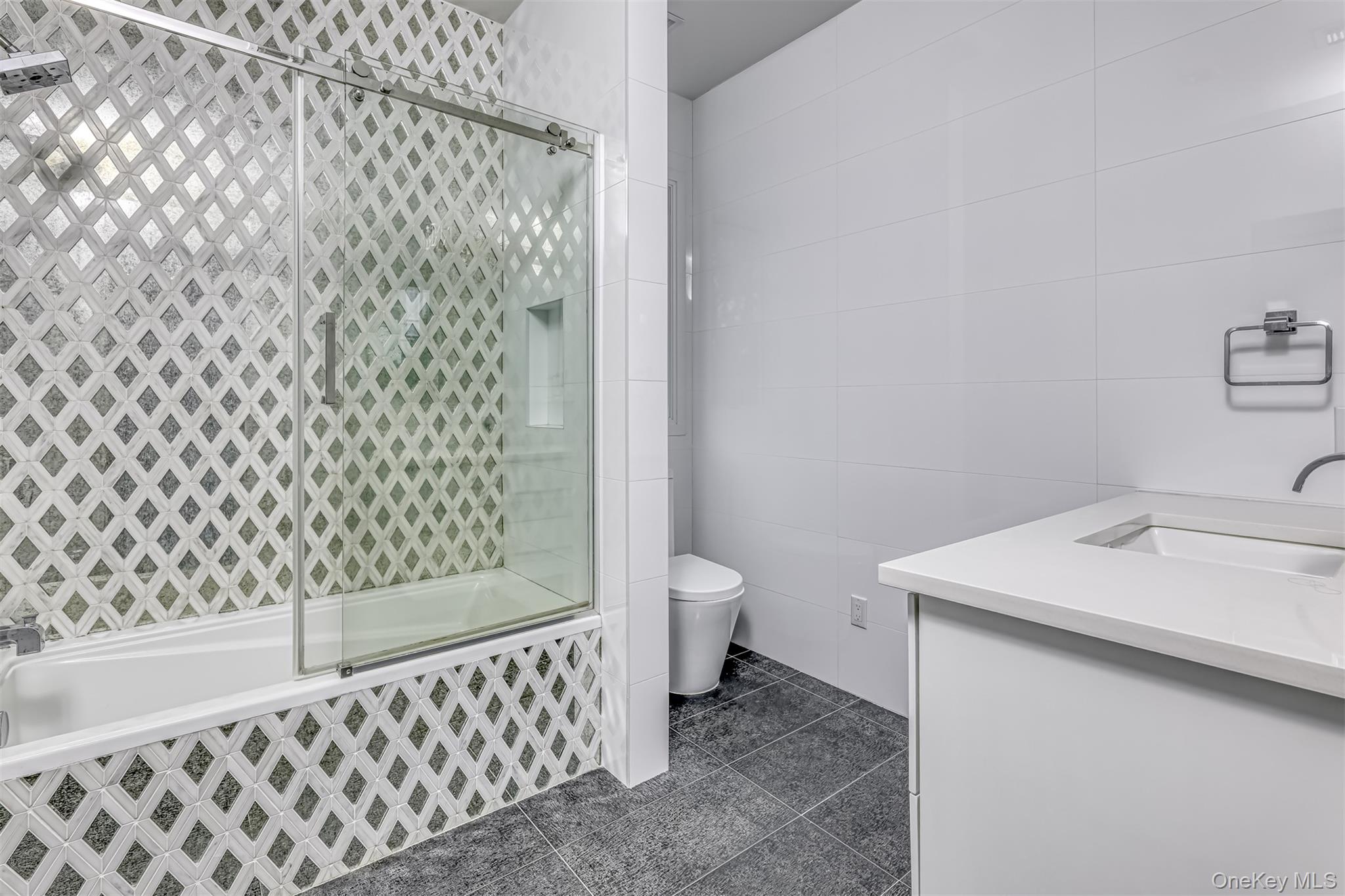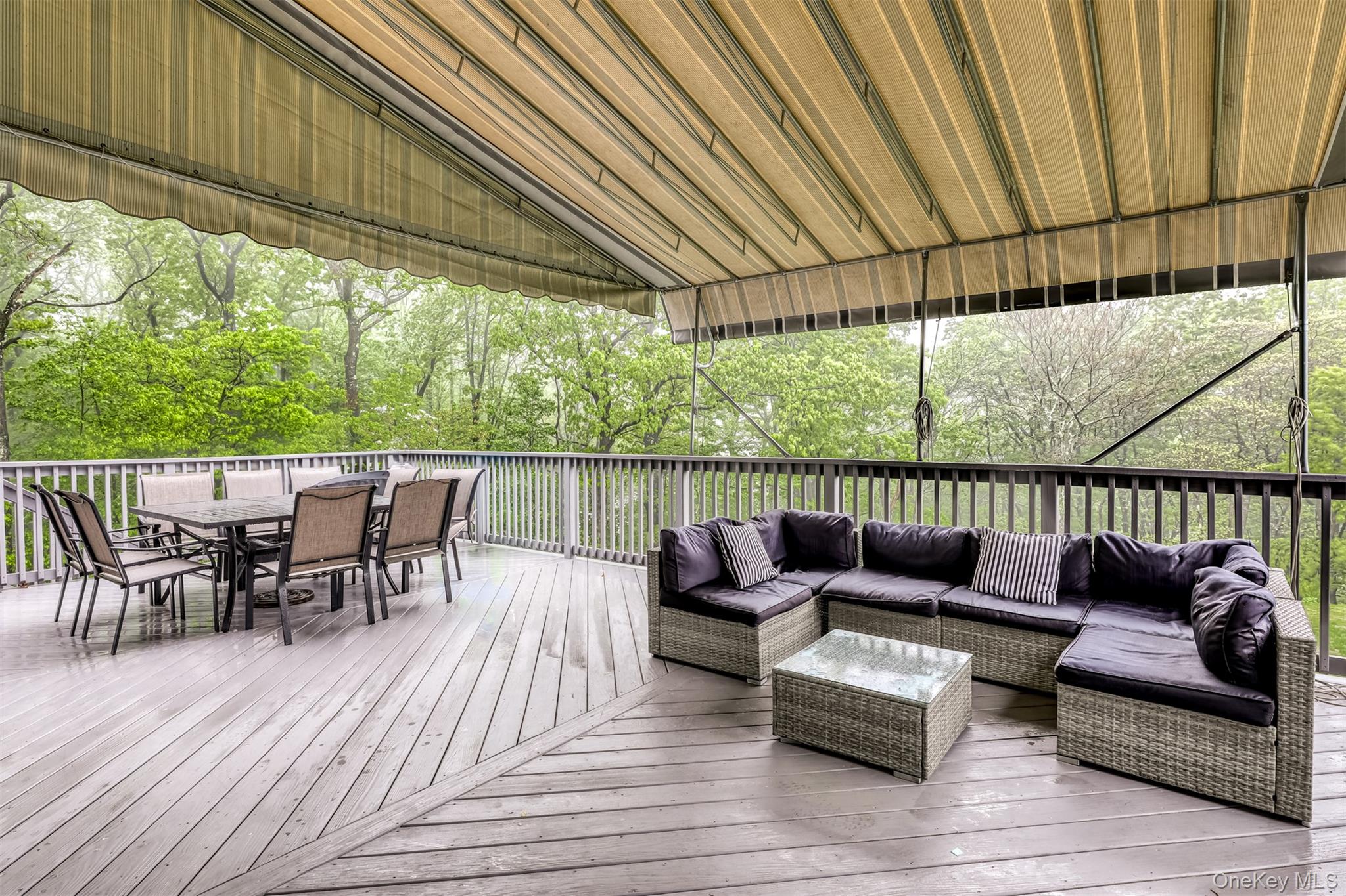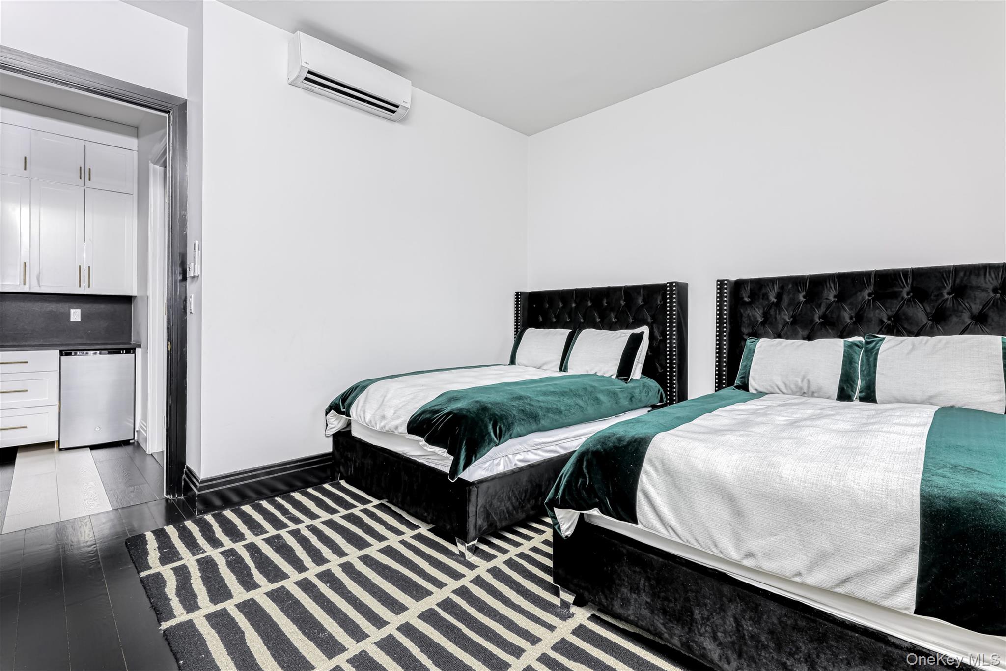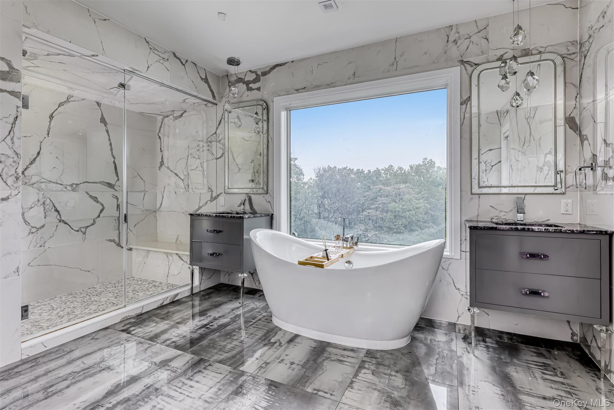 Exceptional Newly Constructed Custom Colonial Estate in Prime Pomona. Privately positioned on a serene cul-de-sac and set on nearly two acres of lush, tree-lined grounds, this remarkable residence offers breathtaking panoramic views of the Ramapo Mountains and an extraordinary sense of privacy. Designed by renowned professionals, the home is a bold expression of modern elegance, featuring a refined black, white, and gold palette and impeccable craftsmanship throughout. A dramatic entry through arched solid iron double doors opens to a grand marble foyer with soaring 10-foot ceilings, intricate wall detailing, and a sweeping curved staircase accented by custom glass and gold railings beneath a striking designer chandelier. The formal living room is both inviting and sophisticated, highlighted by custom floor-to-ceiling upholstered wall seating, a sleek electric fireplace, recessed lighting, and black-framed French doors leading to a Juliet balcony. The formal dining room mirrors this elegance, offering French doors, a Juliet balcony, and a tray ceiling with color-changing ambient lighting—ideal for elevated entertaining. A fully appointed butler’s pantry with custom cabinetry, wine cooler, and sink ensures seamless hosting. The sunken family room is a true showpiece, anchored by a stunning black-and-glass fireplace beneath coffered ceilings and surrounded by floor-to-ceiling windows that frame sweeping mountain and backyard views. Rich custom black wood flooring flows throughout the main level, complemented by Pella windows and custom square hi-hats that flood the home with natural light. The chef’s kitchen is designed for both function and style, featuring an expansive center island with breakfast seating and abundant storage, quartzite Panta countertops, white tile backsplash, three gold-accented sinks, and premium stainless-steel appliances. Highlights include a 6-burner Wolf range with an additional 2-burner cooktop, two GE ovens, oversized refrigerator, pot filler, custom hood, concealed walk-in pantry, two additional pantries, and dramatic black cabinetry with gold accents. The adjoining dinette opens through sliding glass doors to a deck with a large awning overlooking the impressive grounds. A side-entry mudroom with custom walk-in storage leads to a private guest suite complete with kitchenette, mini refrigerator, and full luxury bath. The main level also offers a home office and a sophisticated full bathroom. The upper level features six generously sized bedrooms with 9-foot ceilings, custom closets, and bespoke window treatments. The primary suite serves as a private retreat, showcasing tray ceilings, custom walk-in closets, and a spa-inspired bath with soaking tub overlooking the mountains, oversized steam shower with bench, dual vanities, and elegant crystal and gold finishes. A junior suite includes a private bath and walk-in closet, while two additional full baths service the remaining bedrooms, with potential for an additional bath. A conveniently located laundry room includes built-in shelving and a laundry chute to a secondary washer and dryer on the lower level. The walk-out lower level is partially finished with high ceilings and offers a recreation room with ample storage, a large additional bedroom, full bath, kitchenette, second washer and dryer, unfinished space for customization, and a private side entrance. Additional features include radiant heating with a 10-zone system, four-zone central air conditioning, central vacuum, integrated surround sound on the main level, security system, irrigation system, water softener, spray-foam insulation throughout, and a two-car garage. A truly rare offering of refined luxury, scale, and setting in one of Pomona’s most desirable locations.