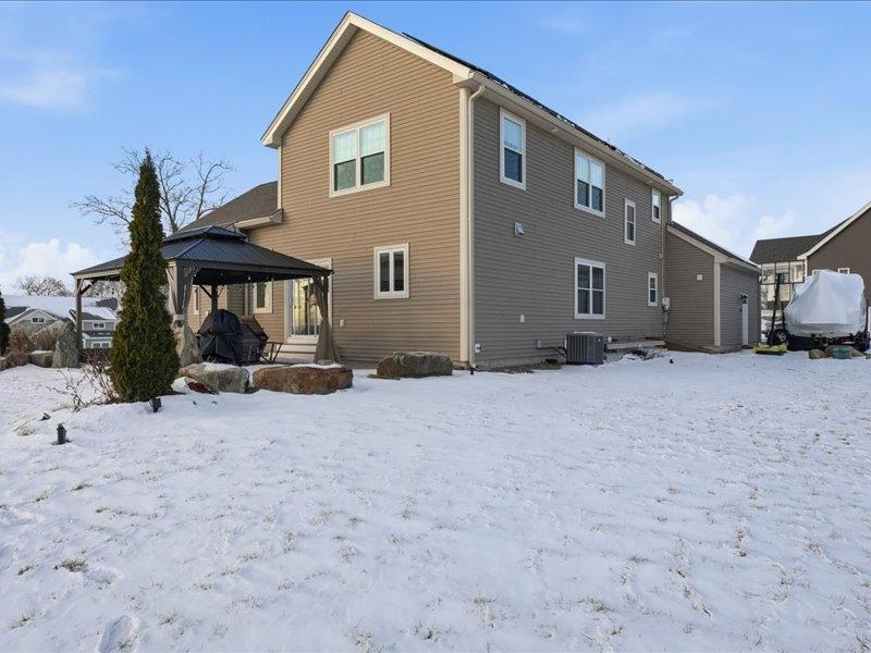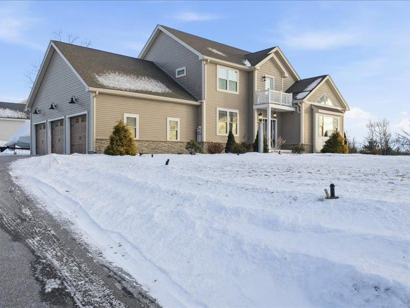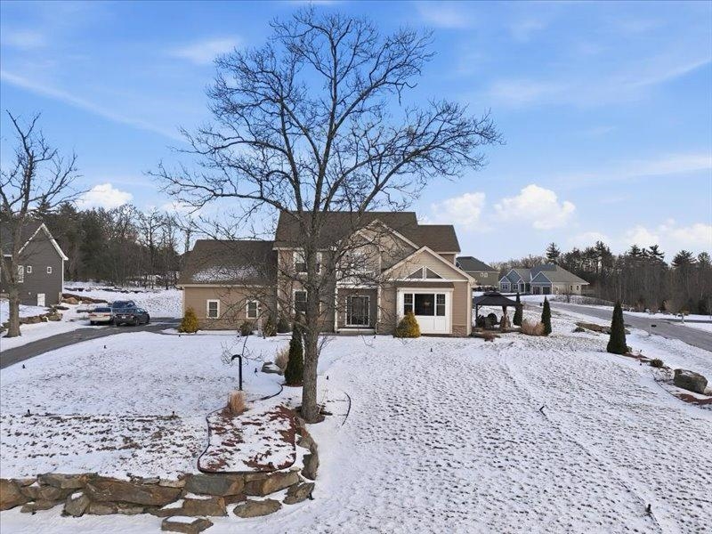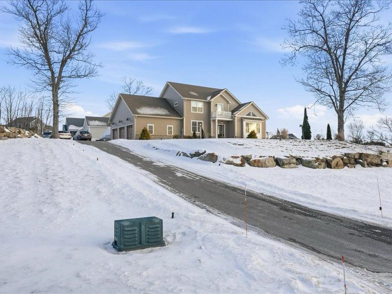 Welcome to your dream home in the highly sought-after skyview estates neighborhood. This spectacular Colonial-style home is thoughtfully designed to capture breathtaking views. The open-concept kitchen and dining area feature beautiful cabinetry, granite countertops, and a full set of stainless-steel appliances. The first floor offers hardwood flooring throughout, 9-foot ceilings, a cozy fireplace, a cathedral ceiling in the living room bringing a spacious office accented with french doors. Ample closet space and a separate tiled laundry room add everyday convenience. Half bathroom located on the first level. The second floor boasts a generous primary suite with a private sitting area and balcony perfect for enjoying stunning sunset views. The en-suite bath includes a tiled shower, soaking tub, and a large double vanity. Two additional bedrooms and a full bathroom. Skyview Estates, a beautiful hilltop community just five minutes from Route 3. This home combines elegance, comfort, and an ideal location.