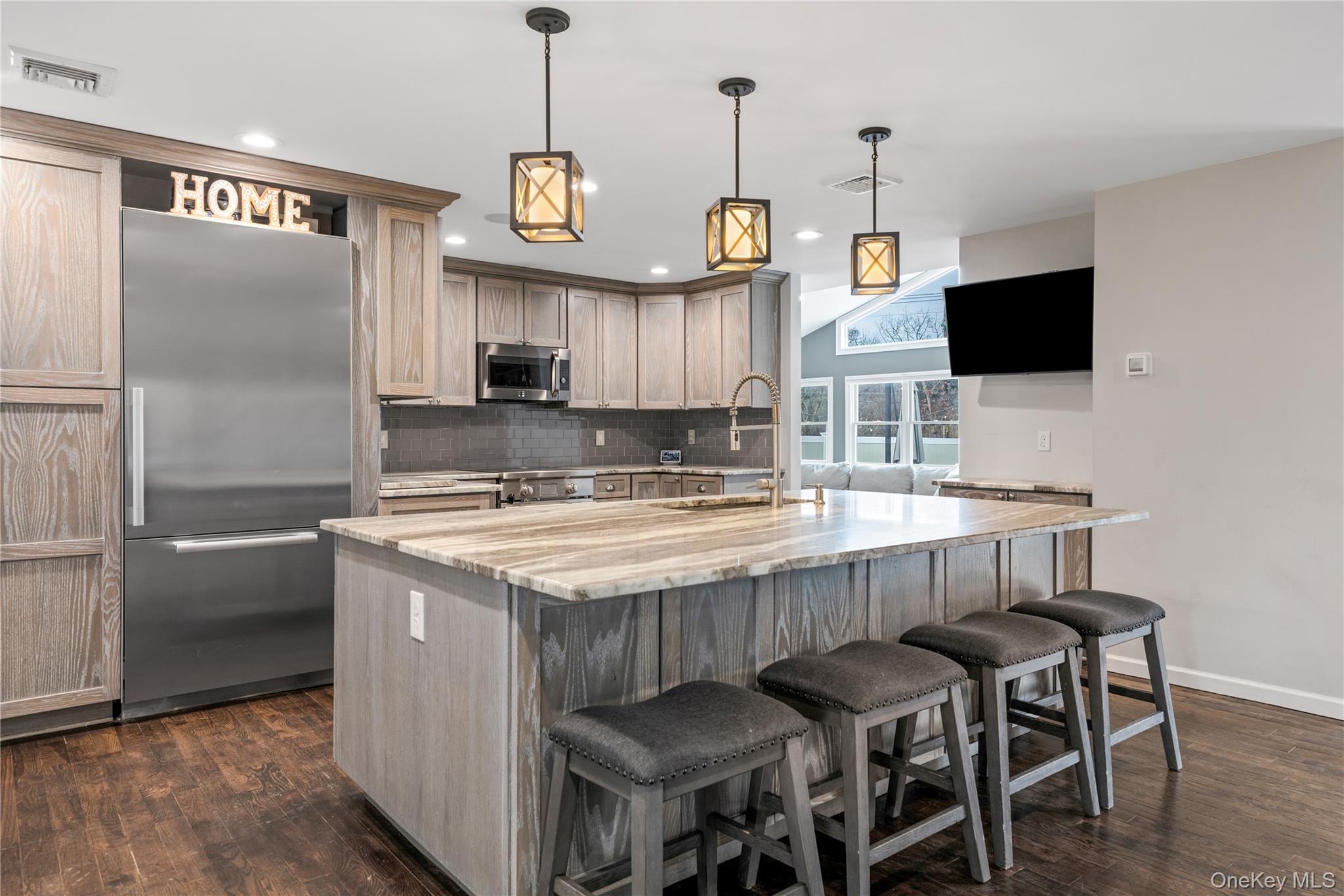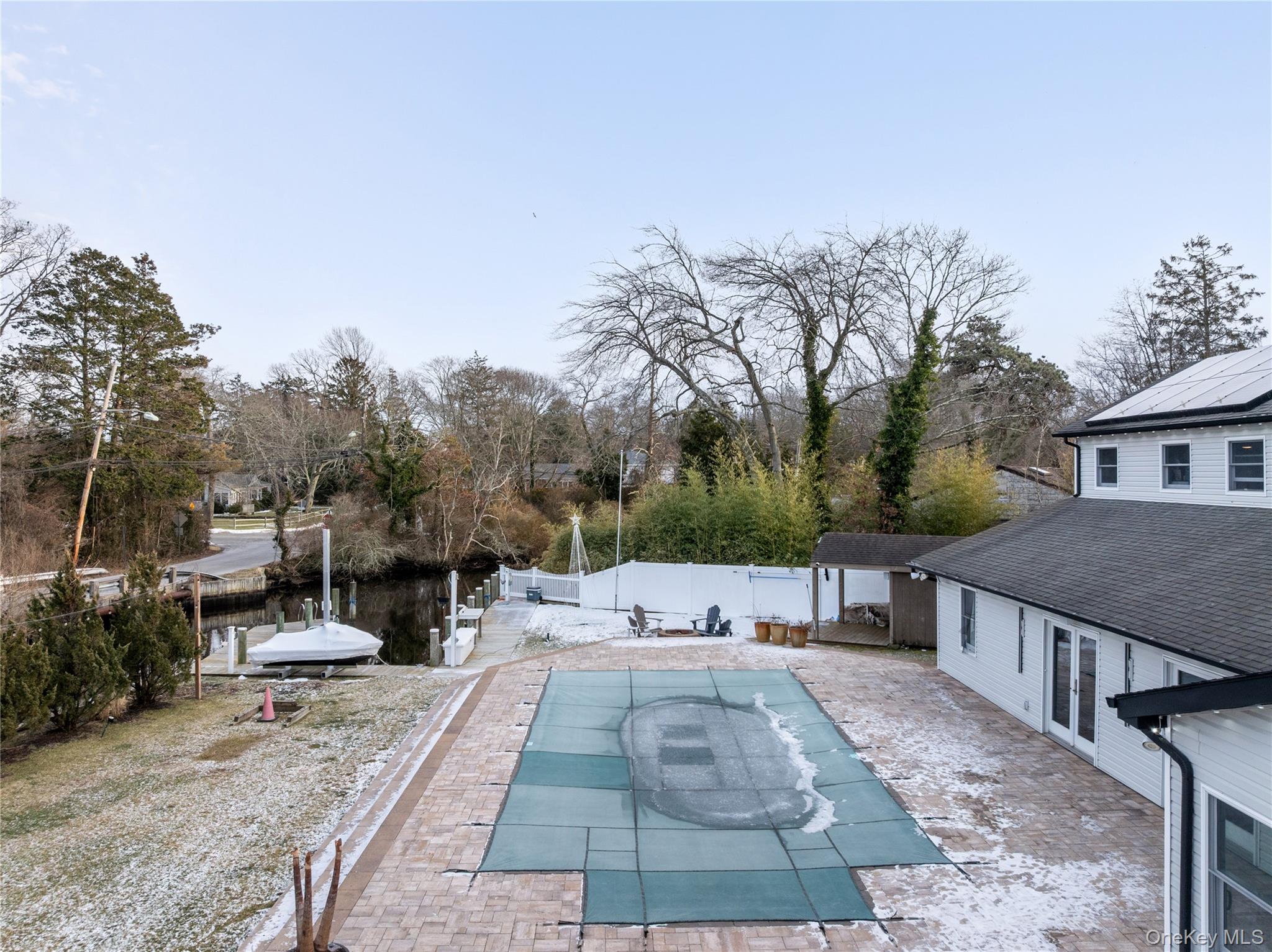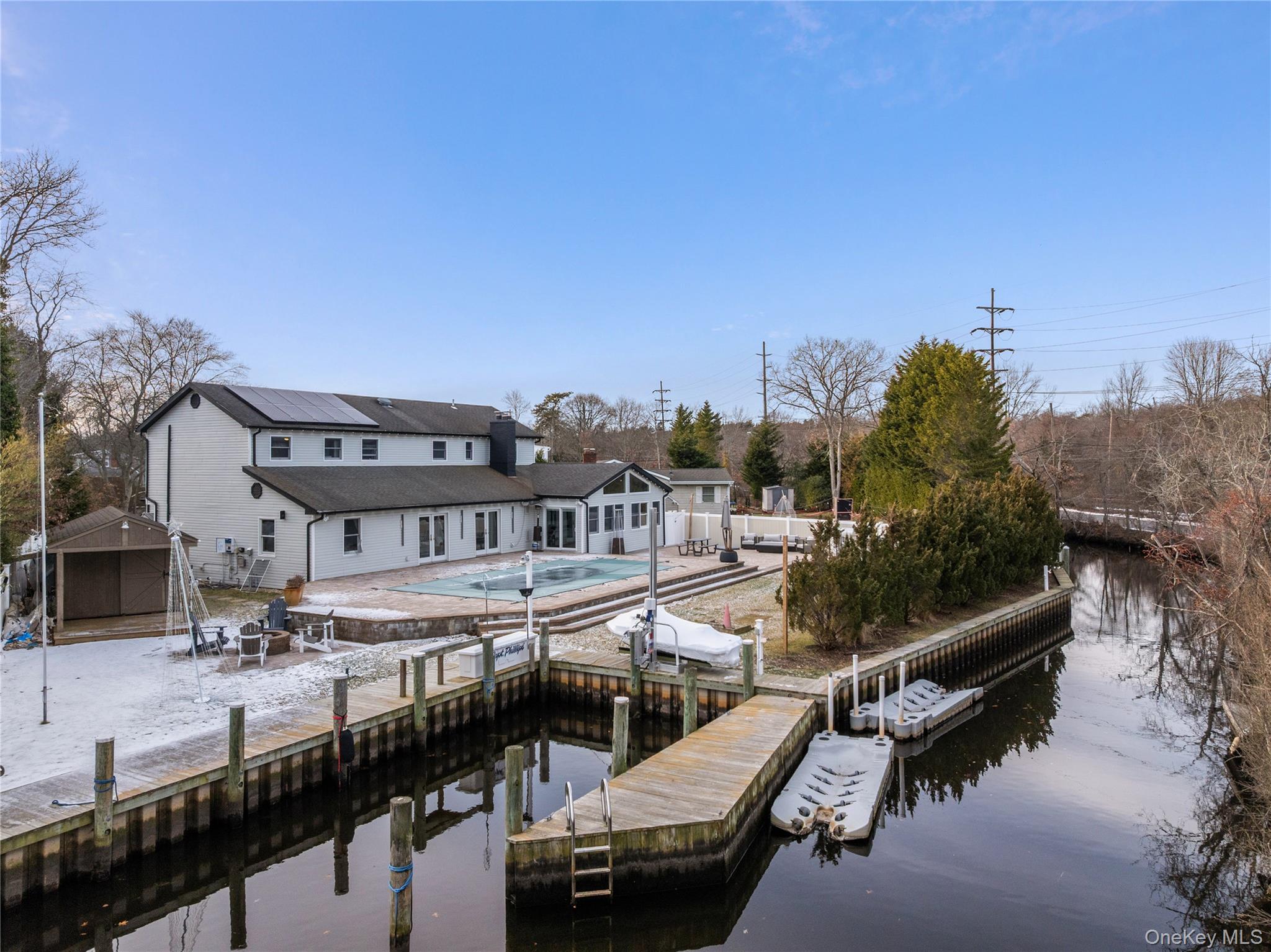 Located in Desirable Idle Hour Section of Oakdale , This Sunning 3700 sq ft Open Concept Waterfront Colonial Blends Elegant Design w/ Resort -Style Living. The First Level Is Designed For Both Everyday Living and Entertaining, Showcasing a Chefs Kitchen w/ Miele & Wolf Appliances, Granite Countertops & Stainless Finishes. Additional Highlights Include a Formal Dining Room, an Expansive Living Room w/ Soaring Ceilings, and a Stylish Bar Area w/ Miele Wine Refrigerator, Additional Miele fridge & Ice Maker. The Second Level Features Two Primary Bedrooms and a Versatile Loft, Ideal for a Home Office or Den. Enjoy Peace of Mind w/ New Central Air & Heating. Step Outside To Your Private Waterfront Oasis Featuring an In -Ground Pool, Cambridge Pave Patio , Two Jet Ski Lifts, and 140' Ft of Navy Bulkheading w/ Water & Electric. Shed is a gift, Solar Panels Are Owned. This Home Is Perfect For Embracing The Ultimate South Shore Lifestyle.