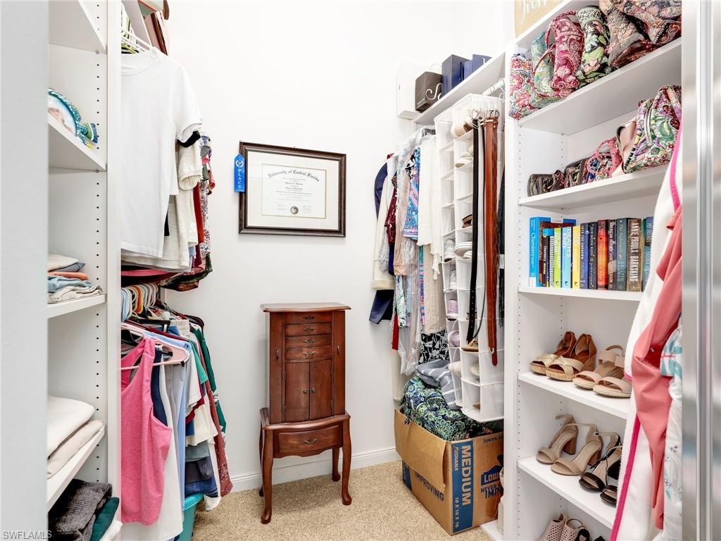 With 4 bedrooms, each offering ample closet space with built-in shelving, and 4 full bathrooms, this home delivers outstanding comfort and convenience for family and guests alike. The primary suite is a true private retreat, offering direct access to the pool deck and a thoughtfully designed his-and-hers bathroom that blends luxury with everyday functionality. Separate vanities provide dedicated spaces for him and her, complemented by a built-in makeup vanity. The bathroom features a deep soaking tub, a separate walk-in shower, and two private water closets, offering enhanced privacy, time-saving convenience. The home showcases ceramic tile flooring throughout the main living areas and plush carpeting in the bedrooms. The well-appointed kitchen boasts granite countertops, newer stainless-steel appliances with a double oven, and plantation shutters. Additional highlights include a beautifully finished epoxy two-car garage and an electric roll-down hurricane screen on the lanai. Step outside to your sun-drenched, screened-in outdoor oasis. The covered lanai and large enclosure surround a sparkling heated pool, freshly refinished in 2026, creating the perfect setting for entertaining or relaxing under the Florida sun. Nestled on a quiet, tree-lined street and just a short walk to the vibrant Towne Center, this home offers an unmatched lifestyle. VillageWalk residents enjoy 24-hour security and an impressive array of amenities, including a grand ballroom, card and game rooms, library, catering kitchen, fitness center, group exercise classes, resort-style pools, tennis, pickleball, basketball, and bocce courts. Unique on-site conveniences include a restaurant and bar with indoor and outdoor seating (no minimums), deli and bagel shop, ice cream parlor, gas station, car wash, salon, spa, ATM, and post office. Explore 22 miles of scenic walking and biking trails, cross 37 charming bridges, and unwind among lush butterfly gardens. Ideally located near RSW Airport, top medical facilities, schools, places of worship, pristine beaches, parks, premier shopping, and acclaimed dining, this exceptional home truly captures the essence of Bonita Springs living—where every day feels like a vacation.