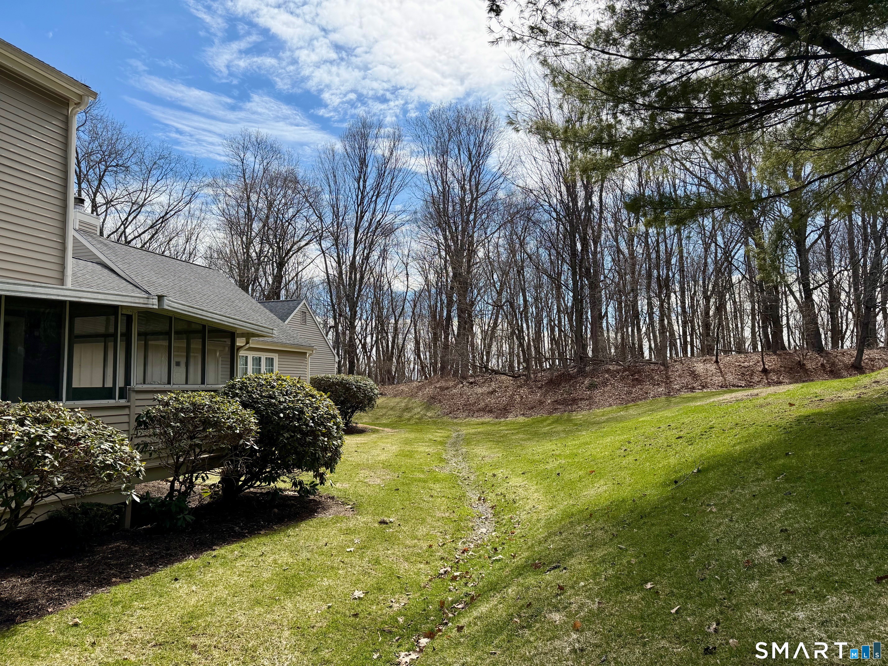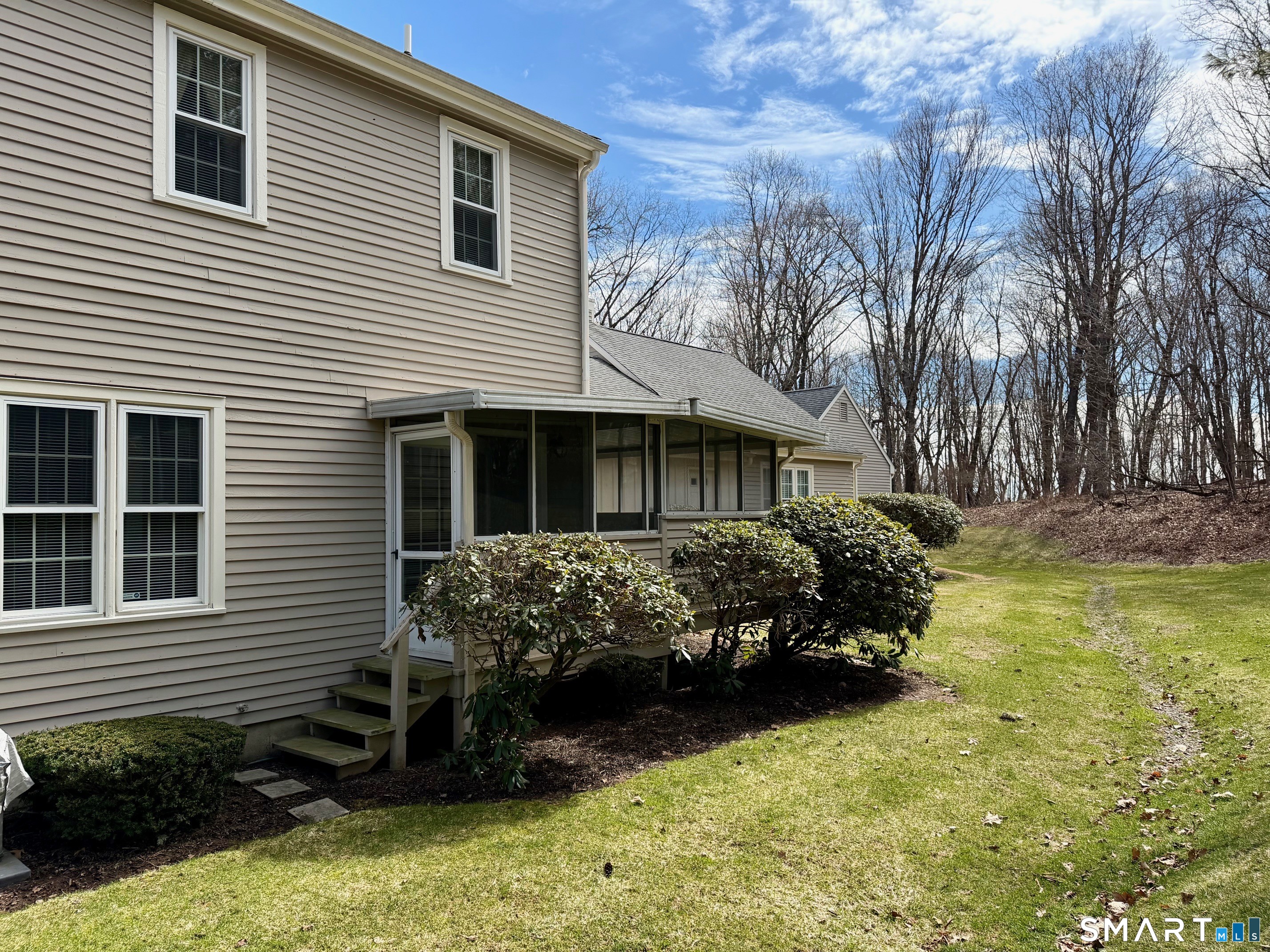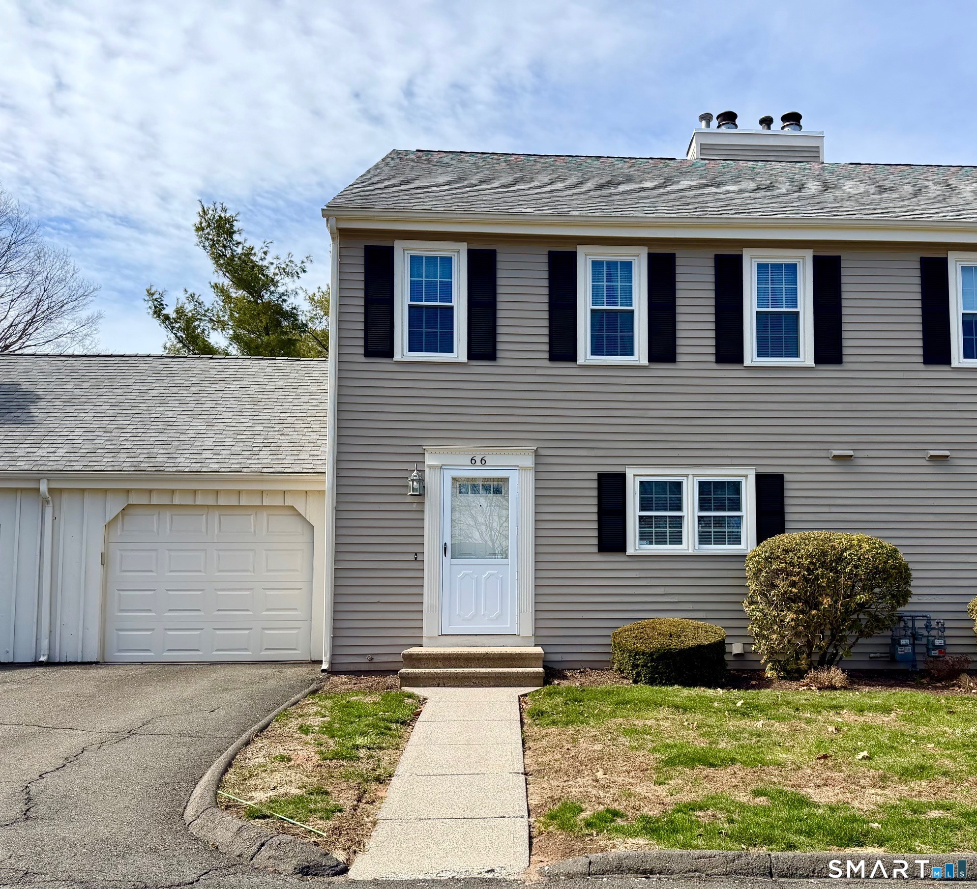 Welcome to Old Towne Condos, a highly desirable center-of-town community offering convenience & walkability. This spacious 1, 536 sq. ft. , 2-bedroom, 2-1/2 bath Townhouse unit features a welcoming eat-in kitchen at the front of the home, a formal dining room, and a sunken living room complete with a wood-burning fireplace and French doors leading to a covered sun porch. The porch overlooks a very private backyard area with beautiful, peaceful views-perfect for relaxing or entertaining. Upstairs you'll find two generously sized bedrooms, each with its own en suite bath. The large primary suite offers double closets and a spacious primary bath with a separate sink/dressing area. Additional highlights include a convenient half bath on the main level, an attached one-car garage, and a full unfinished basement providing excellent storage space. Old Towne Condos also features an in-ground pool and is ideally located in the heart of town, close to shopping, dining, and scenic walking areas. A wonderful opportunity to enjoy low-maintenance living in one of Cheshire's most sought-after communities! Newer Furnace/Central Air