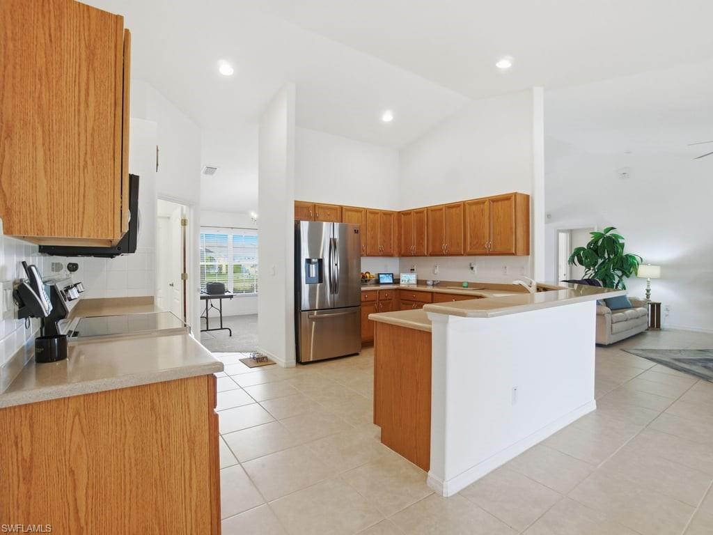 Welcome to this impeccably maintained and move-in-ready residence located in the highly desirable Southwest Cape Coral area. Offering 3 generously sized bedrooms, 2 bathrooms, a den, and a formal dining room, this home provides an ideal blend of space, comfort, and functionality across 2, 242 square feet of thoughtfully designed living space. From the moment you enter, you’ll notice the pride of ownership, fresh interior paint, and a clean, inviting atmosphere that makes this home truly stand out. The open and versatile floor plan features tile flooring throughout the main living areas and plush carpeting in the bedrooms, den and dining room, creating both durability and comfort. The spacious kitchen is well-equipped with stainless steel appliances, ample cabinets, and a charming breakfast nook that overlooks the outdoor living space, perfect for casual meals or morning coffee. Large bedrooms offer plenty of room to relax, while the den provides flexibility as a home office, media room, or additional guest space. The primary suite is a true retreat, featuring French doors that open directly to the pool and lanai, and a well-designed layout that enhances privacy and convenience. The guest bathroom doubles as a pool bath, making indoor-outdoor entertaining effortless. Step outside to your private backyard oasis, where a sparkling screened-in pool, expansive covered lanai, and pool cage create the perfect setting for entertaining or unwinding year-round. A 5-person hot tub adds a touch of luxury, while the fully fenced yard, beautiful landscaping, and storage shed offer both privacy and practicality. Additional highlights include a 2-car garage, transferable flood insurance policy, and a prime location between Veterans Parkway and Cape Coral Parkway. Enjoy quick access to restaurants, shopping, downtown Cape Coral, and an easy commute to Fort Myers and surrounding areas. This home checks every box, space, location, condition, and lifestyle, making it an exceptional opportunity in one of Cape Coral’s most sought-after neighborhoods.