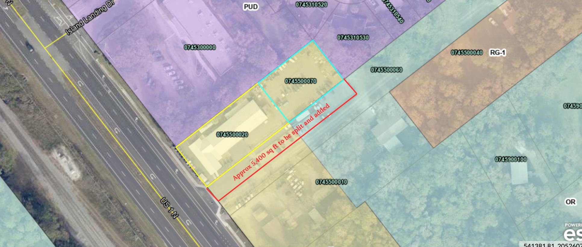 Motivated seller! This high-visibility commercial redevelopment opportunity is located directly on US-1 with approximately +/-100 feet of high-visibility frontage, offering exceptional exposure in a prime growth corridor between St. Augustine and Jacksonville. Comprising two contiguous parcels with additional land being added through a planned split, the total site will encompass approximately 0. 72 acres, making the highest and best use redevelopment. The primary parcel, 0745500020, consists of a substantial commercial structure built in 1980 with a total of 6, 356 square feet. The front portion includes 1, 200 square feet of finished, air-conditioned office space, while the rear features a 5, 156 square foot warehouse with a three-bay loading dock, supporting a variety of commercial or mixed-use concepts. The property is currently operated as a golf cart business, with the seller occupying the property, and they are open to remaining to provide interim income up until redevelopment or can vacate at closing depending on the buyer's preference. Parcel 0745500070 is contiguous and currently functions as a rear parking area, enhancing access and operational flexibility. In addition, an approximate 5, 400 square foot section will be split from adjacent parcel 0745500060 and added to the assemblage, increasing both land area and frontage. The resulting site will be largely C-1 zoned, with a portion designated OR, allowing for a broad range of commercial and mixed-use development options. The property is entirely high and dry and located in Flood Zone X, further strengthening its development appeal. Surrounded by established commercial and residential uses and positioned along a heavily traveled US-1 corridor, this site presents a rare opportunity for investors or developers seeking scale, visibility, and zoning flexibility. Adjacent commercial and residential parcels are also available and may be purchased separately or in combination with this offering. Please reference MLS number #260129 for the adjacent available parcels, and MLS number #245926 for the full assemblage package.