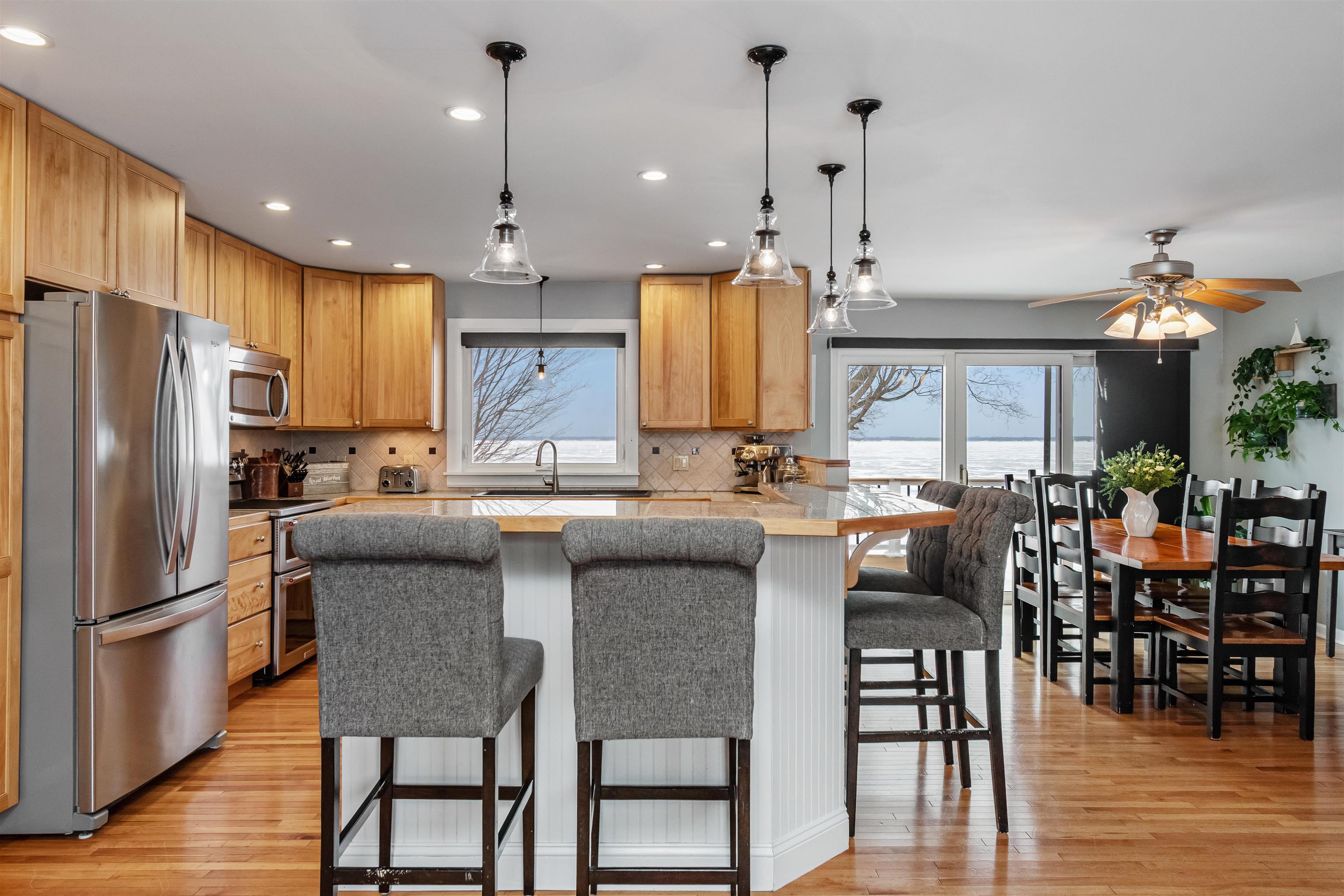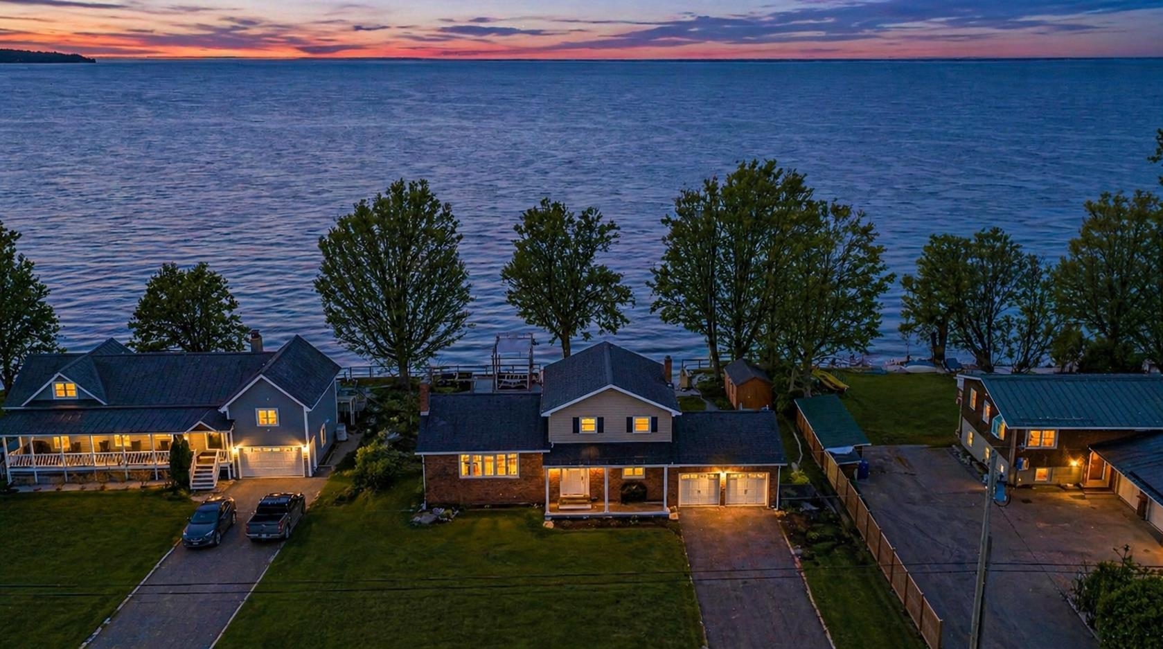 Set along 100 feet of owned Lake Champlain frontage in St. Albans, this year-round lakefront home offers an exceptional blend of comfort, thoughtful design, and four-season enjoyment—ideal as a full-time residence or four-season retreat. Walls of windows frame sweeping lake views and glowing sunsets, while the gentle sound of water lapping the shoreline creates a peaceful backdrop during the warmer months. The lakeside setting is enhanced by a multi-tiered, expansive deck—perfect for entertaining, relaxing, and taking in the ever-changing scenery—as well as a private ramp for easy dock installation and removal. Extensive improvements and additions have been completed, including a beautifully updated primary ensuite bath, first-floor bath and laundry room, and a spacious mudroom conversion—an essential feature for Vermont living. Additional upgrades include a standing seam roof, sea wall and privacy fencing, paved driveway, and thoughtfully designed hardscaping, along with updated mechanical and electrical systems that support efficient, comfortable living in every season. Inside, the main level offers an open-concept kitchen, dining area with sliding doors to the deck, and a welcoming living space filled with natural light, plus an additional private room that can be tailored to your needs—home office, guest space, or den. The lower level provides a generous family room, game room, or recreation space with direct access to the lakeside, along with two additional flexible rooms. The upper level features the primary ensuite bedroom and an additional bedroom, creating a private retreat above it all. Enjoy Lake Champlain year-round, from summer boating and lakeside gatherings to winter skating and ice fishing, all while remaining conveniently close to local amenities. This exceptional property offers the space, updates, and setting to be enjoyed in every season. *Generated AI Summer Photos (GenAI-SV)