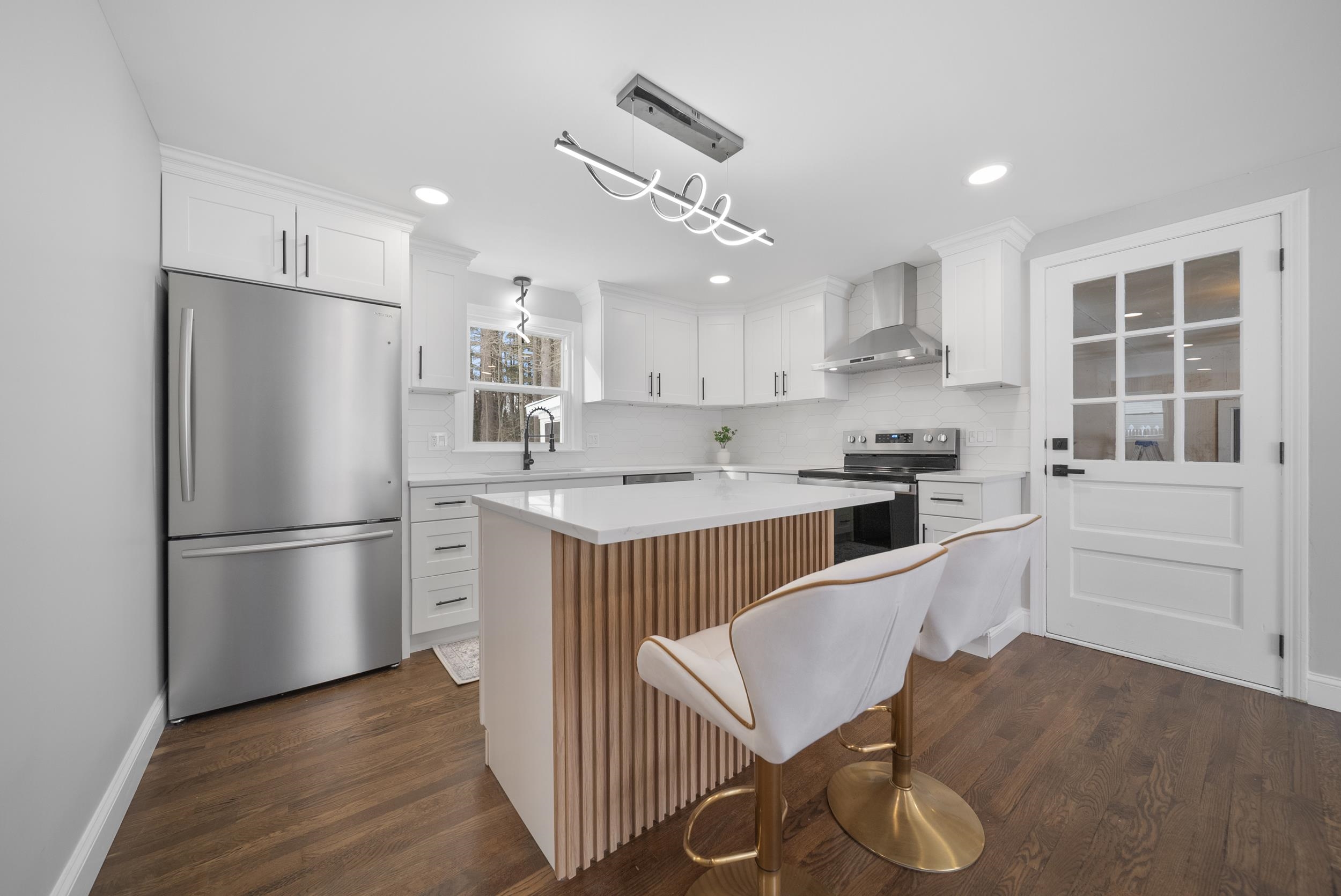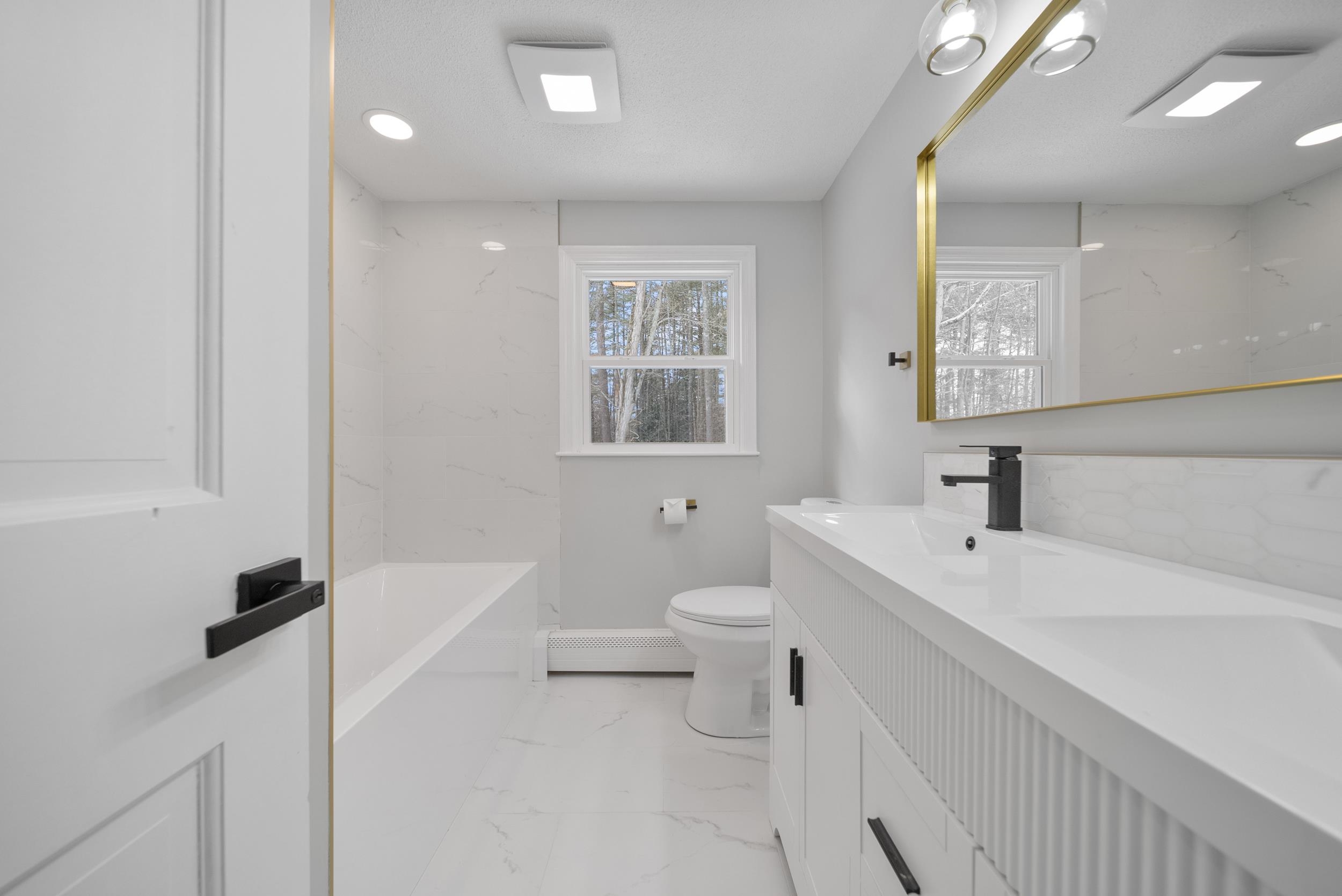 Discover your dream home at 9 Edgewood, Merrimack! This beautifully colonial house is nestled in a serene and quiet neighborhood. With four spacious bedrooms and two modern bathrooms, there’s plenty of room for everyone. Step inside to find a stunning, chef-inspired kitchen featuring shaker soft-close cabinets, exquisite quartz countertops, and brand new stainless steel appliances. The open-concept layout seamlessly connects the kitchen to a bright dining area and a cozy living room, complete with a charming wood-burning fireplace and a modern accent wall. Both bathrooms showcases contemporary fixtures and finishes. The finished basement adds valuable living space, perfect for entertaining or a home office. Outside, enjoy a flat, private yard and a screened covered porch, ideal for summer gatherings or peaceful evenings. The home boasts gorgeous refinished hardwood floors throughout, enhancing its elegant feel. Great Location near shopping, highway, restaurants, parks, and schools. With an oversized two-car garage and spacious rooms, this home combines modern luxury with comfort. Featuring natural gas, public water and public sewer for a worry free living. Don’t miss the opportunity to make this your own!