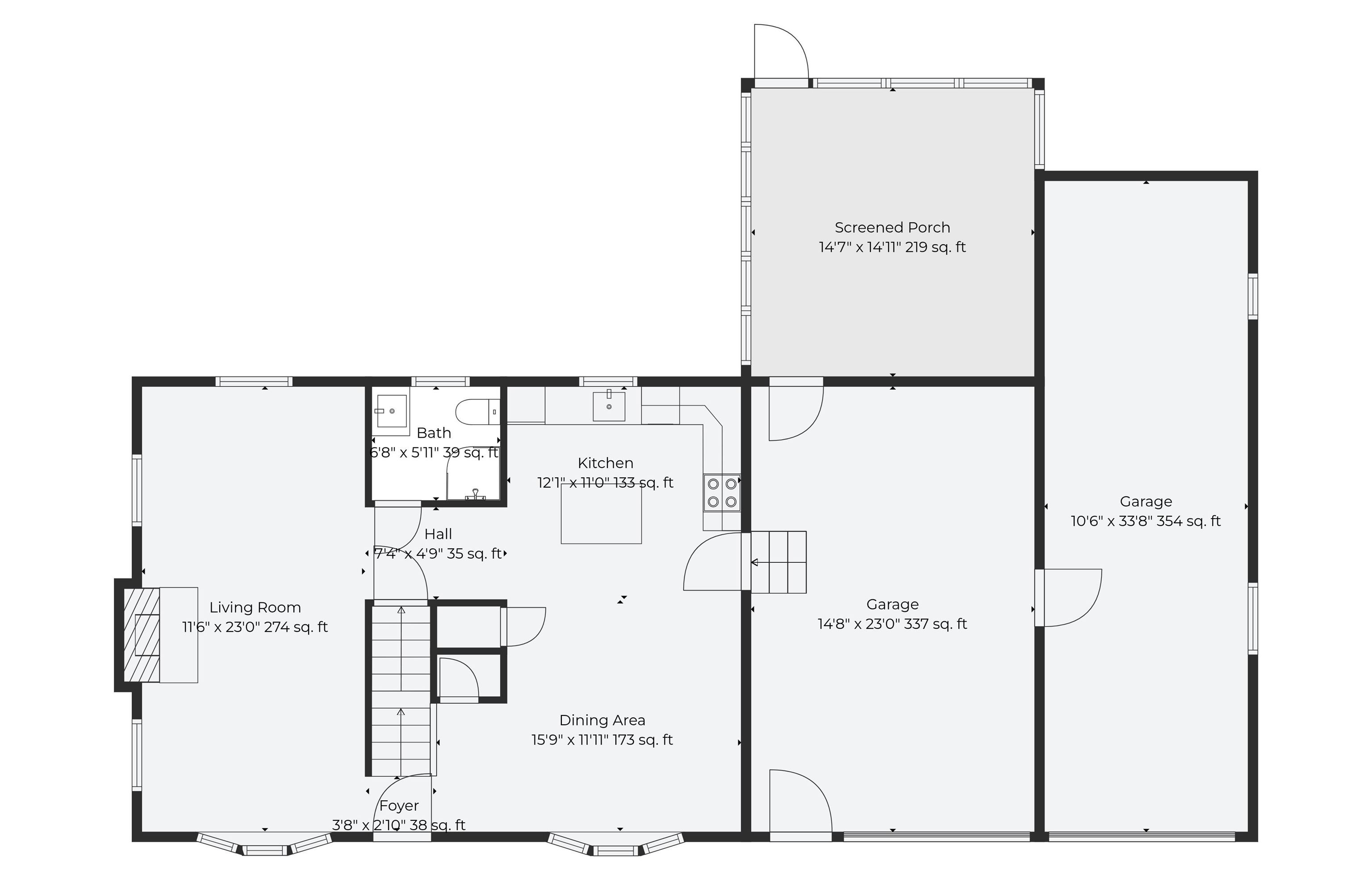 | Living Room | 23.0 x 11.5 | First |