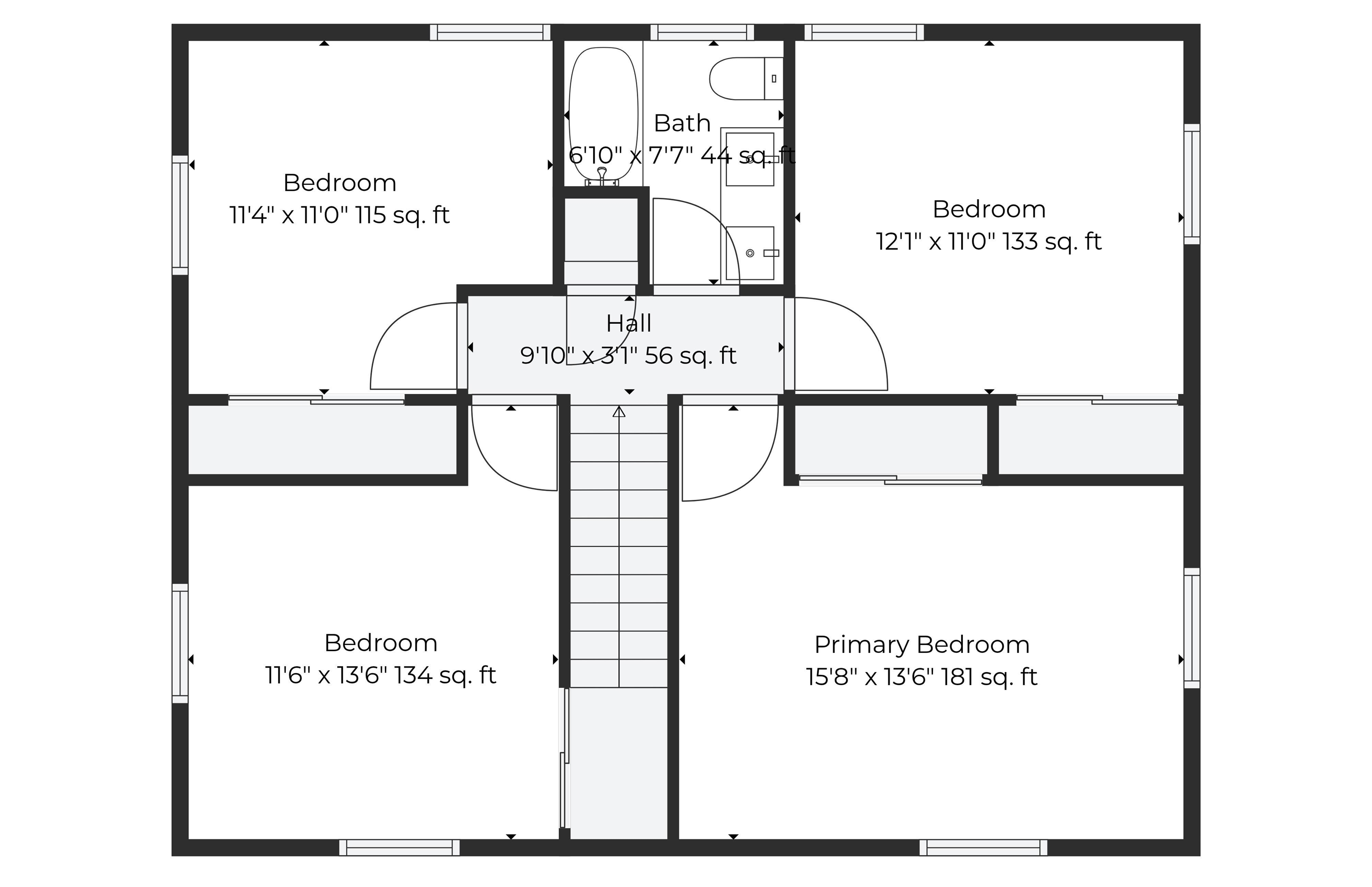 | Bedroom 2 | 11.0 x 12.1 | Second |