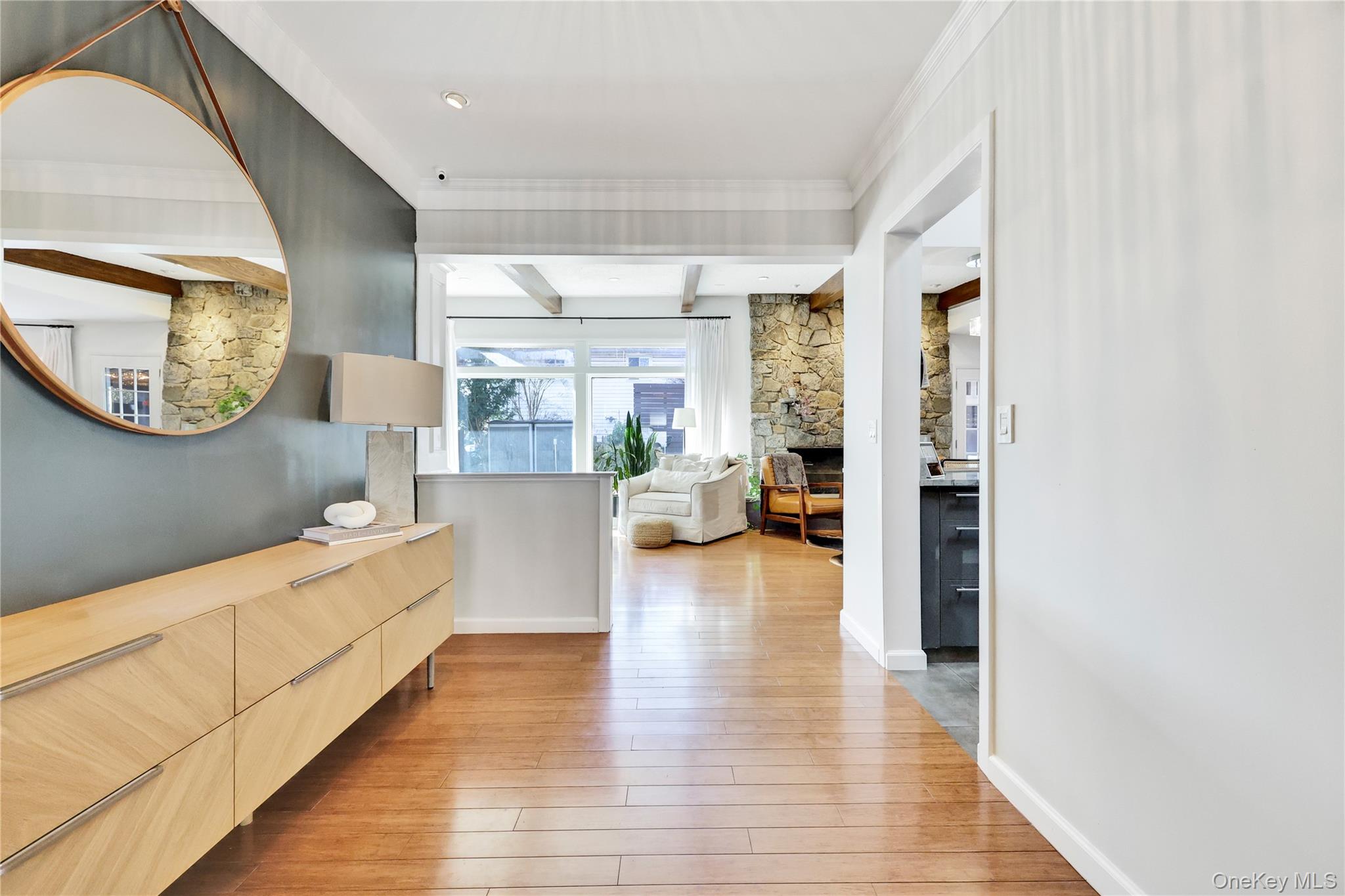 Welcome to this exquisitely maintained and thoughtfully designed 3 bedroom, 2. 5 bath ranch gracefully set in the heart of Hewlett, offering both privacy and exceptional convenience. Designed for effortless living and entertaining, this home features gleaming hardwood floors throughout, sun-filled interiors enhanced by skylights, and an inviting indoor wood burning fireplace. The move-in ready, state-of-the-art kitchen is thoughtfully appointed with stainless steel appliances, double sinks and double ovens- effortlessly accommodating both refined entertaining and everyday living. The serene primary suite is ideally situated on the main level with a tastefully finished en-suite. and a seamless sense of retreat. Exceptional storage throughout complimented by a beautifully finished basement. Outdoors, the beautifully curated backyard becomes an extension of the home, featuring a wood burning fireplace and built-in gas grill, perfect for year round enjoyment. Perfectly positioned near transportation, shopping, dining and houses of worship, this setting enhances the home's sense of elegance, comfort and accessibility.