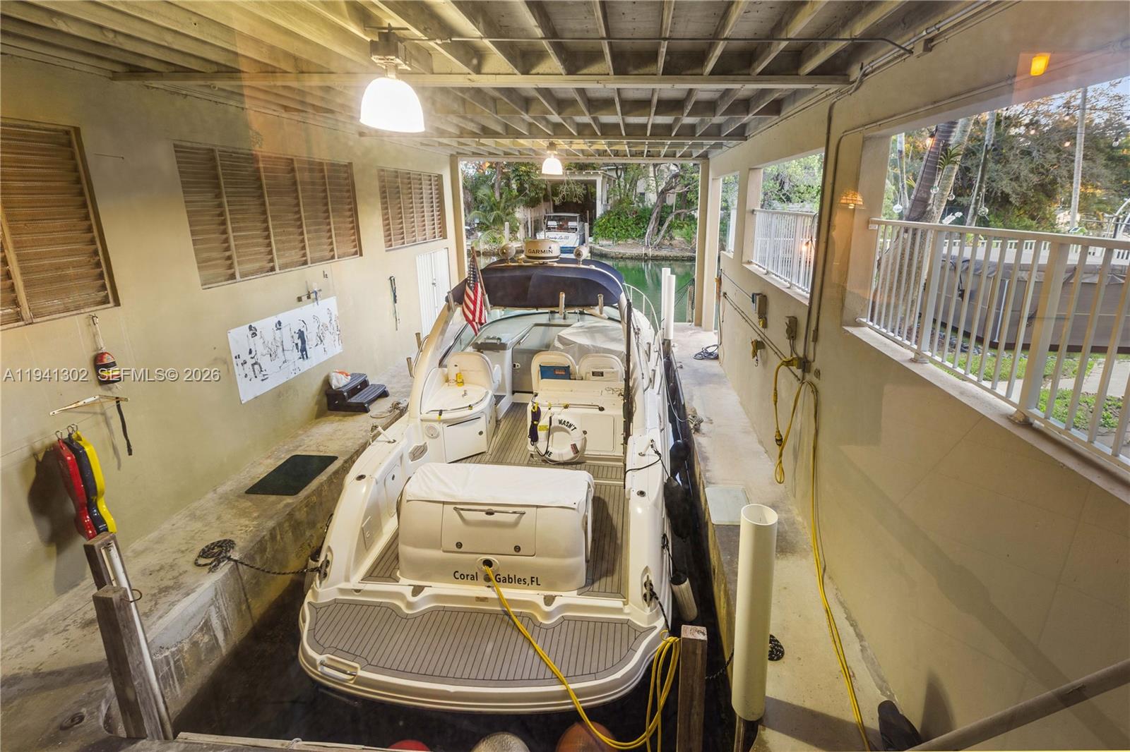 Exceptional 6BD/4. 5BA and 2 car garage waterfront residence on the Coral Gables Waterway boasting 132. 5’ of water-frontage, a large concrete dock, and a coveted 40’ covered boathouse with a 18, 153 lot —a true boater’s dream. Enjoy sweeping canal views from nearly every bedroom, with unparalleled down-the-waterway vistas from the primary suite and upstairs balcony. The open-concept living areas capture the waterway from multiple angles, creating a seamless indoor-outdoor connection. A covered patio with wet bar overlooks the heated saltwater pool which has three water features. New appliances and impact windows and doors. An exceptional opportunity for the avid boater or waterfront enthusiast.