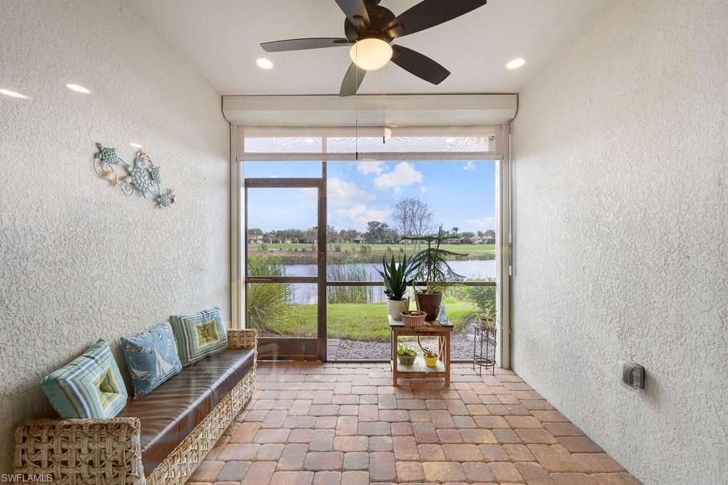 5698 MAYFLOWER WAY, Unit #403 - (RARELY AVAILABLE---> GUEST BATHROOM HAS A TUB/SHOWER Combo) FURNISHED TURNKEY! TASTEFULLY DECORATED HOME w/GOLF COURSE & WATER VIEWS!! - 1st Floor HERON Model Carriage Home; Move-In Ready! A GREAT VALUE! Water, Cable TV & High Speed Internet INCLUDED in Condo fees! Features 3 Bedrooms, 2 Full Bathrooms, Accordian Style Hurricane Shutters Providing Maximum Storm Protection. Screened Lanai w/Fabric Roll Down Protection, Tiled in Main Areas, Luxury Vinyl Tile in Bedrooms, Plantation Shutters, Breakfast Nook. Screened Entry w/added Glass Insert in Front Door. East Exposure Provides Premium Year Round Sunrises!! This 55+ Active LifeStyle Community Condominium Complex is Complemented With it's Own Beautiful Exclusive Private Community Pool, Hot Tub, Restrooms & Grills/Dining Area (Exclusive to Mayflower Way Condo Unit Owners). Walking Distance To South Park w/Nature Trails, Lakes and Dog Park. Public 18 Hole Championship Golf Course is Close By, Memberships available. The Del Webb Oasis Club Resort Style Amenity Center features 2 Clubhouses, Activity Director, Resort Style Pool, Lap Pool, Fitness Center, Sauna/Steam Room, Salon, Business Center/Library, Catering Kitchen, Community Patio w/Grill, TV, Fire Pit, Pickle Ball/Bocce/Tennis Courts. Well Managed Condo Association!