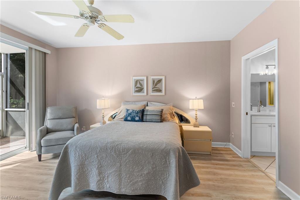 The fresh paint throughout various areas of the home lends a clean and inviting feel, while the flooring updates bring a touch of sophistication. The master bedroom now boasts stunning new engineered hardwood floors, adding warmth and character. It also features a large walk-in closet and a luxurious primary bath with updated dual vanity, and a stand up shower along with a separate soaking tub. The second bedroom has been elevated with chic new vinyl flooring. This end unit also boasts a large screened in front lanai and an even bigger screened in back lanai looking out to lush landscaping.