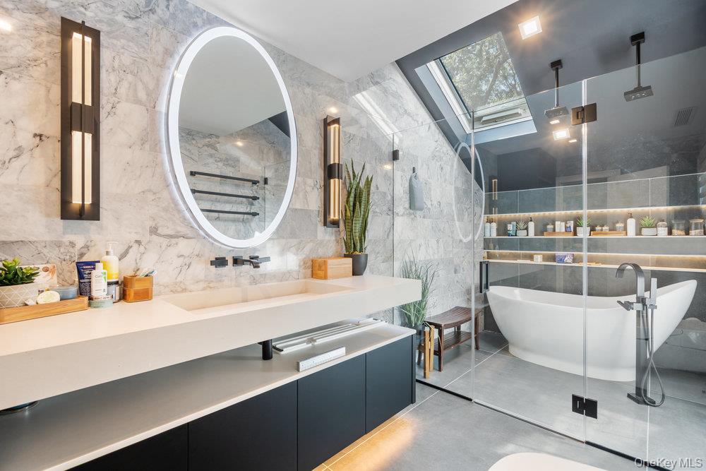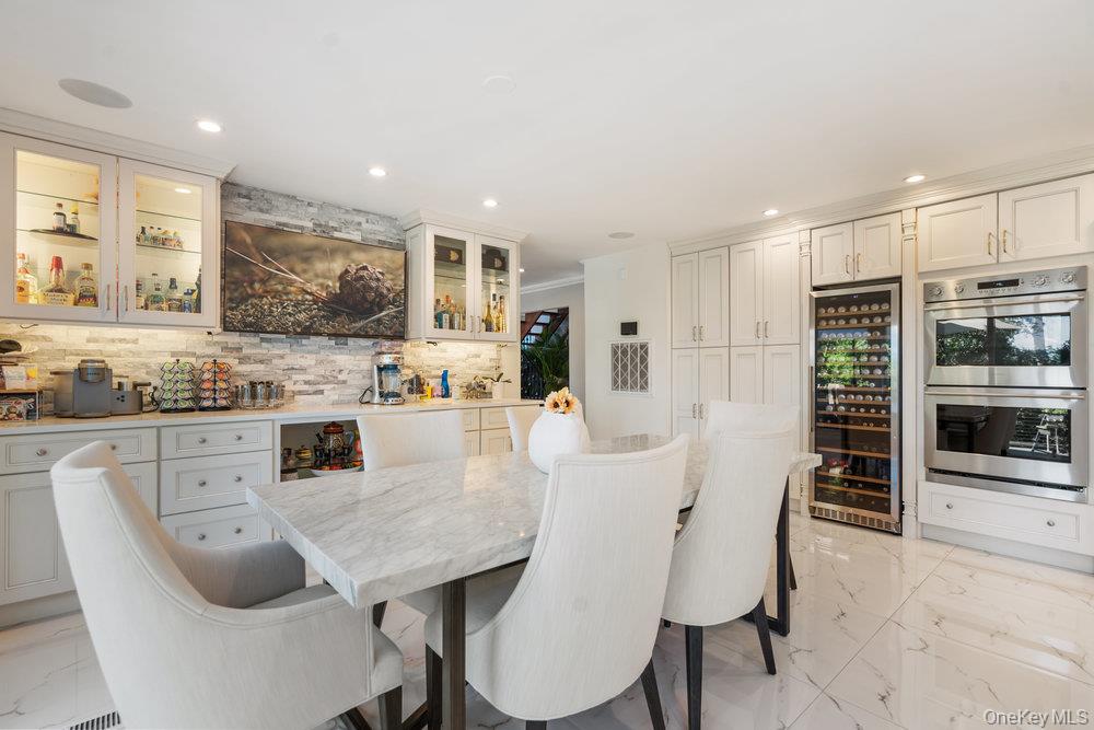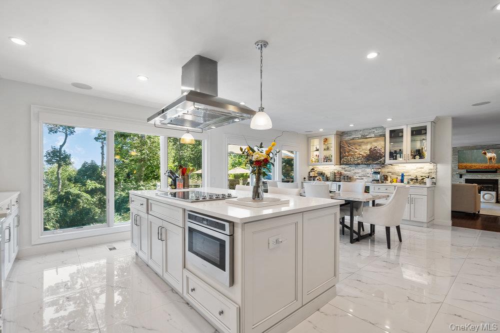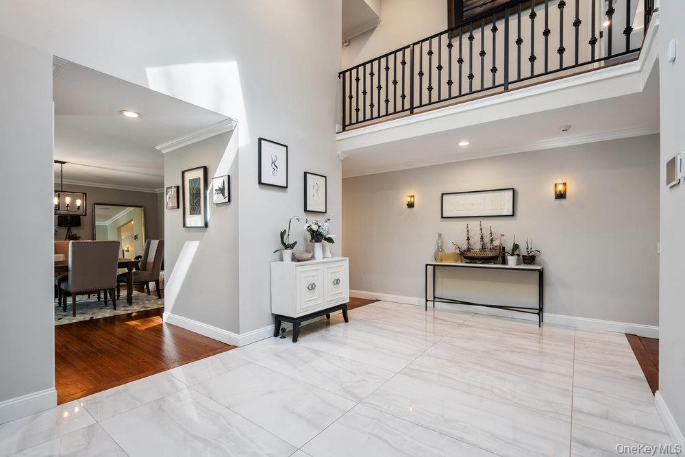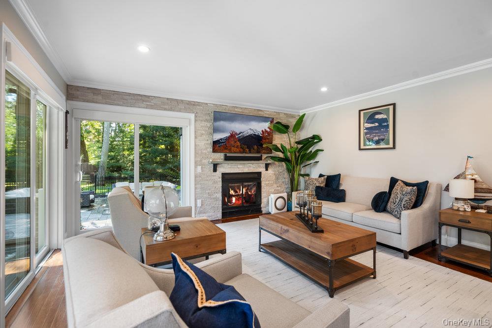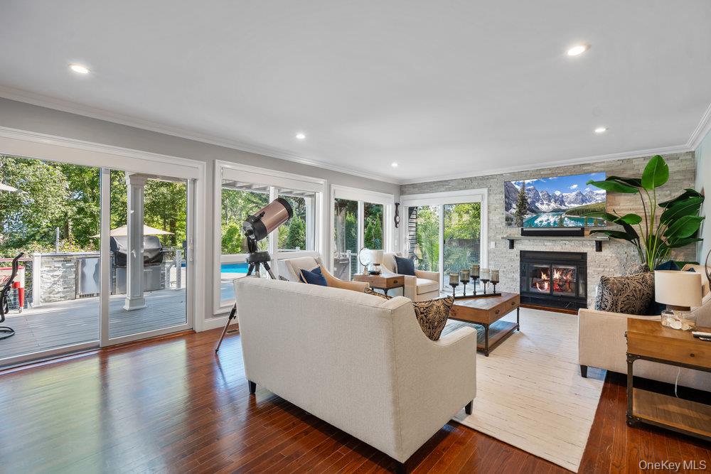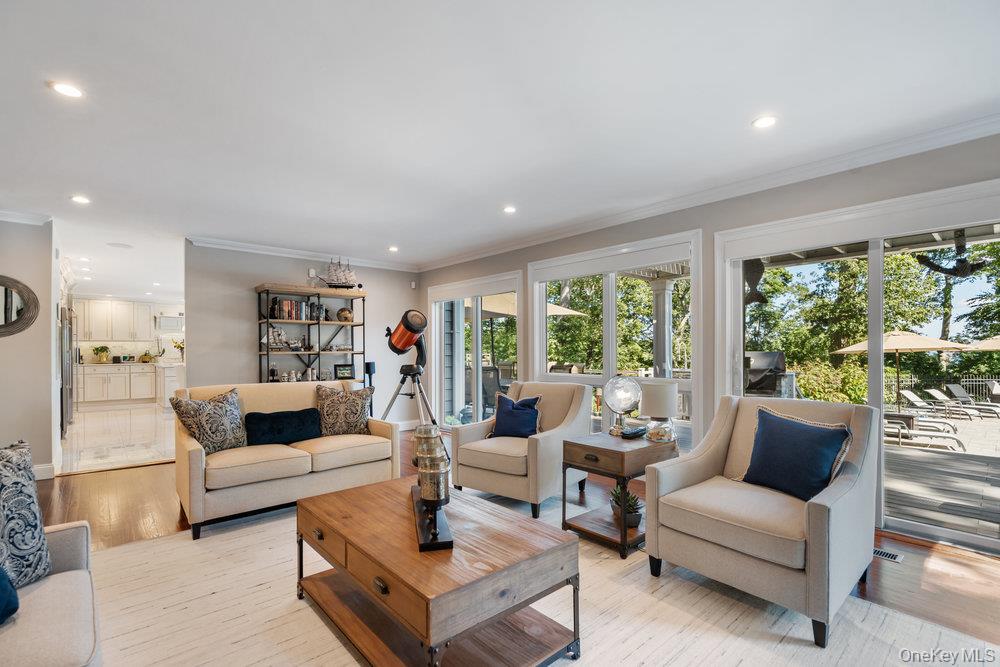 Once you step through the front door, the world recedes behind you and there is nothing you need that won’t be found in this stunning state-of-the-art home. This one-of-a-kind contemporary colonial is a true blend of luxury and technology. This amazing home offers approximately 5, 800 square feet of living space, plus an additional 2, 000 square feet of lower-level space with sliding glass doors to the rear yard, providing exceptional flexibility for entertaining and recreation. Water views abound! With five-bedrooms and six-baths, this unique residence features a gourmet kitchen, separate dining and living rooms, each with their own fireplace. There are two primary suites, one with cathedral ceilings, fireplace and its own balcony overlooking the property. There is a gym, movie theatre, an indoor and outdoor pool plus an indoor sauna and outdoor hot tub oasis. There is a user-friendly fully integrated high-end control 4 smart home system that controls television, thermostats, security system, lights, and every window shade throughout the home. Audio with built-in wall speakers in every space, including bedrooms and bathrooms is complemented by a brand-new outdoor speaker system spanning the entire backyard, pool, patio, and hot tub areas as well as 9 zones of heat and air conditioning. All interior skylights are motorized as well as 48 new windows. The home theater has been upgraded with a new 4K projector, enhanced sound system, and an immersive 115-inch screen. The newly installed sauna has a custom glass enclosure and floor to ceiling travertine stone throughout the spa and hallway. Outdoor living is equally impressive, with the property set among 2 acres of manicured gardens, with heated saltwater pool, hot tub, gas-powered fire pit, and a fully equipped outdoor kitchen with a new BBQ, sink, and refrigerator. The property is also EV-ready, offering two electric vehicle chargers on independent circuit breakers, allowing for two vehicles to charge simultaneously. There are 48 solar panels that power the entire property. This home is that rare combination of luxury finishes, advanced technology and located within the Fiddler Green homeowner's association with private beach, private deeded harbor with mooring and located in a prime location in the sound. It offers an elegant efficiency and infrastructure designed for comfort, entertainment and is a self-contained refuge. Don't miss out on this rare opportunity to see this spectacular home on Long Islands beautiful Gold Coast. Cold Spring Harbor School District.