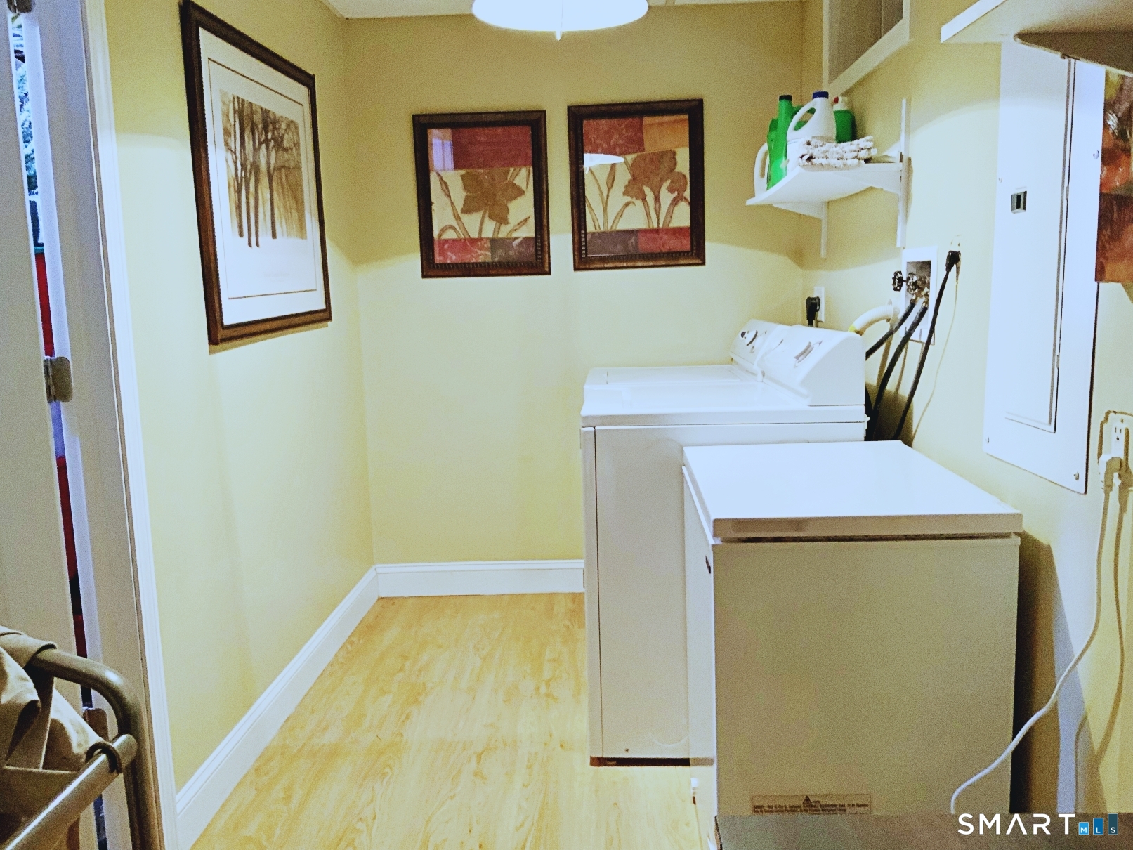 Discover comfortable single-family living in Suffield, Connecticut! This well-appointed 3-bedroom home in a PUD community offers everything you need for easy, modern living with the privacy of owning your own land. The main level welcomes you with wood floors flowing through the living room, complete with a cozy electric fireplace, into the kitchen boasting quartz countertops and a dining area. A convenient half bath and direct garage access complete this floor. Three bedrooms and a full bath occupy the second floor, while the finished basement expands your living space with an additional 384 square feet. Down here you'll find a versatile extra room, another full bath with both shower and tub, and in-unit laundry. All major appliances convey - stove, refrigerator, dishwasher, washer, and dryer included! Step outside to your back deck and enjoy the peaceful backdrop of wooded public land providing natural privacy. Built in 2002 with 1, 344 square feet above grade, this move-in ready single-family home sits in an ideal location just across the Connecticut River from Enfield. Quick access to I-91 makes commuting a breeze, while shopping and Suffield's excellent schools are nearby. The modest $60 monthly HOA handles trash and snow removal. Ready to make this home? It's waiting for you!