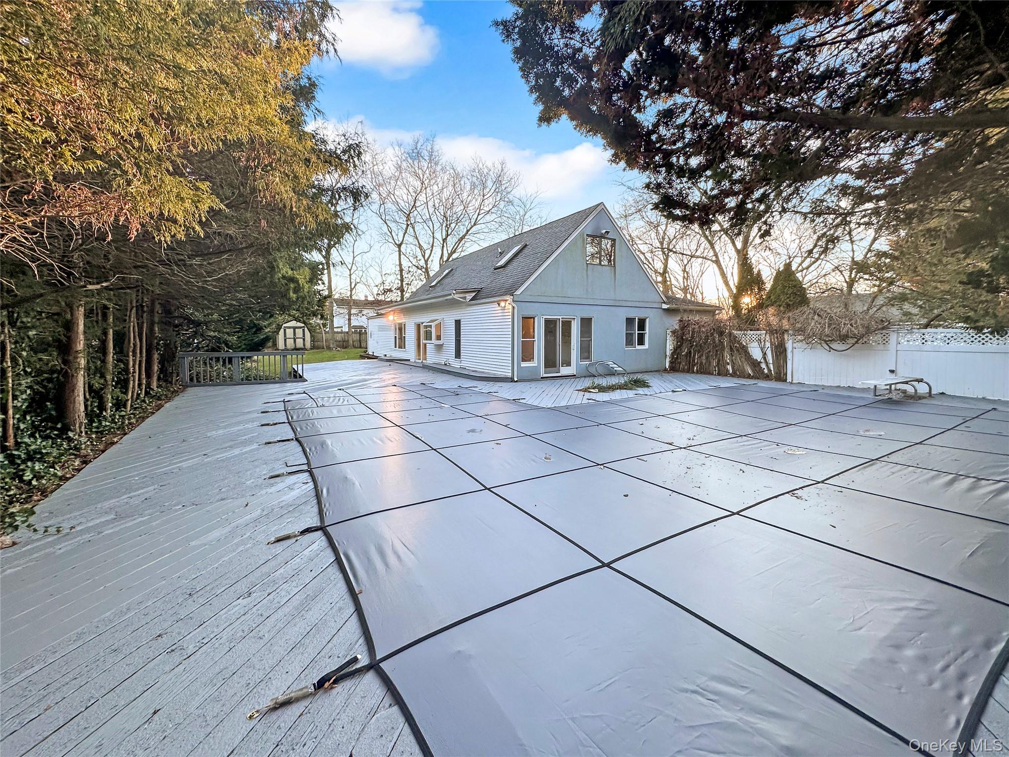 Welcome to this beautifully updated Cape Cod style residence, perfectly situated mid block on a quiet tree lined street. This inviting 5 bedroom, 3 bath home offers fresh paint throughout. The open concept kitchen and living room create an ideal space for entertaining. It features a new kitchen with stainless appliances. Sliding doors off the living room leads you to a freshly painted deck overlooking the in-ground pool. Perfect for summer gatherings. The primary bedroom boasts a private updated half bath, while the finished attic provides additional living space with its own half bath making it ideal for a home office, guest suite or playroom. Additional highlights include a 2 car garage and a peaceful setting on a secluded cul-de-sac. Don't miss the opportunity to make it yours!